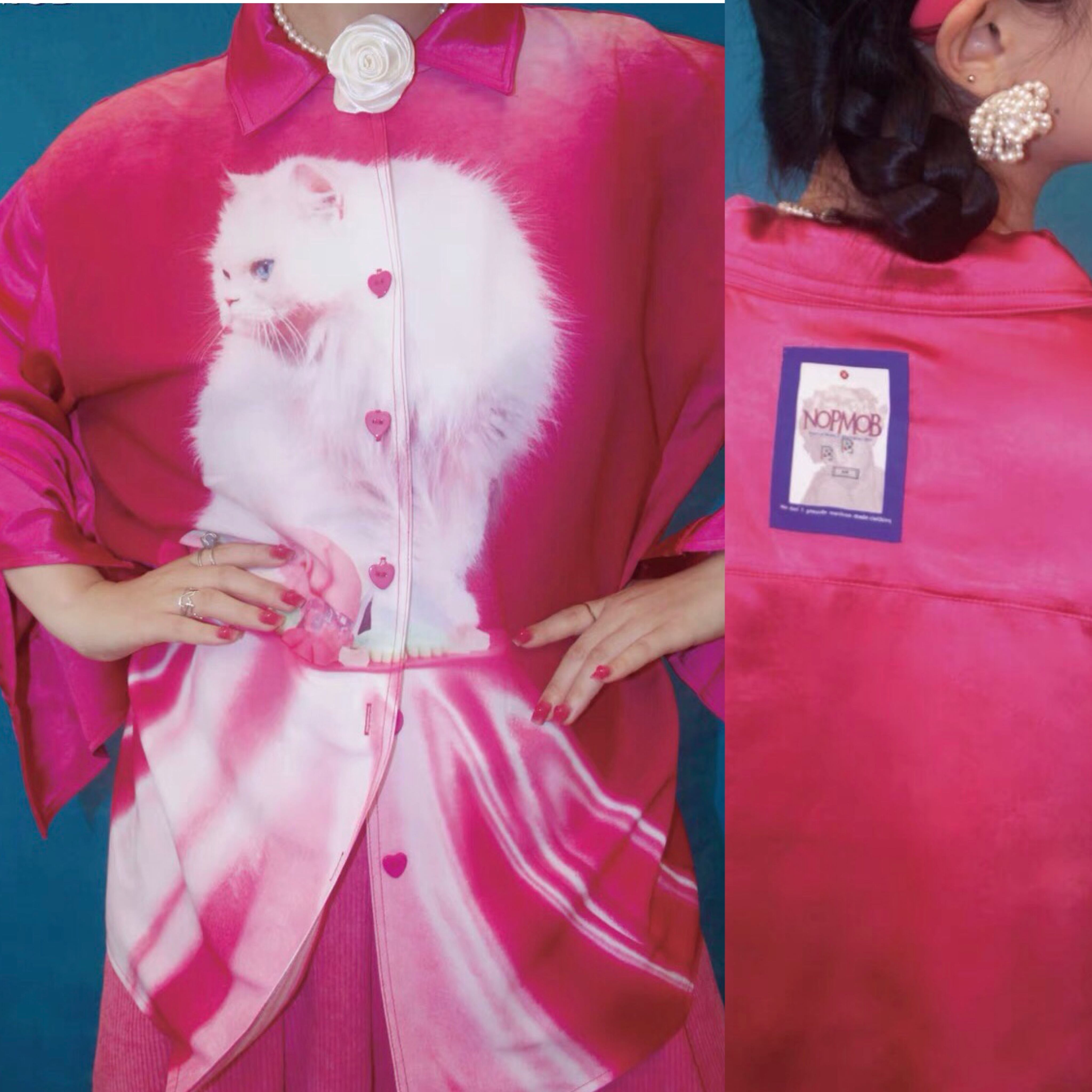 ブラウス ゆったり オーバーサイズ ねこ コート アウター ジャケット ブルゾン カーディガン ワンピース チェック ピンク ガーリー アウター リボン ガーリー 可愛い 原宿 渋谷 フード お嬢様 姫 エレガント ジャケット ジャンパー
