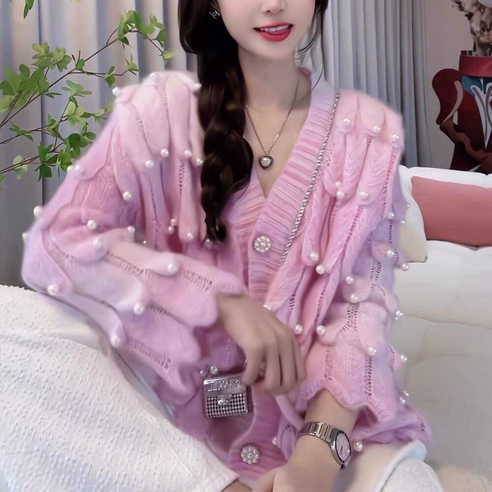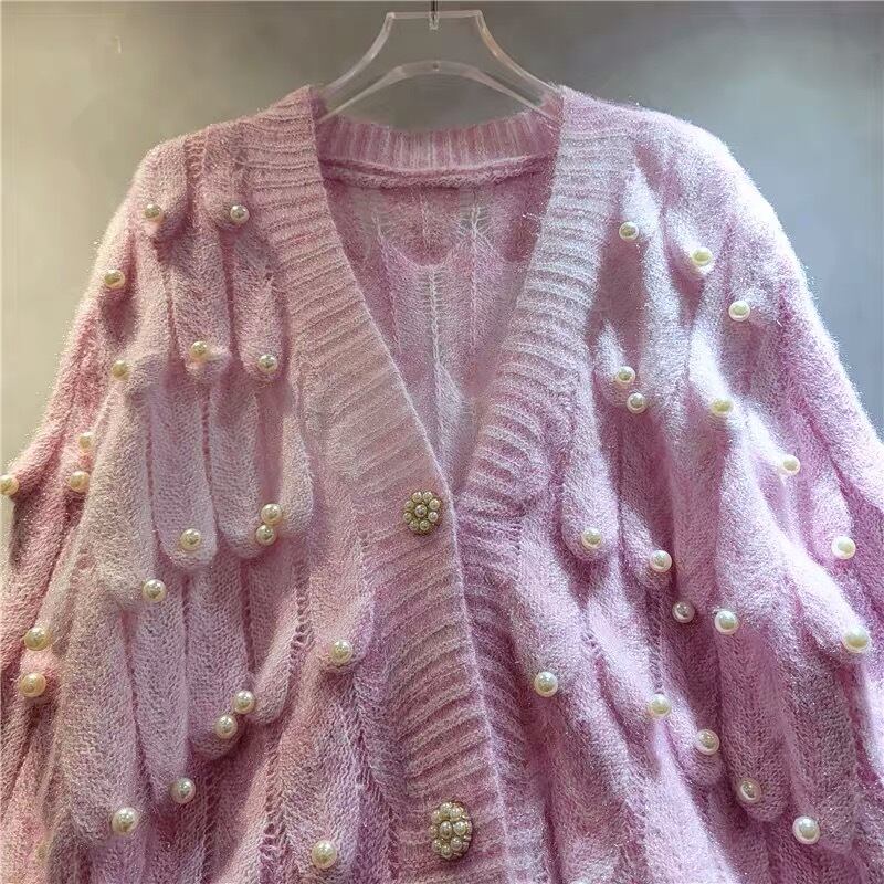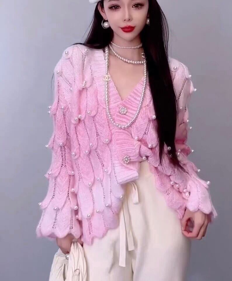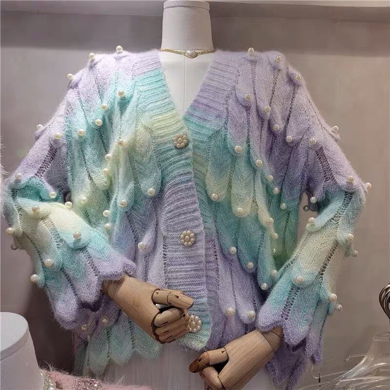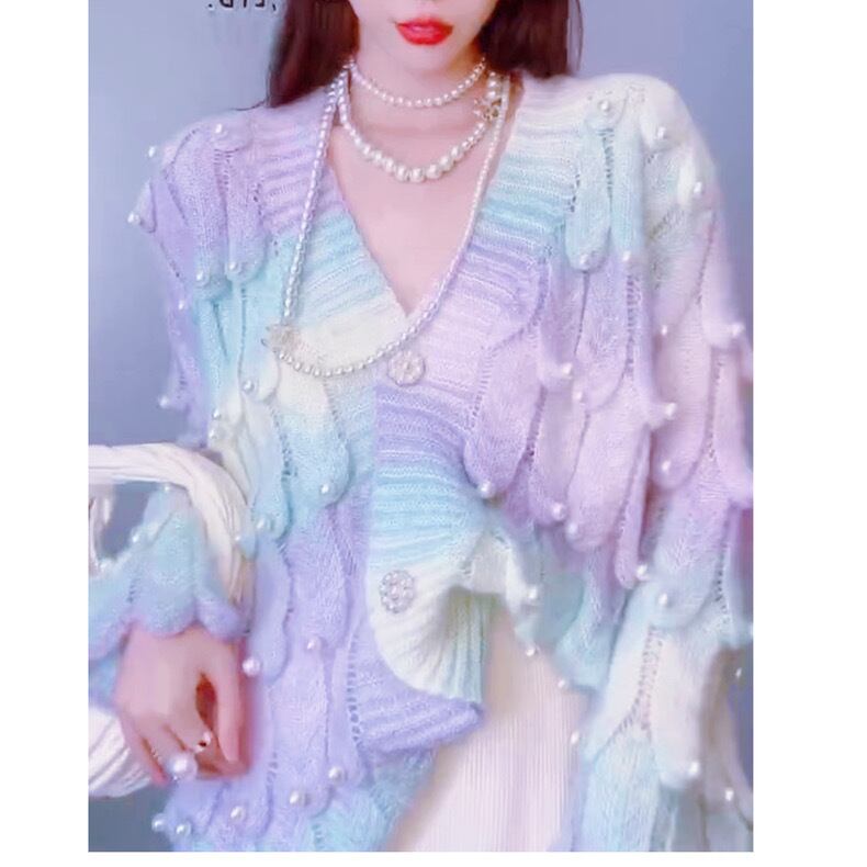 カーディガン パール 白 ピンク グラデーション 緑 水色 紫 コート アウター ジャケット ブルゾン カーディガン ワンピース チェック ピンク ガーリー アウター リボン ガーリー 可愛い 原宿 渋谷 フード お嬢様 姫 エレガント ジャケット ジャンパー デコレーション ニット セーター