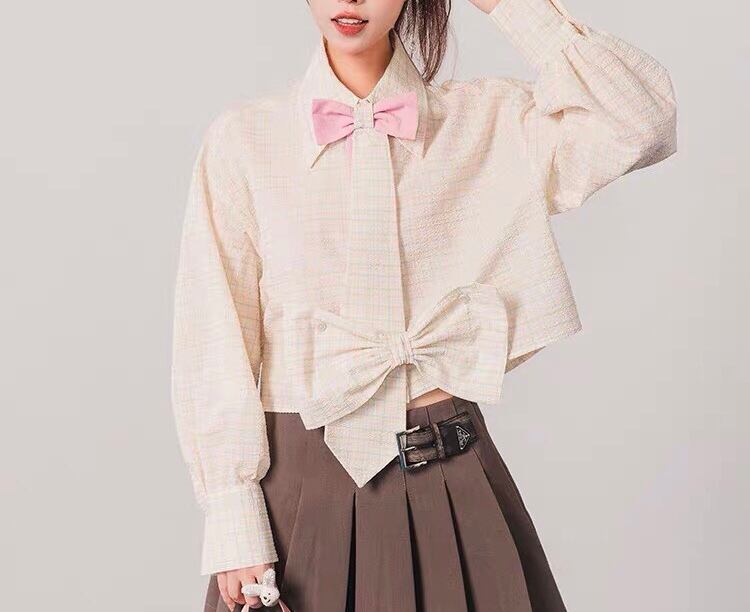 ストリート カジュアル ワンピース 茶色 ベージュ チェック スクール ブラウス フリル ブラウス トップス シャツ お嬢様 リボン 白 チェック ワンピース ゆったり リボン カジュアル エレガント ブラウス かわいい 可愛い 原宿 渋谷 Y2K ゴージャス 表参道 銀座 エレガント ブラウス 制服 ガーリー ブラウス リボン ベージュ 白 ピンク