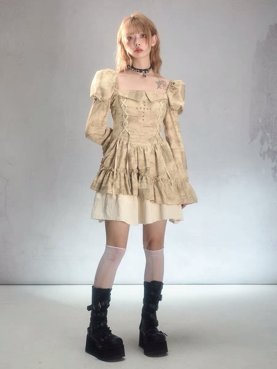 ワンピース ベージュ 個性的 ワンピース 黄色 茶色 ベージュ チェック スクール ブラウス フリル ブラウス トップス シャツ お嬢様 リボン 白 チェック ワンピース ゆったり リボン カジュアル エレガント ブラウス かわいい 可愛い 原宿 渋谷 Y2K ゴージャス 表参道 銀座 エレガント ブラウス 制服 ガーリー ブラウス ロック