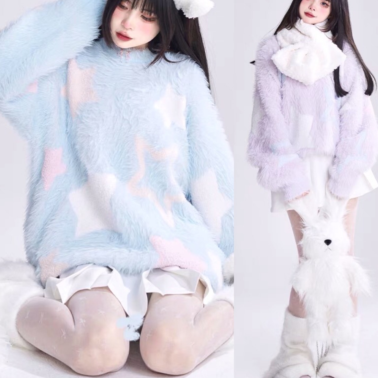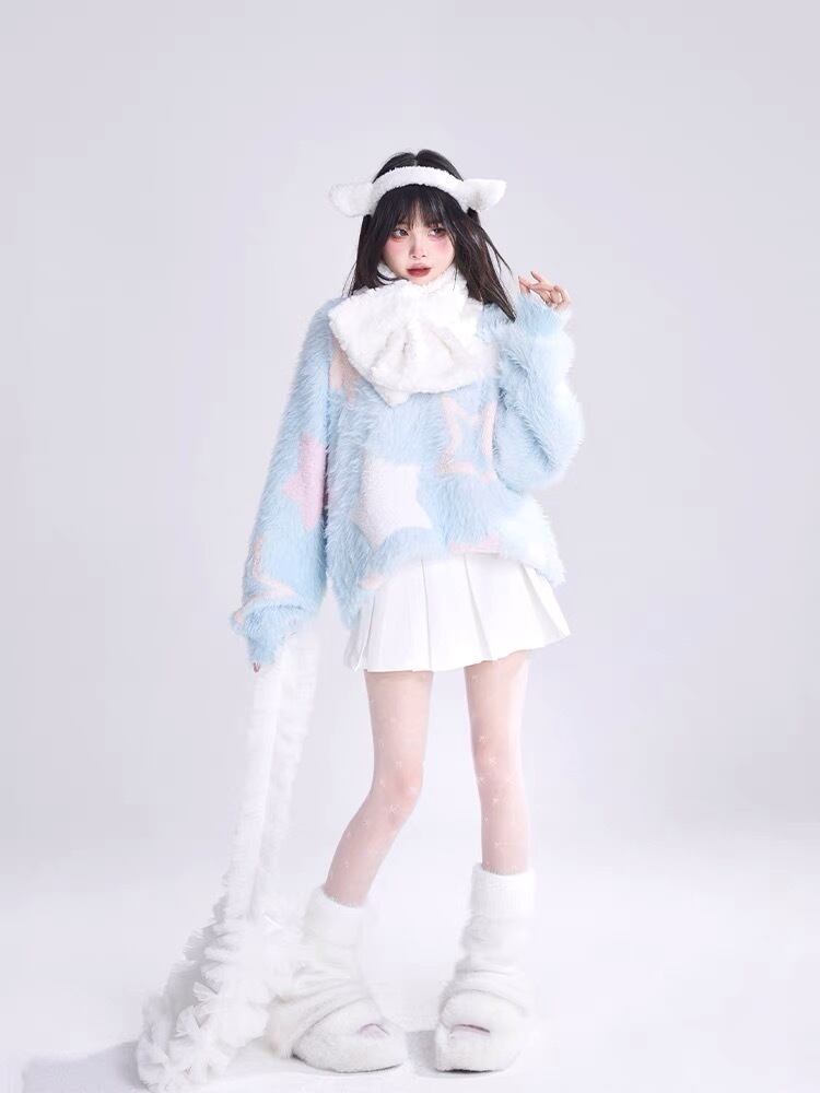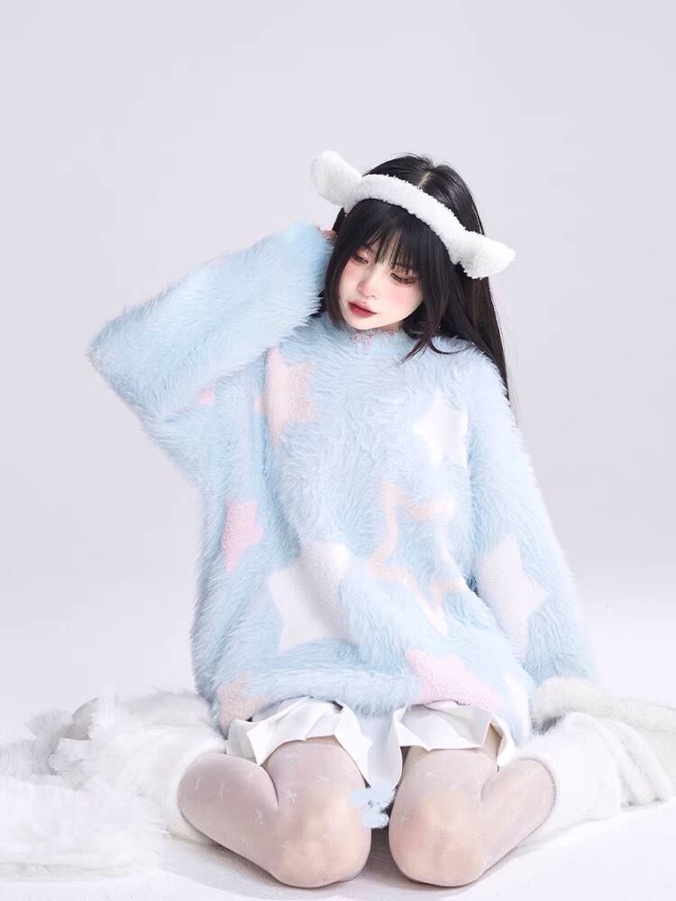 セーター 水色 ピンク 紫 星 カーディガン アウター ジャケット コート アウター 茶色 ピンク セーター ニット チェック ワンピース ゆったり ピンク リボン カジュアル マキシ ロング ブラウス スカート XL かわいい 可愛い ゆったり オーバーサイズ ビッグシルエット 原宿 渋谷 マタニティー Y2K ギャル
