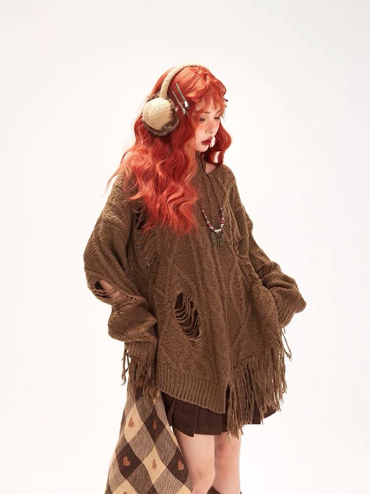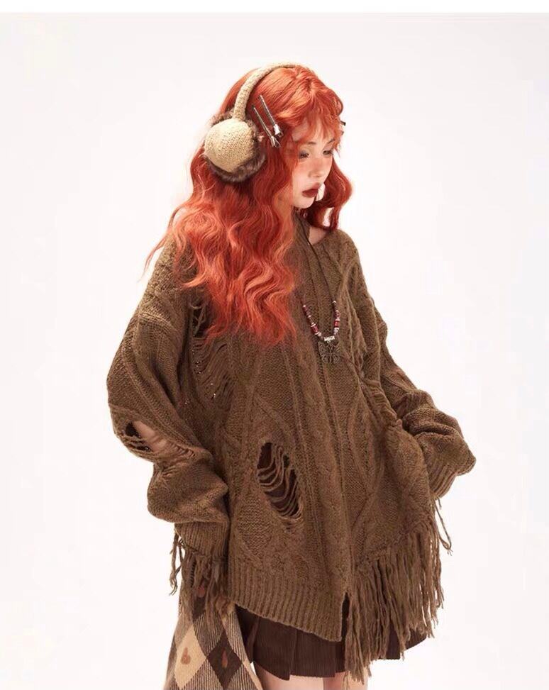 セーター ポンチョ ダメージ 茶色 セーター カーディガン アウター ジャケット コート アウター 茶色 ピンク セーター ニット チェック ワンピース ゆったり ピンク リボン カジュアル マキシ ロング ブラウス スカート XL かわいい 可愛い ゆったり オーバーサイズ ビッグシルエット 原宿 渋谷 マタニティー Y2K ギャル