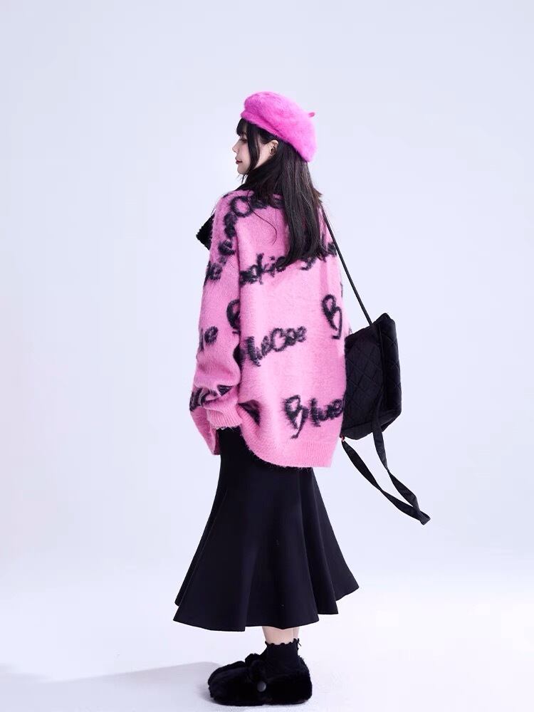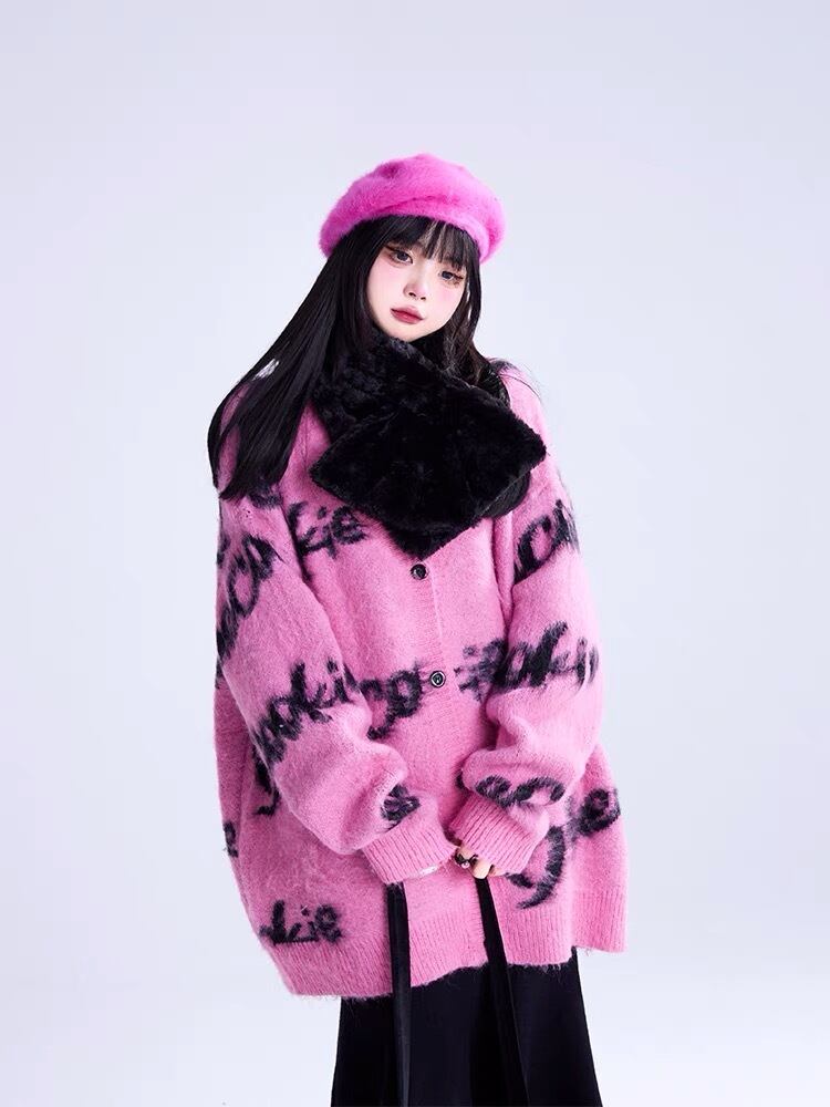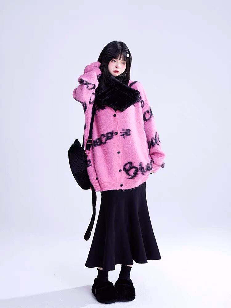 カーディガン ピンク 黒 カーディガン アウター ジャケット コート アウター 茶色 ピンク セーター ニット チェック ワンピース ゆったり ピンク リボン カジュアル マキシ ロング ブラウス スカート XL かわいい 可愛い ゆったり オーバーサイズ ビッグシルエット 原宿 渋谷 マタニティー Y2K ギャル セーター アウター
