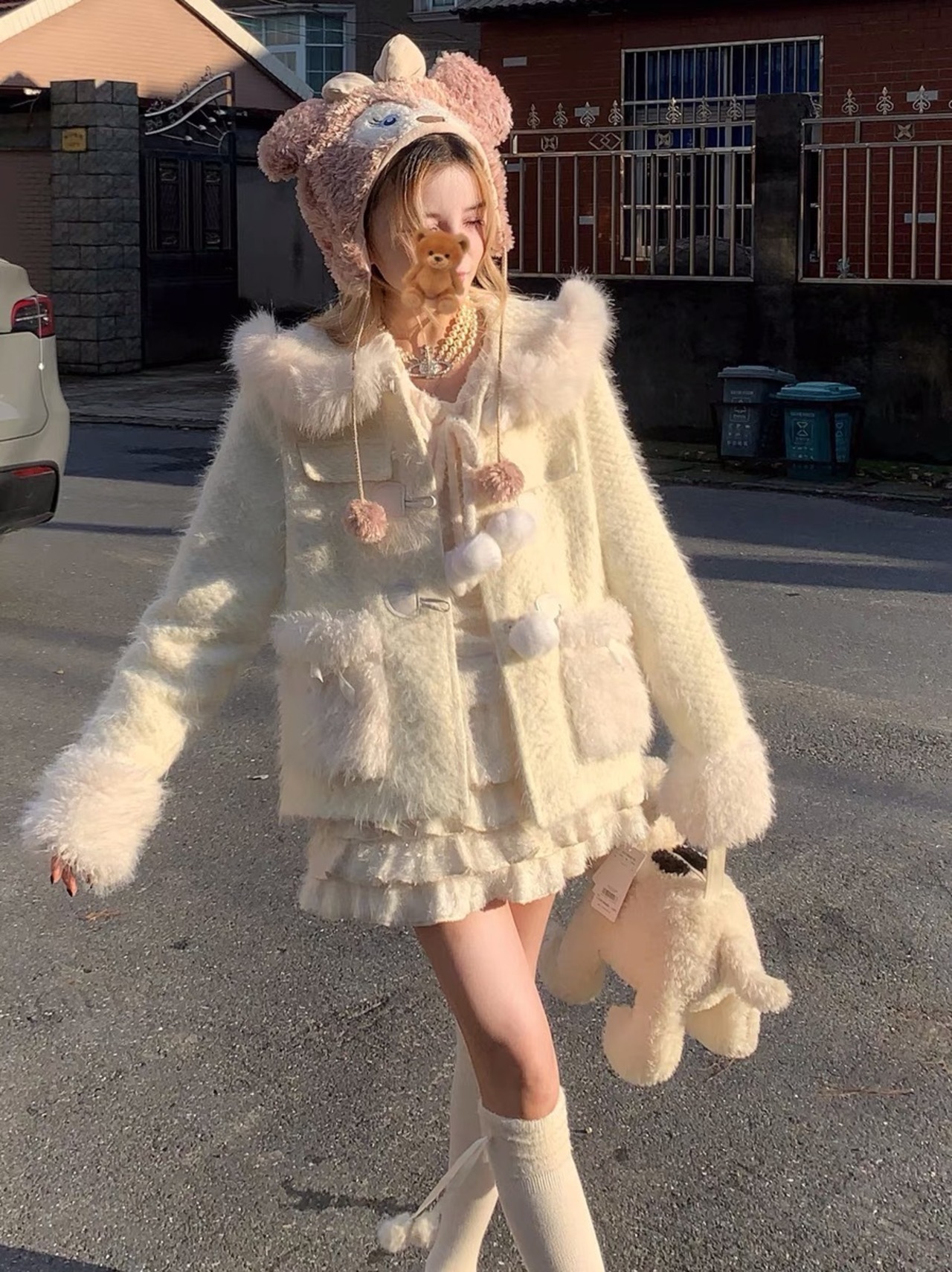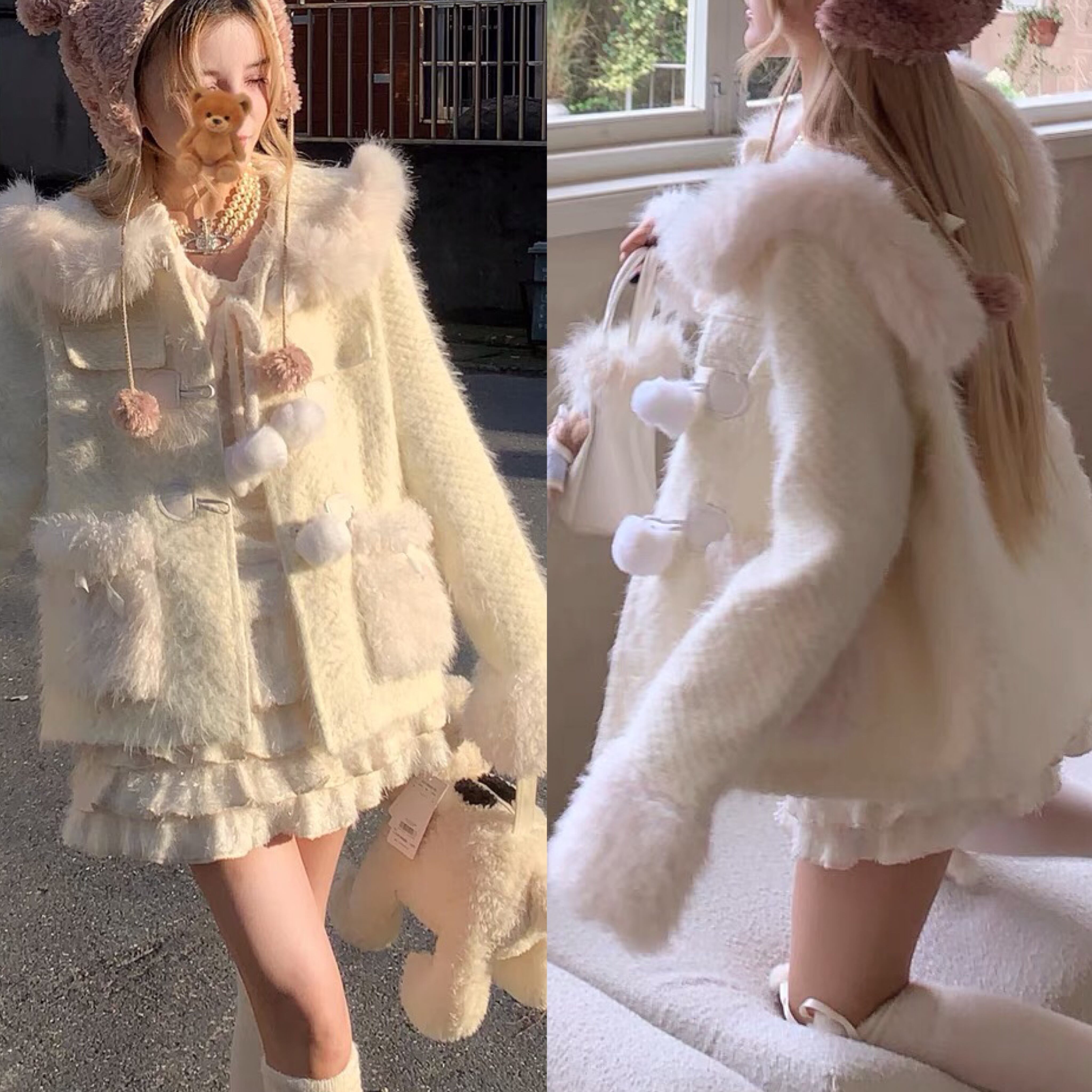コート 白 ホワイト ファー ジャンパー アウター ジャケット コート 白 フード フリース パーカー トレーナー スウェット 白 うさぎ くま カーディガン アウター ジャケット コート アウター 茶色 ピンク セーター ニット チェック ワンピース ゆったり ピンク リボン カジュアル マキシ ロング ブラウス スカート XL かわいい 可愛い ゆったり オーバーサイズ ビッグシルエット 原宿 渋谷 マタニティー Y2K ギャル