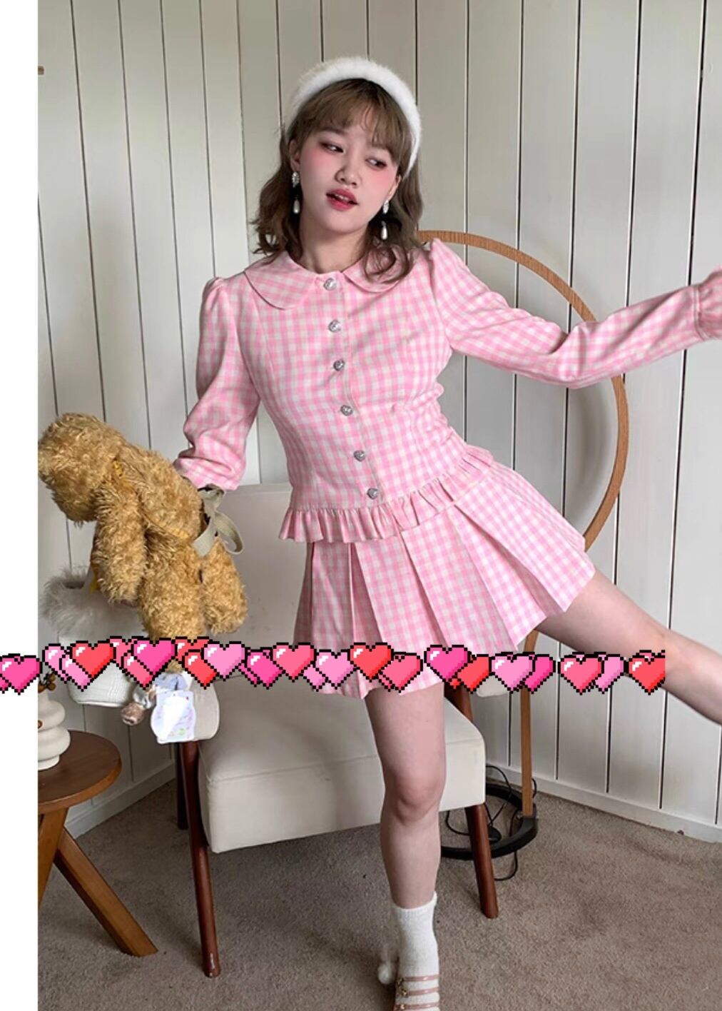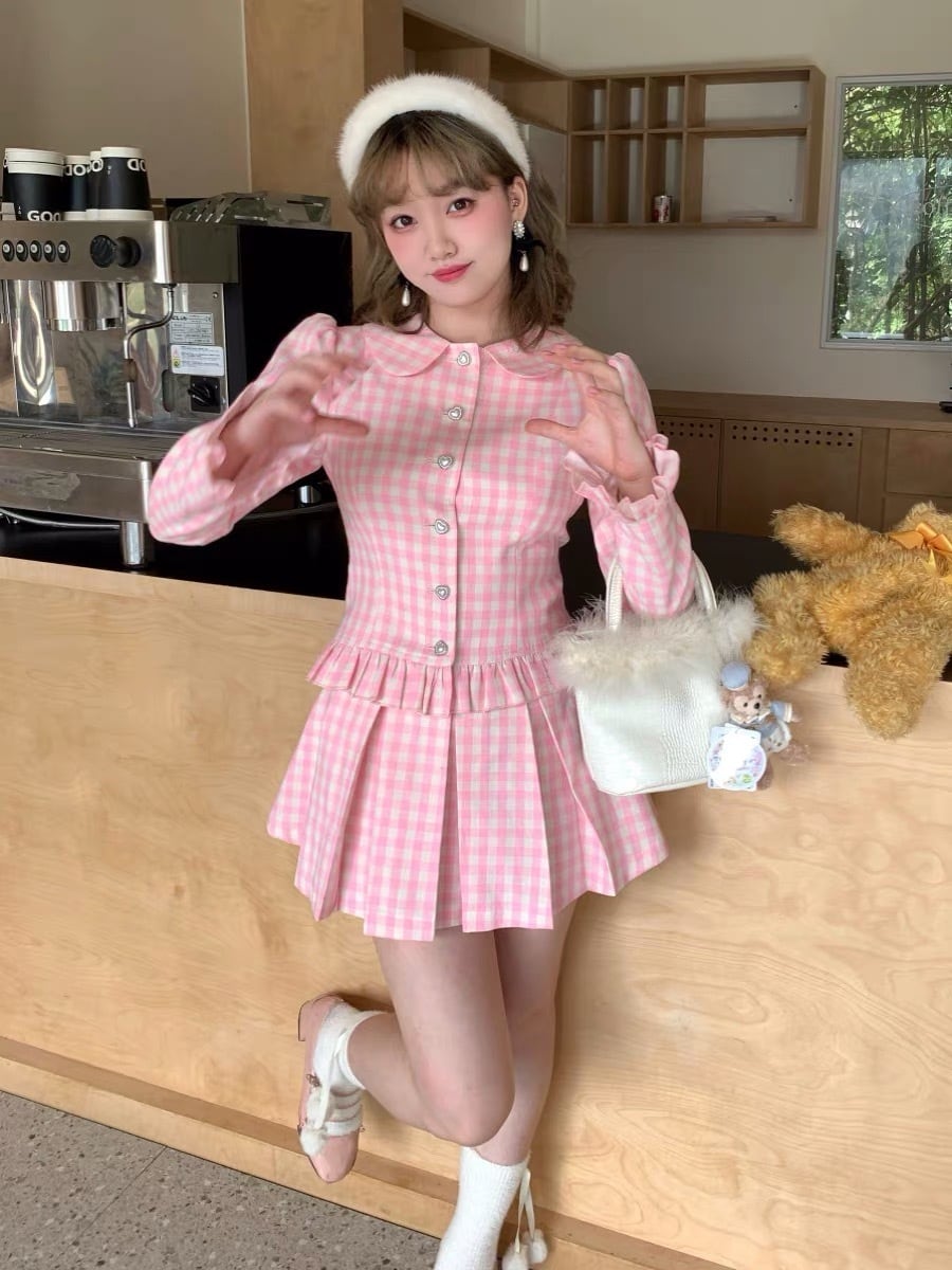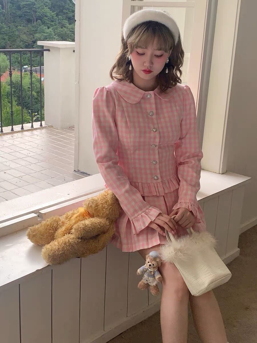 【スカート】ピンク 茶色 チェック プリーツスカート ワンピース 茶色 ベージュ チェック スクール ブラウス フリル ブラウス トップス シャツ お嬢様 リボン 白 チェック ワンピース ゆったり リボン カジュアル エレガント ブラウス かわいい 可愛い 原宿 渋谷 Y2K ゴージャス 表参道 銀座 エレガント ブラウス 制服 ガーリー セットアップ お嬢様