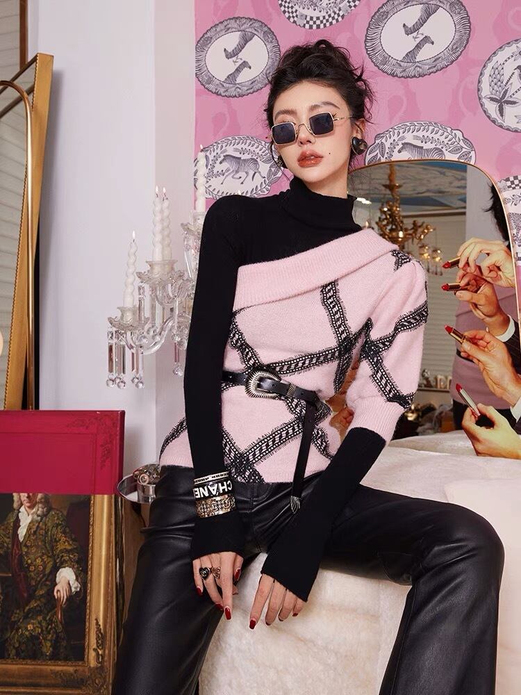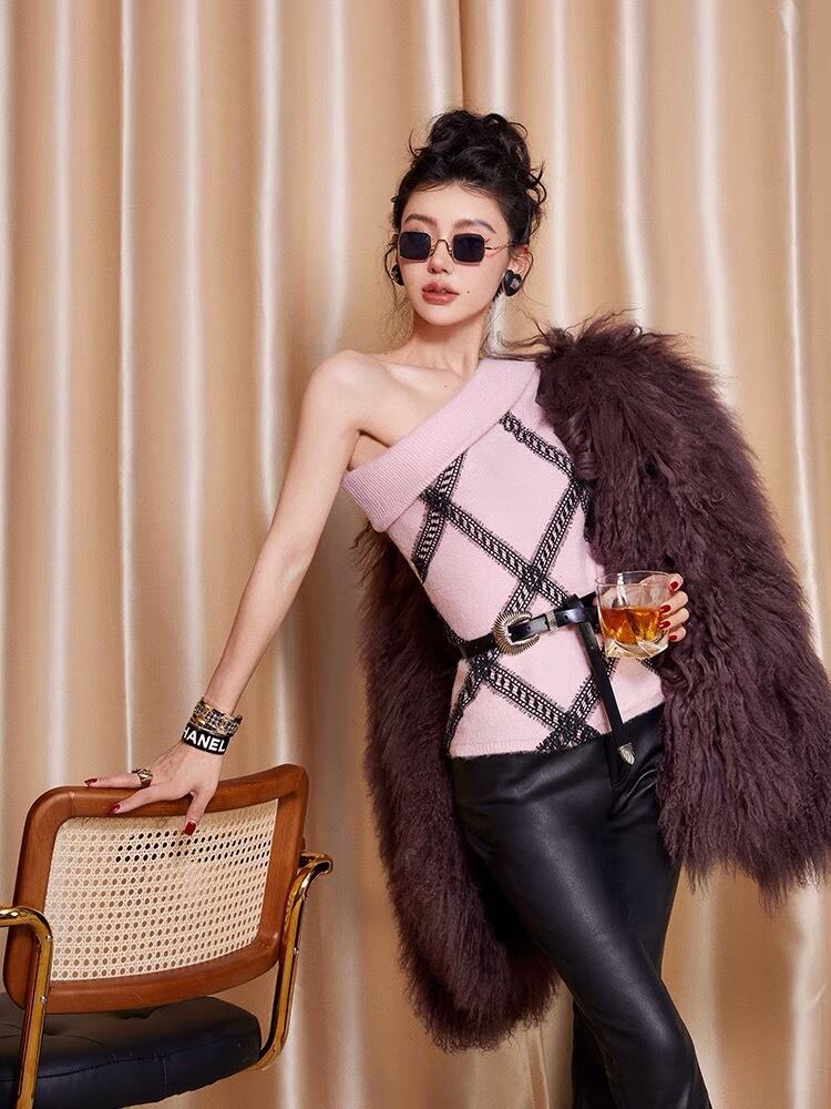 トップス ニット チェック オフショルダー セーター エレガント お嬢様 ブラウス フリル ブラウス トップス シャツ お嬢様 リボン 白 チェック ワンピース ゆったり リボン カジュアル エレガント ブラウス かわいい 可愛い 原宿 渋谷 Y2K ゴージャス 表参道 銀座 エレガント