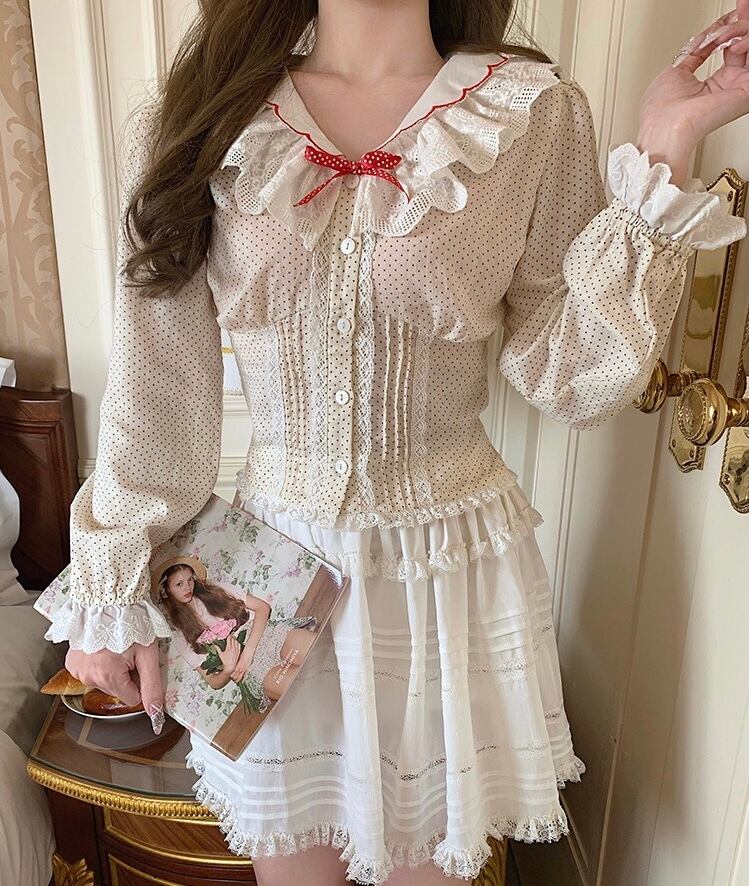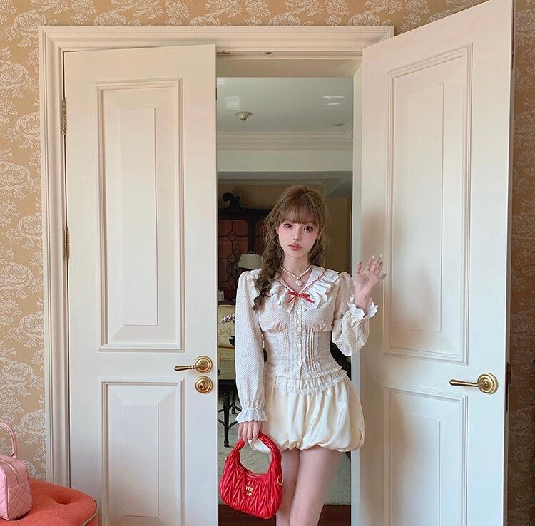 ブラウス フリル ブラウス トップス シャツ お嬢様 リボン 白 チェック ワンピース ゆったり リボン カジュアル エレガント ブラウス かわいい 可愛い 原宿 渋谷 Y2K ゴージャス 表参道 銀座 エレガント