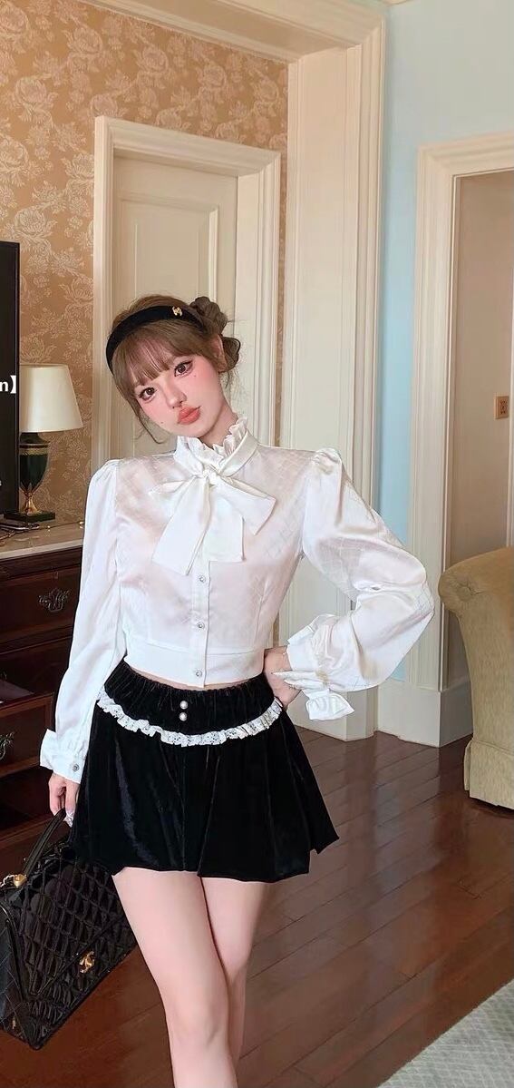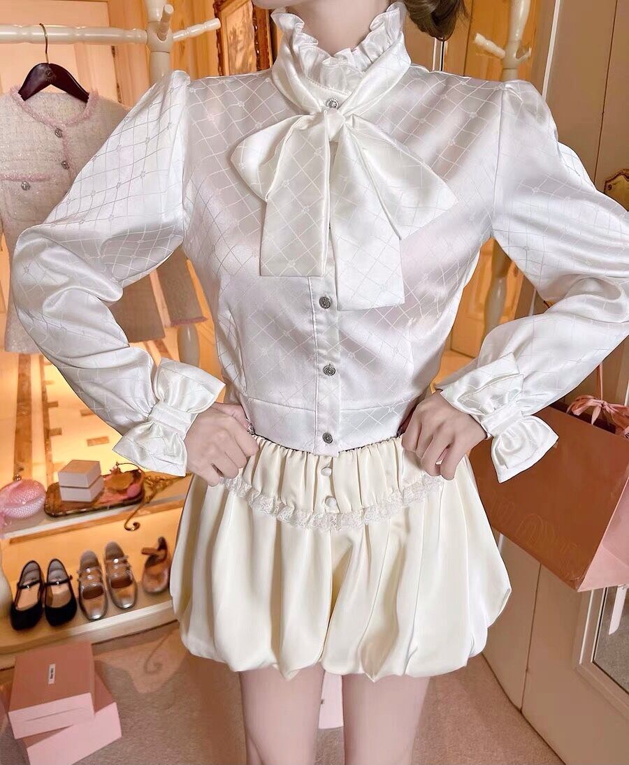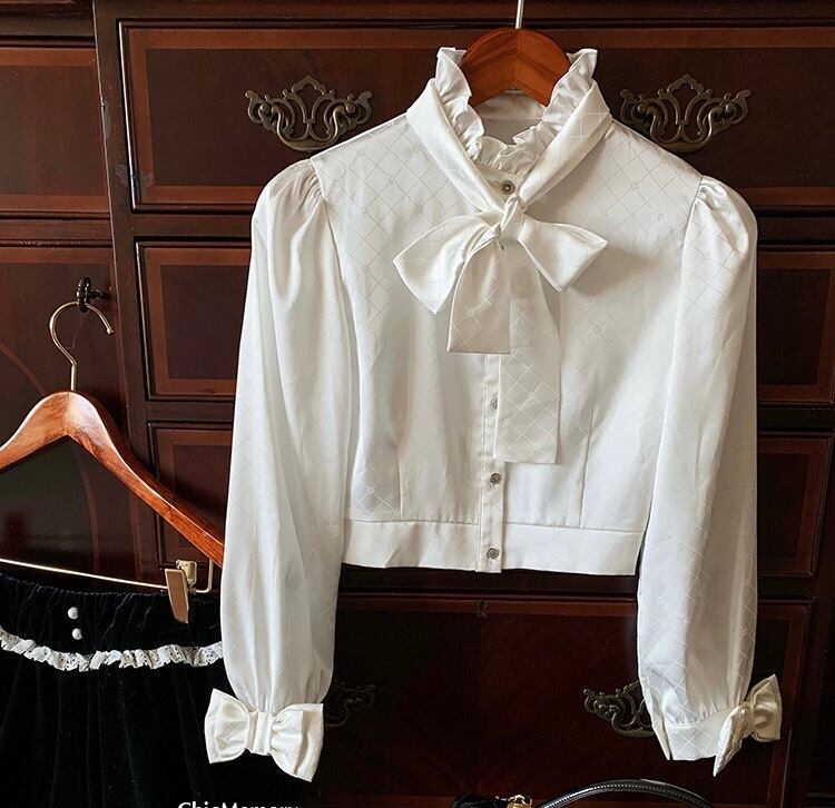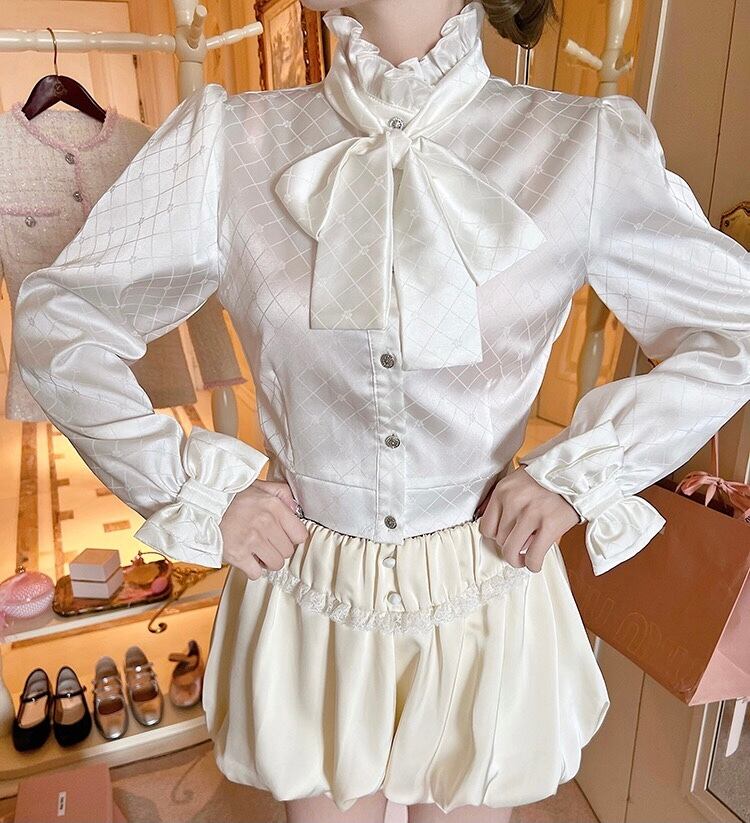 ブラウス ハイネック リボン ブラウス フリル ブラウス トップス シャツ お嬢様 リボン 白 チェック ワンピース ゆったり リボン カジュアル エレガント ブラウス かわいい 可愛い 原宿 渋谷 Y2K ゴージャス 表参道 銀座 エレガント