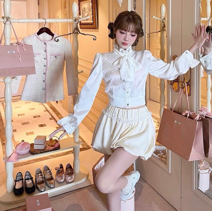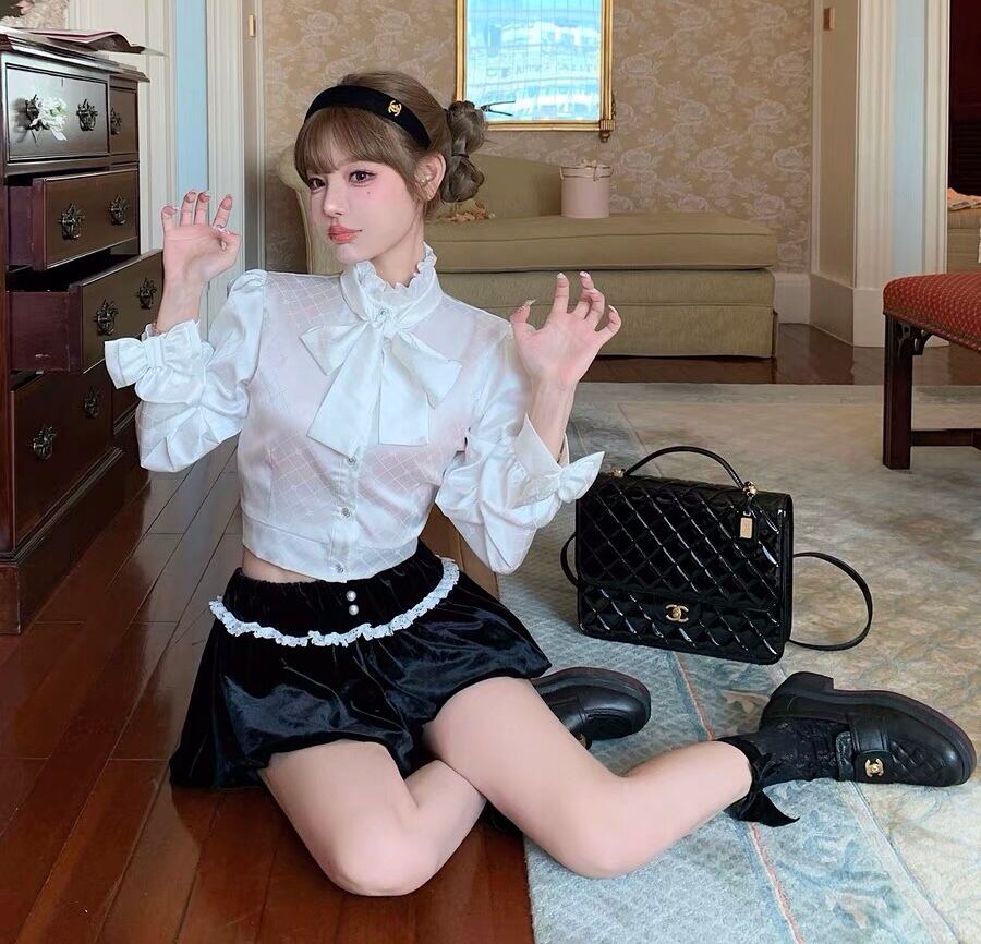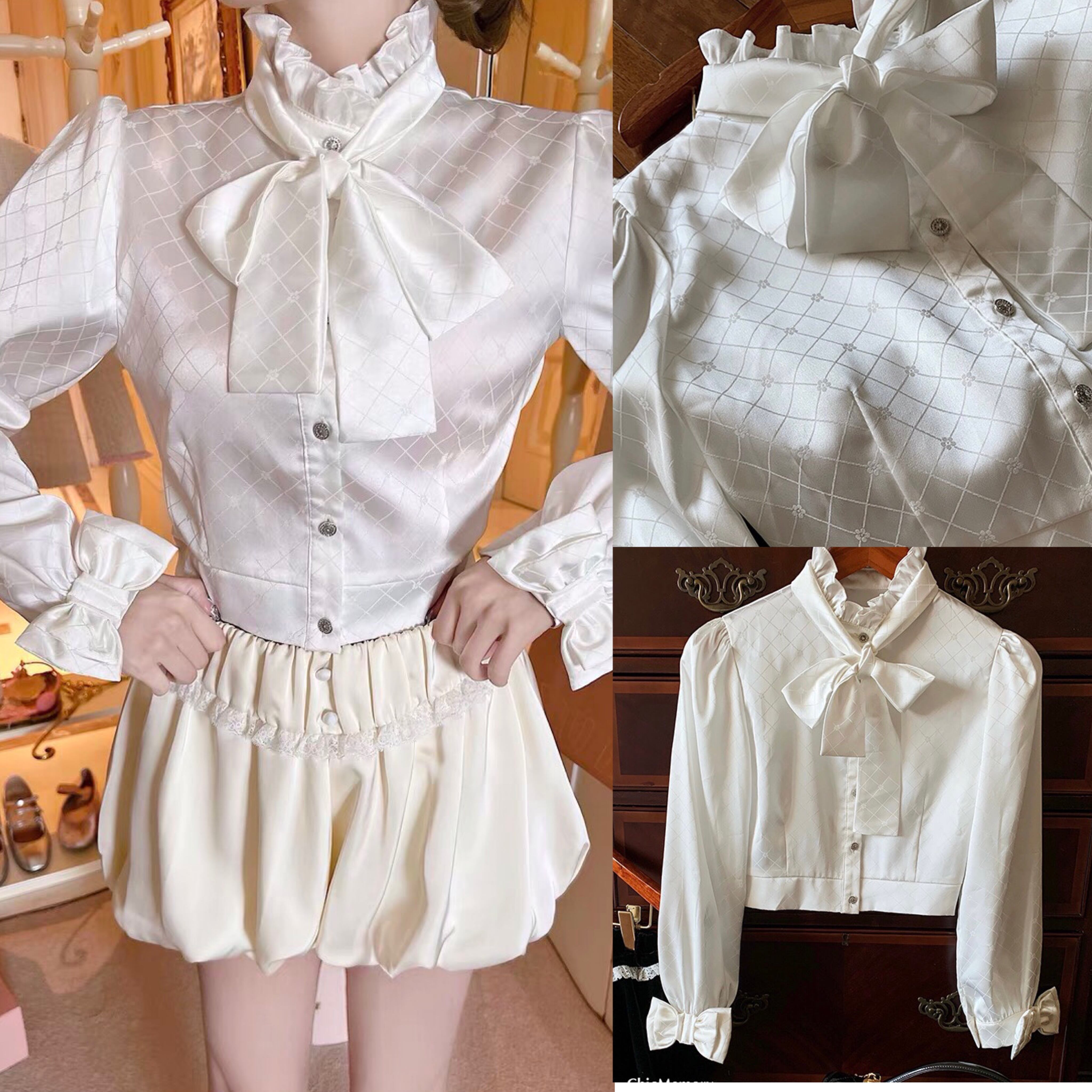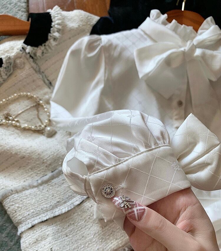 ブラウス ハイネック リボン ブラウス フリル ブラウス トップス シャツ お嬢様 リボン 白 チェック ワンピース ゆったり リボン カジュアル エレガント ブラウス かわいい 可愛い 原宿 渋谷 Y2K ゴージャス 表参道 銀座 エレガント
