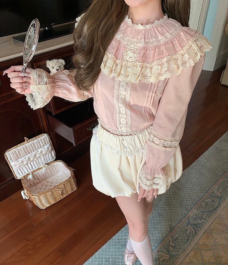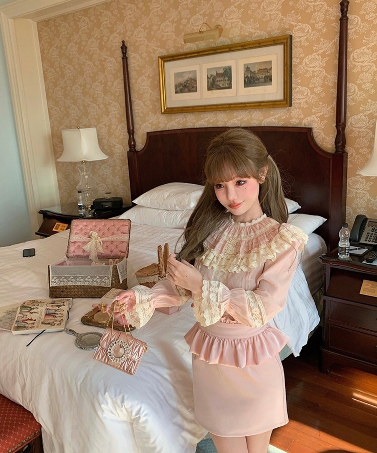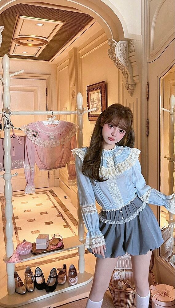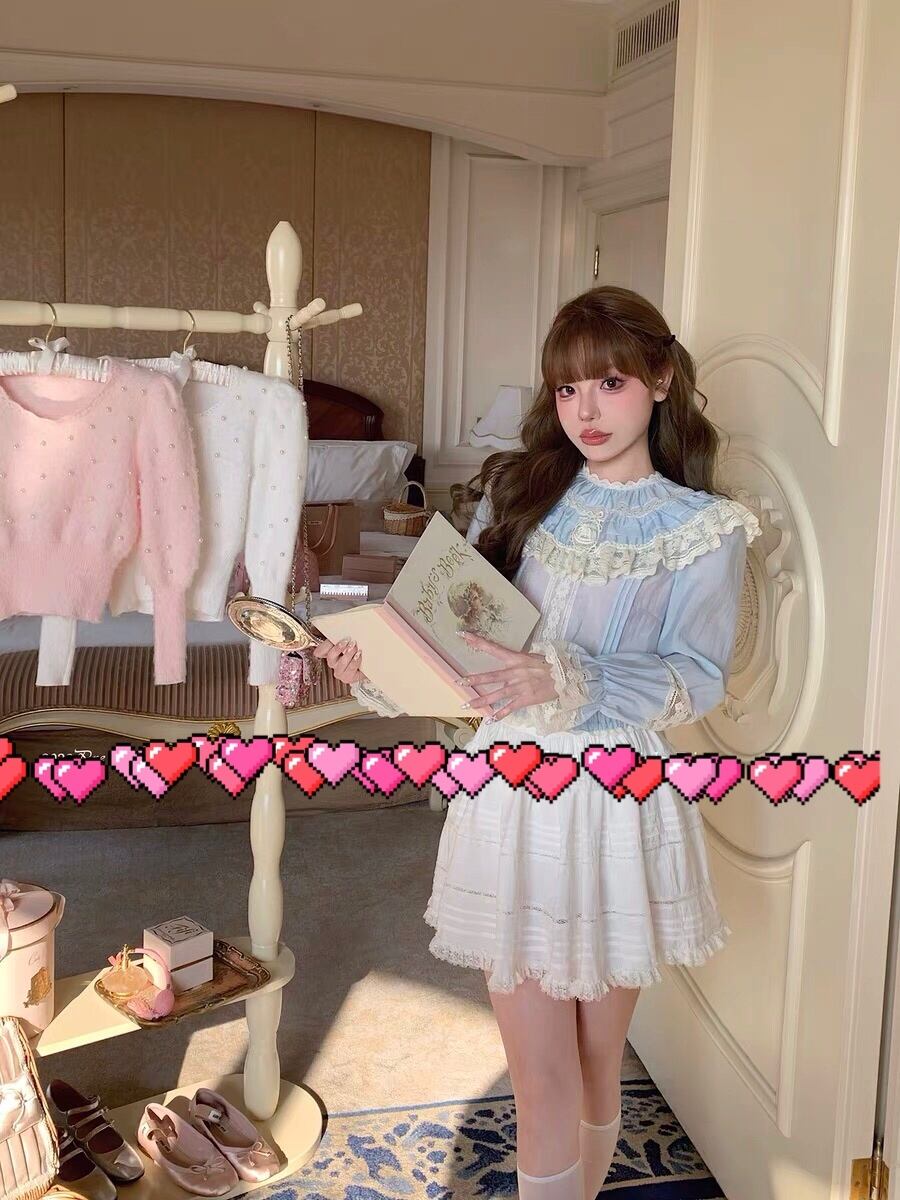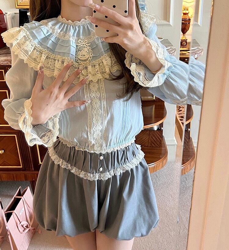 【ブラウス】ピンク 水色 フリル ブラウス フリル ブラウス トップス シャツ お嬢様 リボン 白 チェック ワンピース ゆったり リボン カジュアル エレガント ブラウス かわいい 可愛い 原宿 渋谷 Y2K ゴージャス 表参道 銀座 エレガント レース