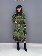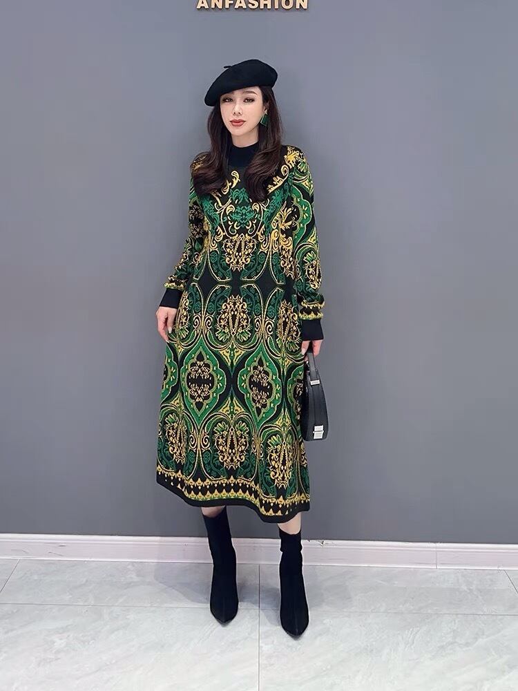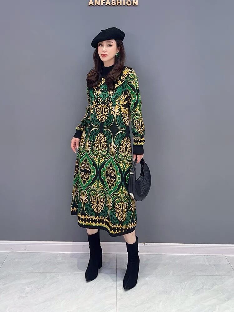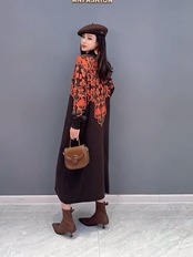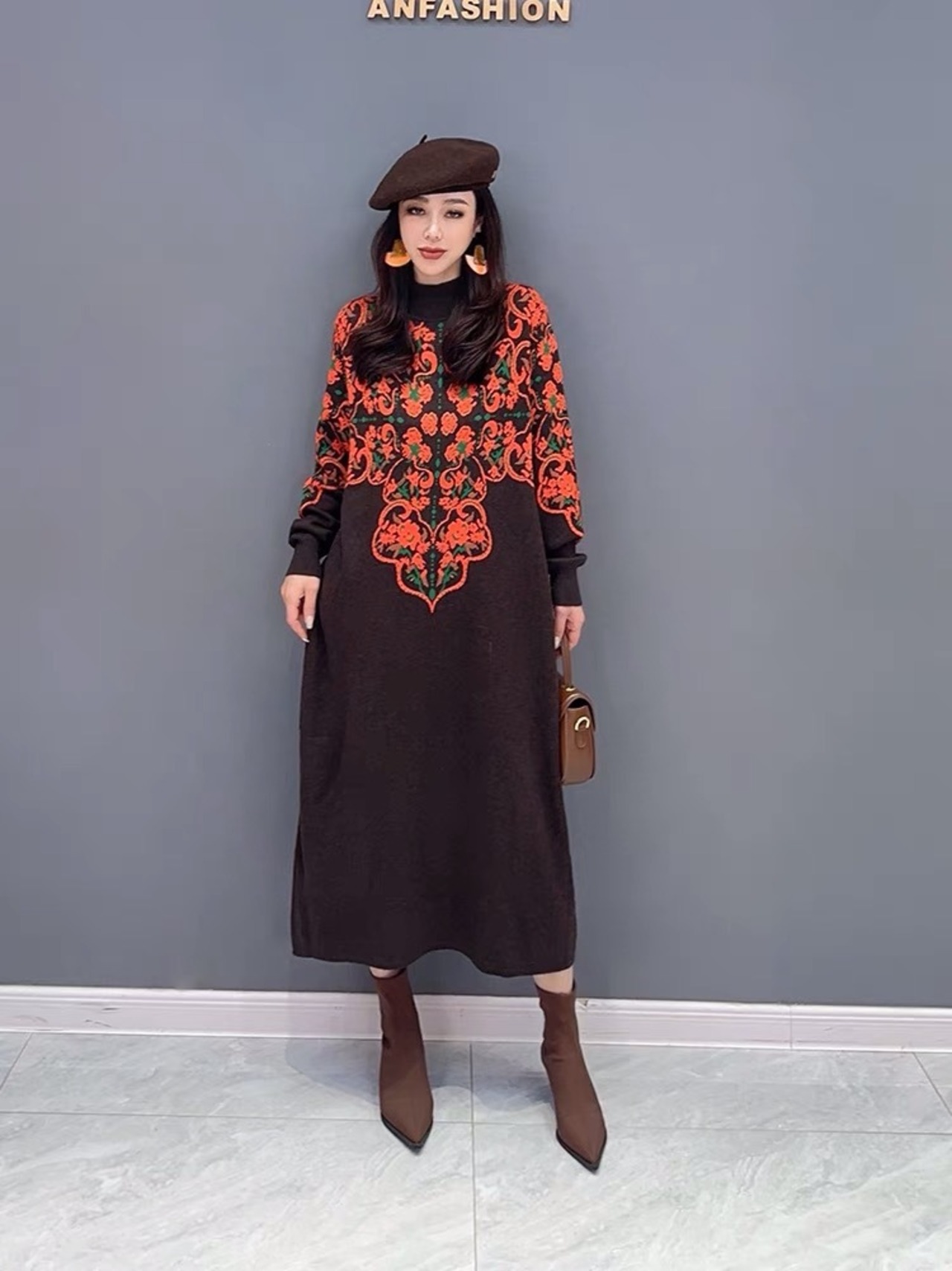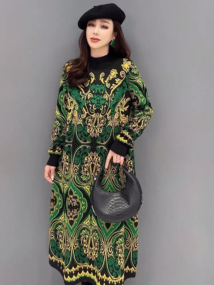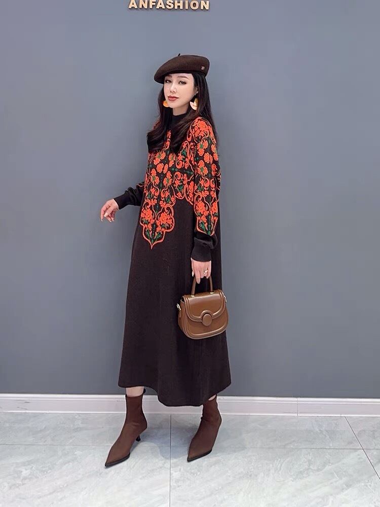 ワンピース ニット 花柄 フラワー 緑 オレンジ ハイネック 茶色 スカーフ ワンピース ゆったり ピンク リボン カジュアル マキシ ロング ブラウス スカート XL かわいい 可愛い ゆったり オーバーサイズ ビッグシルエット 原宿 渋谷 マタニティー セーター カーディガン