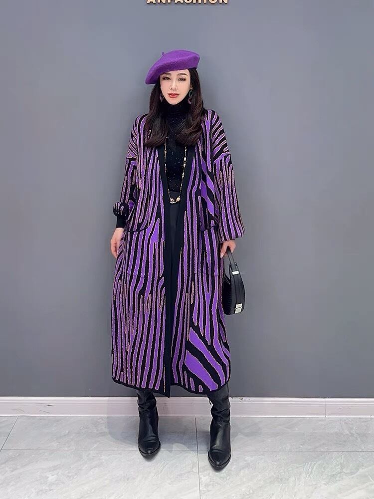 カーディガン ボーダー チェック ニット カーディガン コート ワンピース アウター ジャケット カーディガン ロング 紫 パープル ストライプ ワンピース ゆったり ピンク リボン カジュアル マキシ ロング ブラウス スカート XL かわいい 可愛い ゆったり オーバーサイズ ビッグシルエット 原宿 渋谷 マタニティー