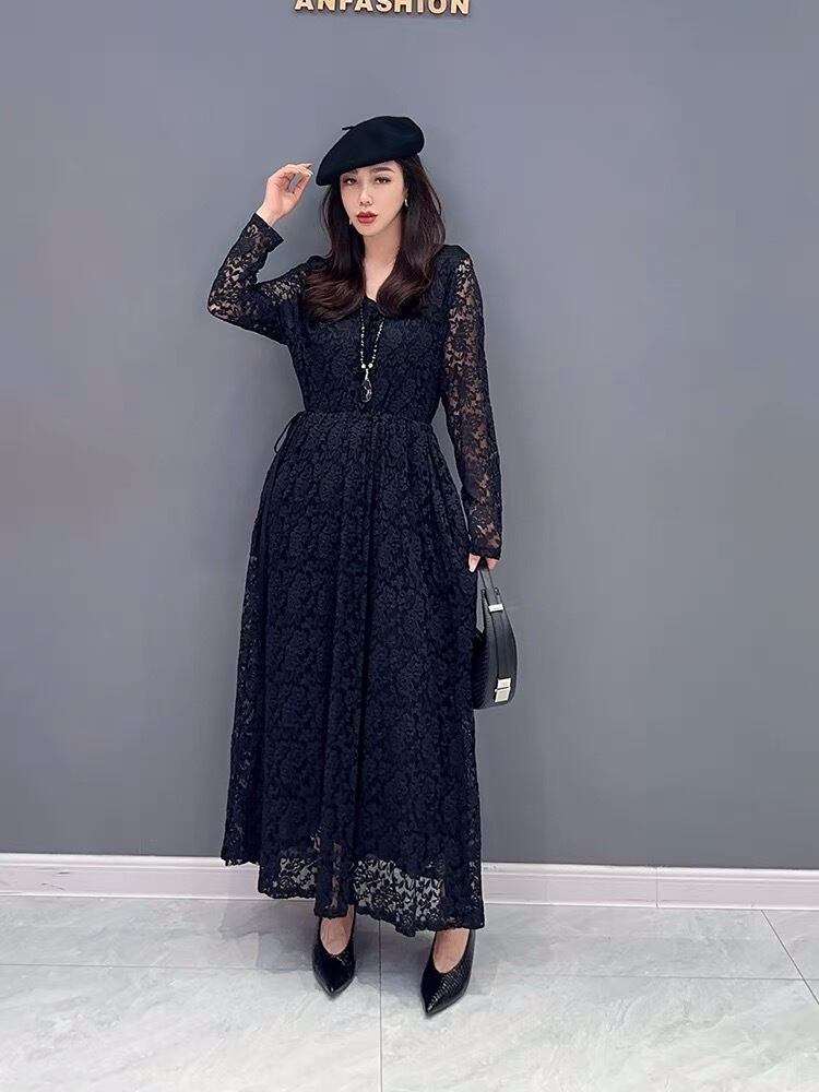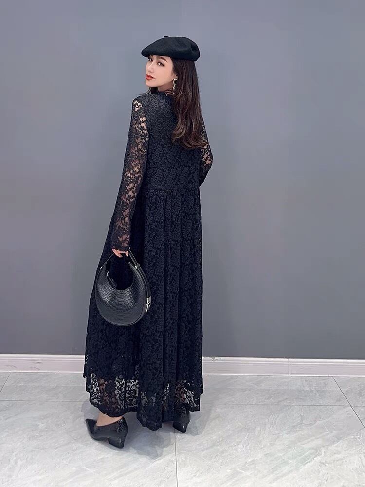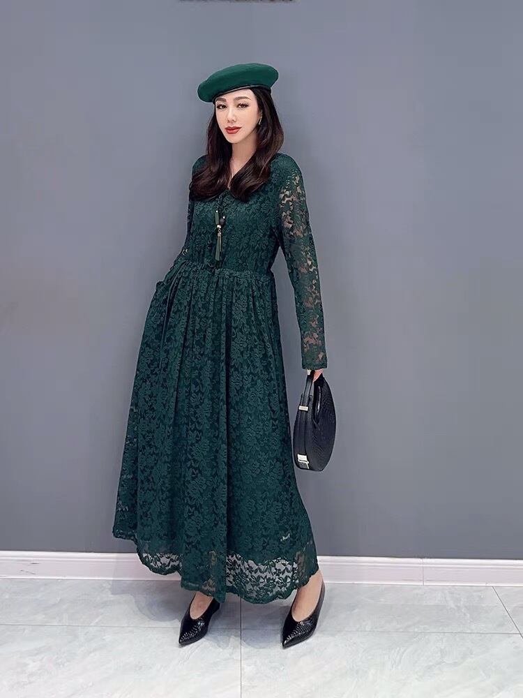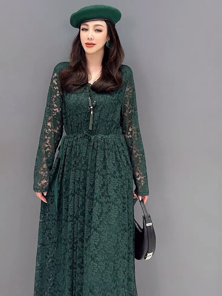ワンピース 黒 緑 レース エレガント マダム ワンピース ゆったり ピンク リボン カジュアル マキシ ロング ブラウス スカート XL かわいい 可愛い ゆったり オーバーサイズ ビッグシルエット 原宿 渋谷 マタニティー 緑 黒