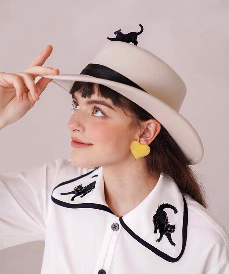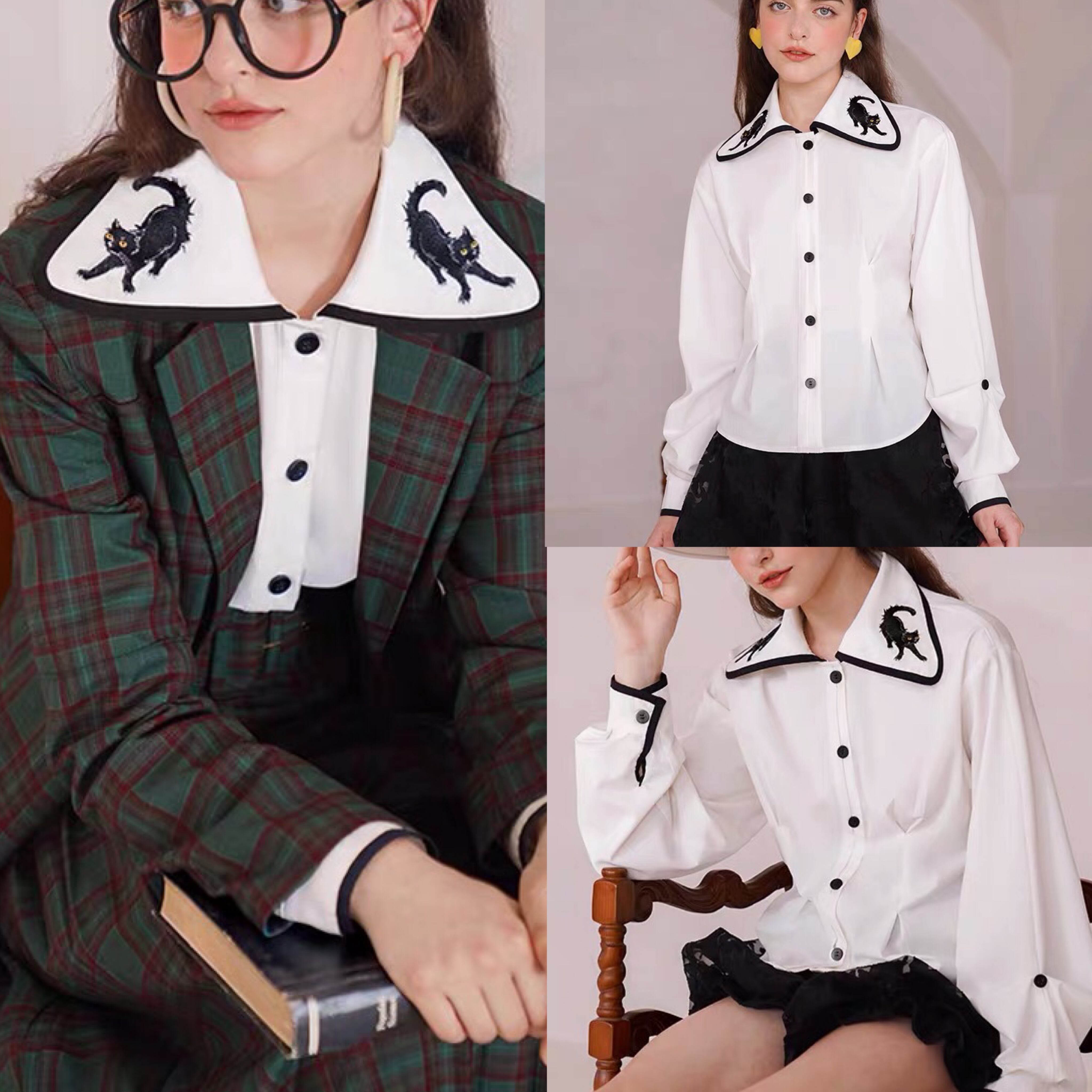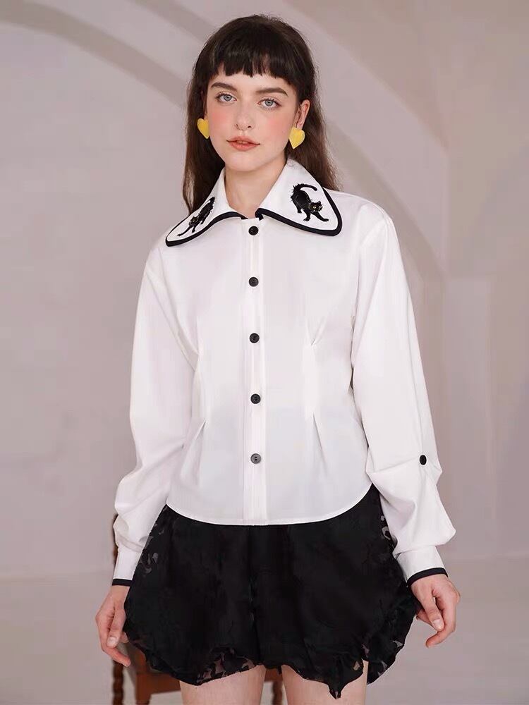 ブラウス ねこちゃん 猫 アニマル シャツ ワンピース ピンク 白 カジュアル ゆったり オーバーサイズ ビッグシルエット カジュアル トップス シンプル ブラウス 襟 シャツ カジュアル トップス