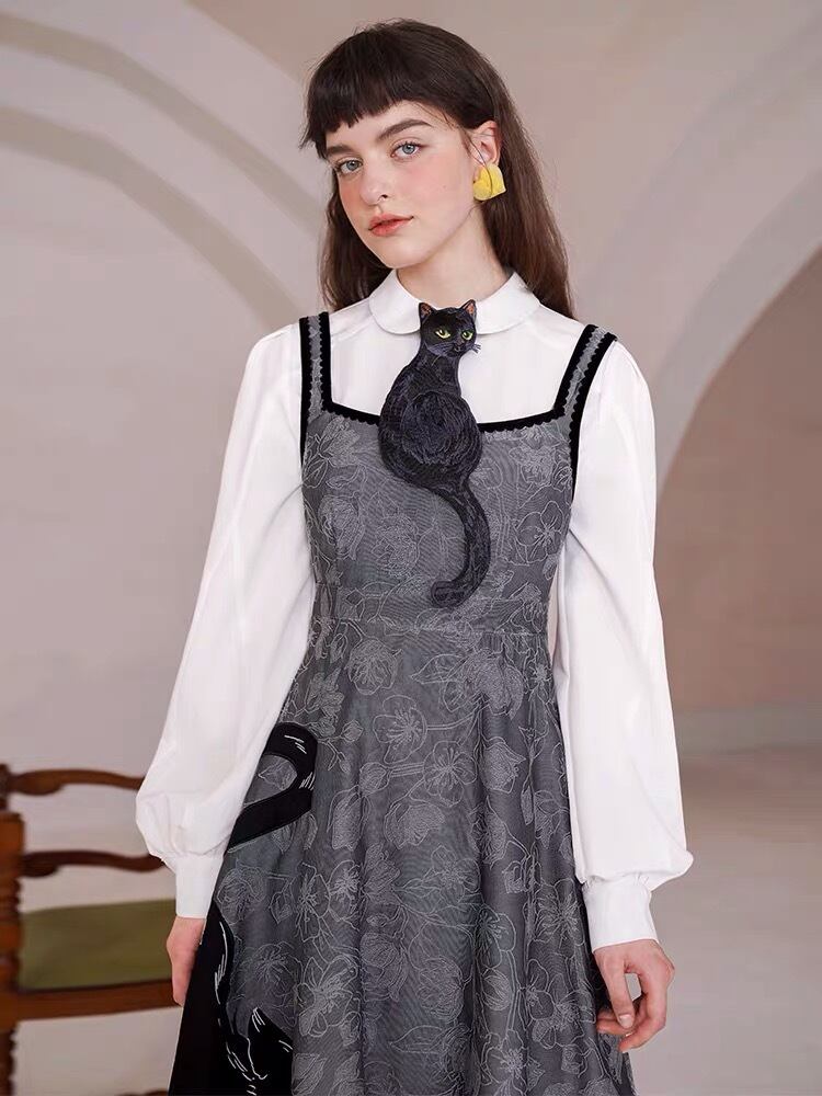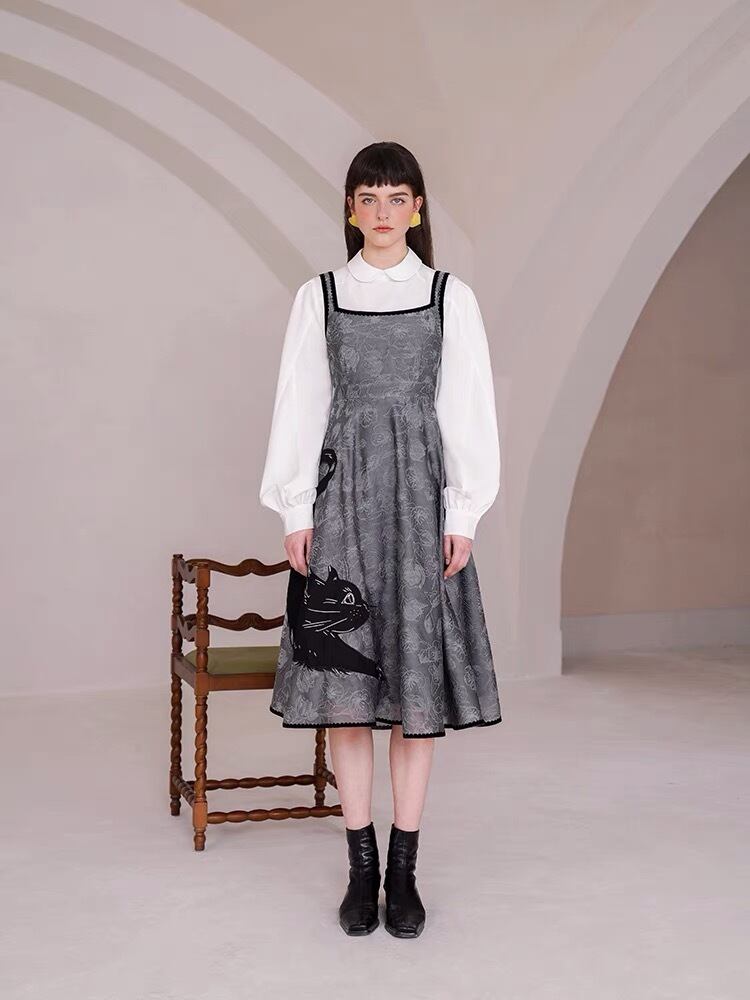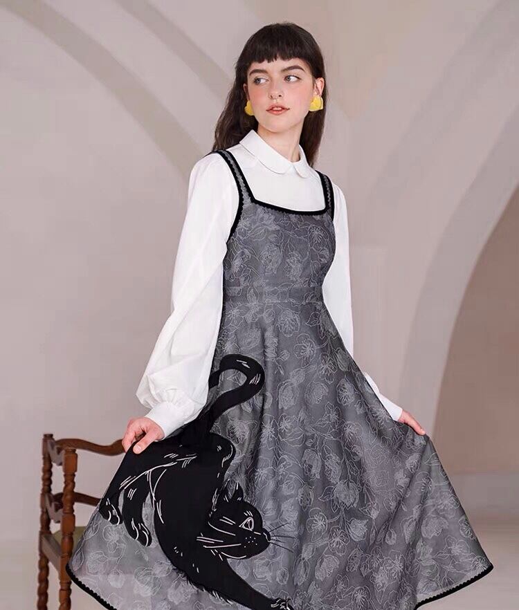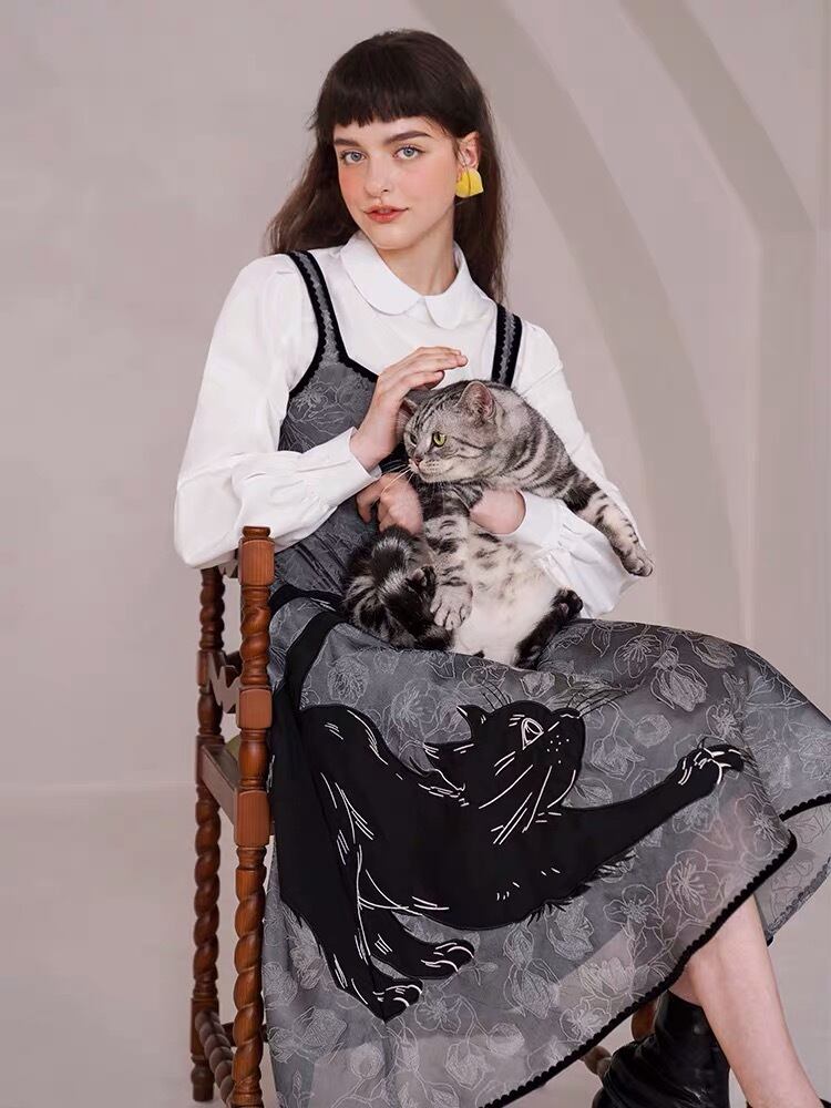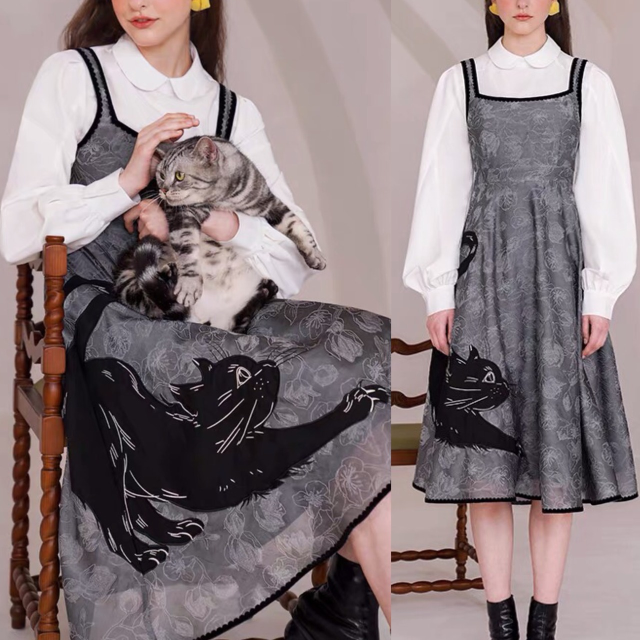 ワンピース グレー チェック スカート マキシ キャミソールゆったり ブラウス ねこちゃん 猫 アニマル シャツ ワンピース ピンク 白 カジュアル ゆったり オーバーサイズ ビッグシルエット カジュアル トップス シンプル