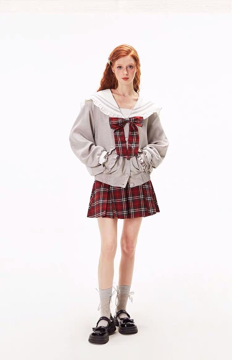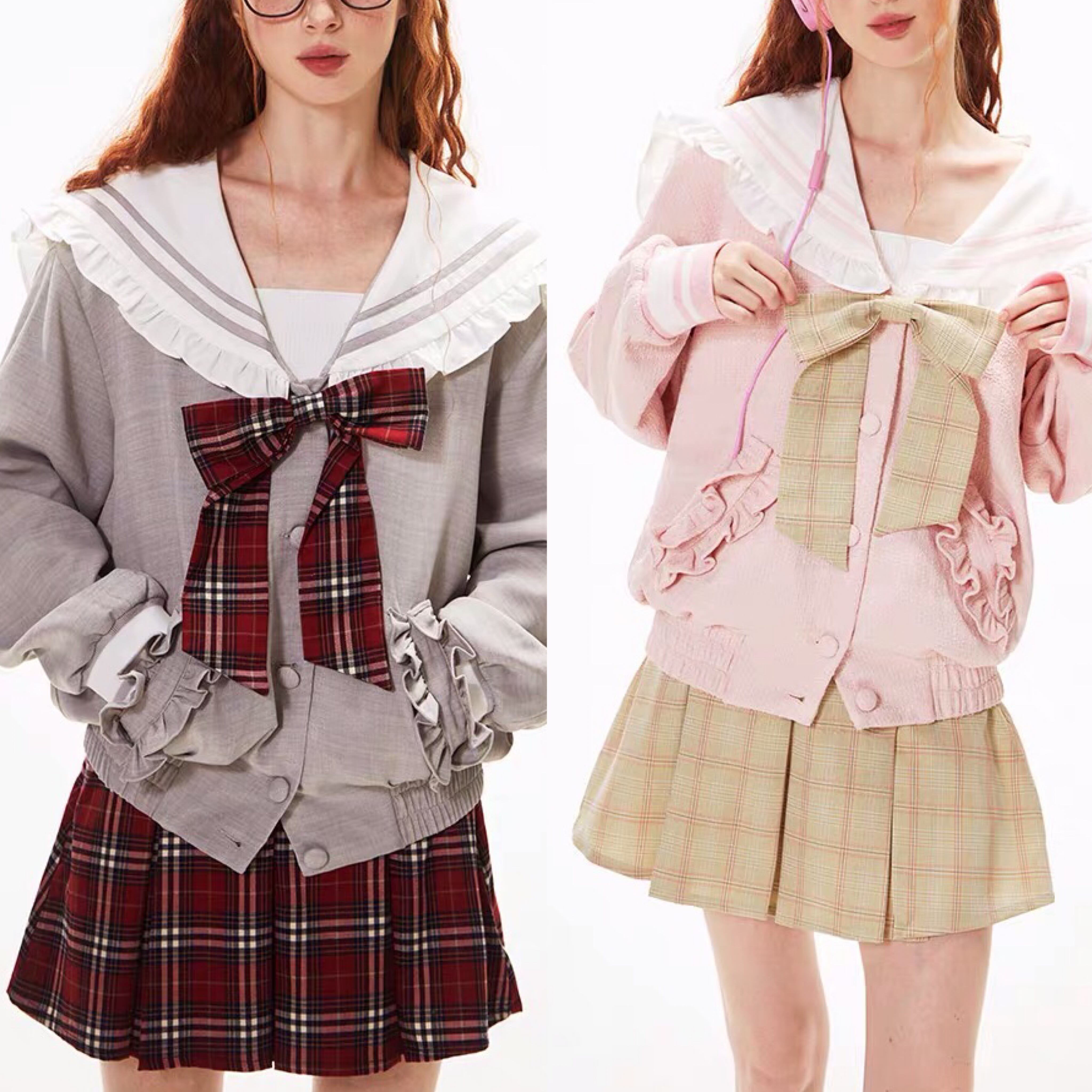 ジャケット カーディガン アウター セーター コート リボン 赤 グレー ピンク ベージュ ジャンパー ワンピース 緑 お嬢様 制服 スクール チェック リボン フリル ガーリー 白 ホワイト シンプル ボトムス マキシ ゆったり 原宿 渋谷 お嬢様 姫 エレガント フレア ワンピース ブラウス シンプら