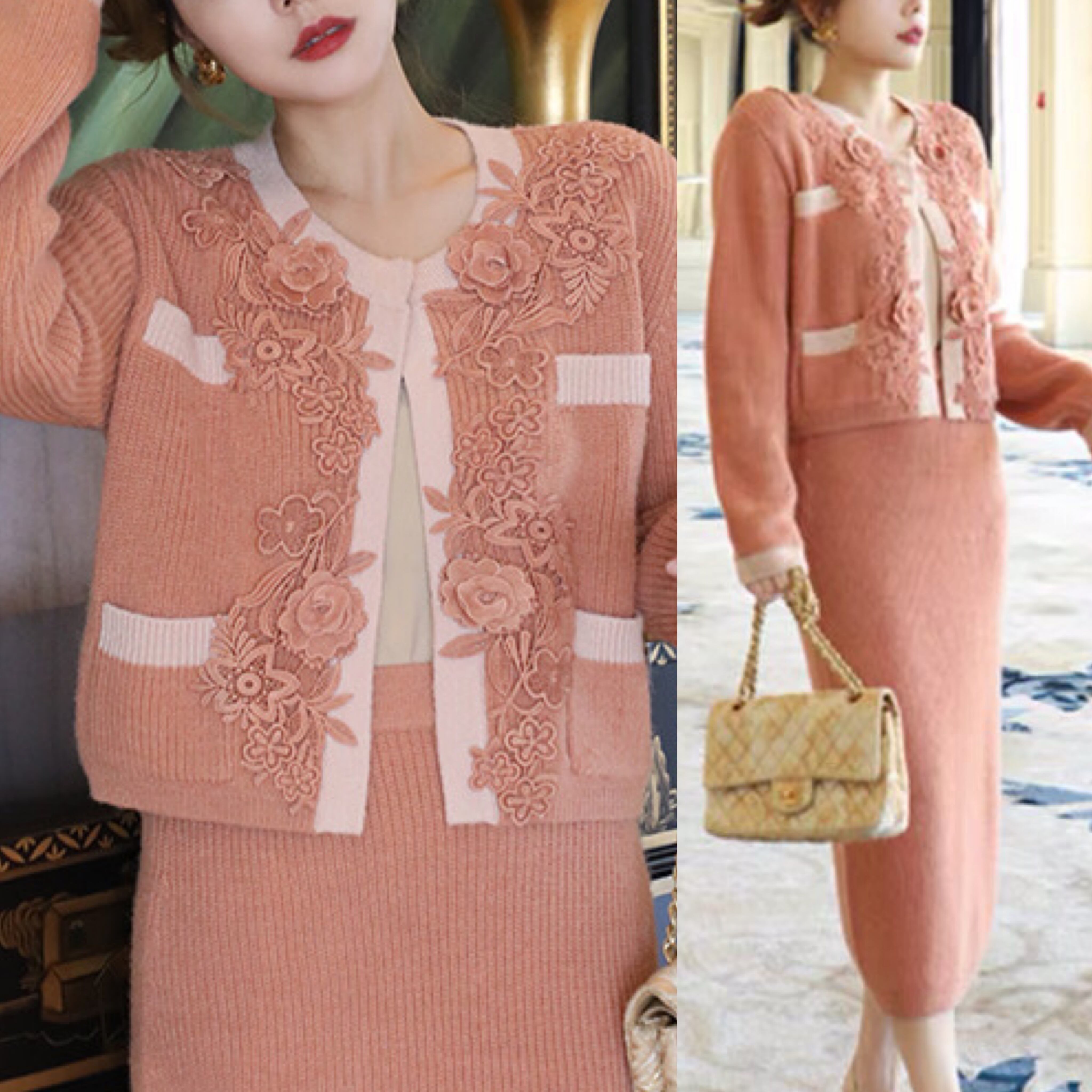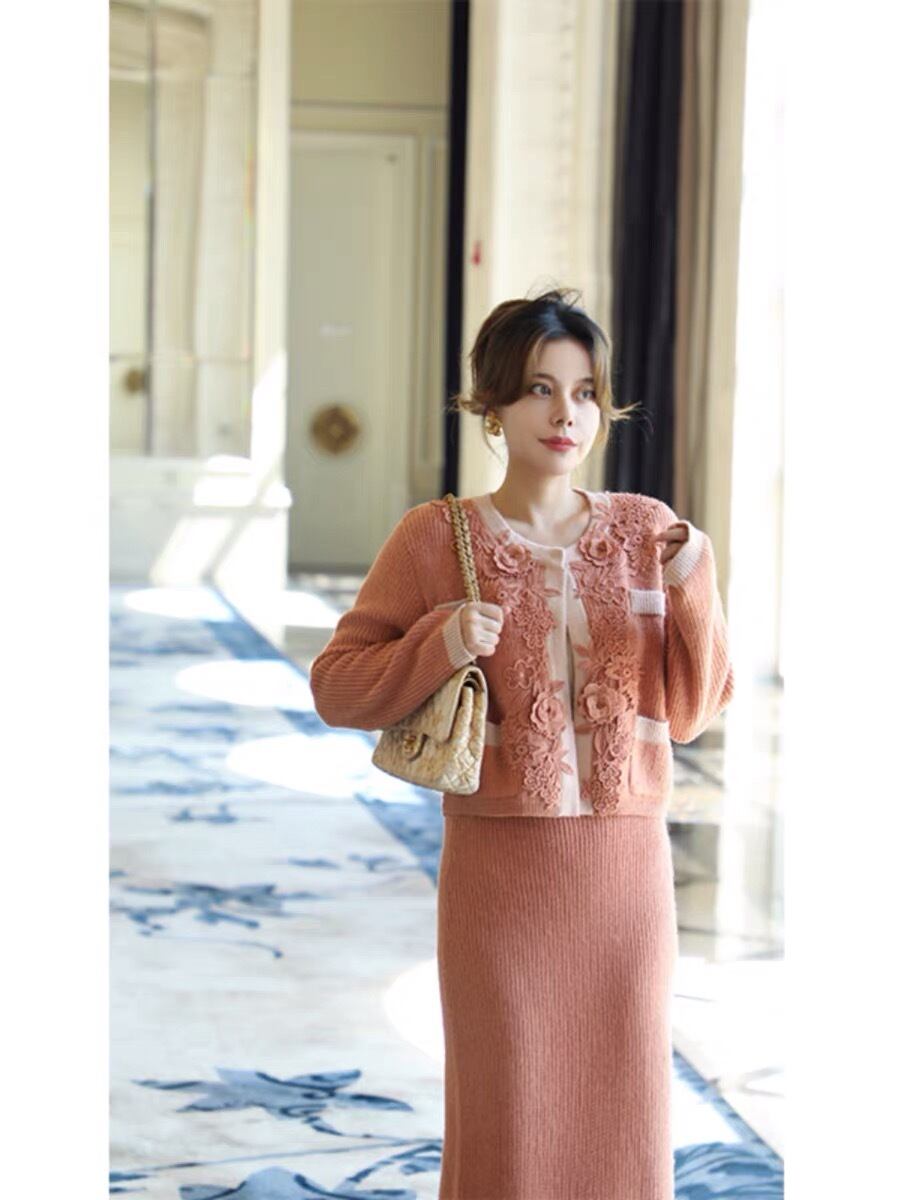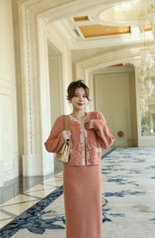 【セットアップ】オレンジ カーディガン ツイード トップス フリル ピンク 紫 黒 デコレーション パール ラインストーン ワンピース 緑 お嬢様 制服 スクール チェック リボン フリル ガーリー 白 ホワイト シンプル ボトムス マキシ ゆったり 原宿 渋谷 お嬢様 姫 エレガント フレア ワンピース ブラウス シンプら トップス