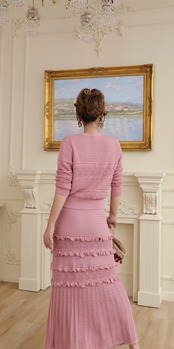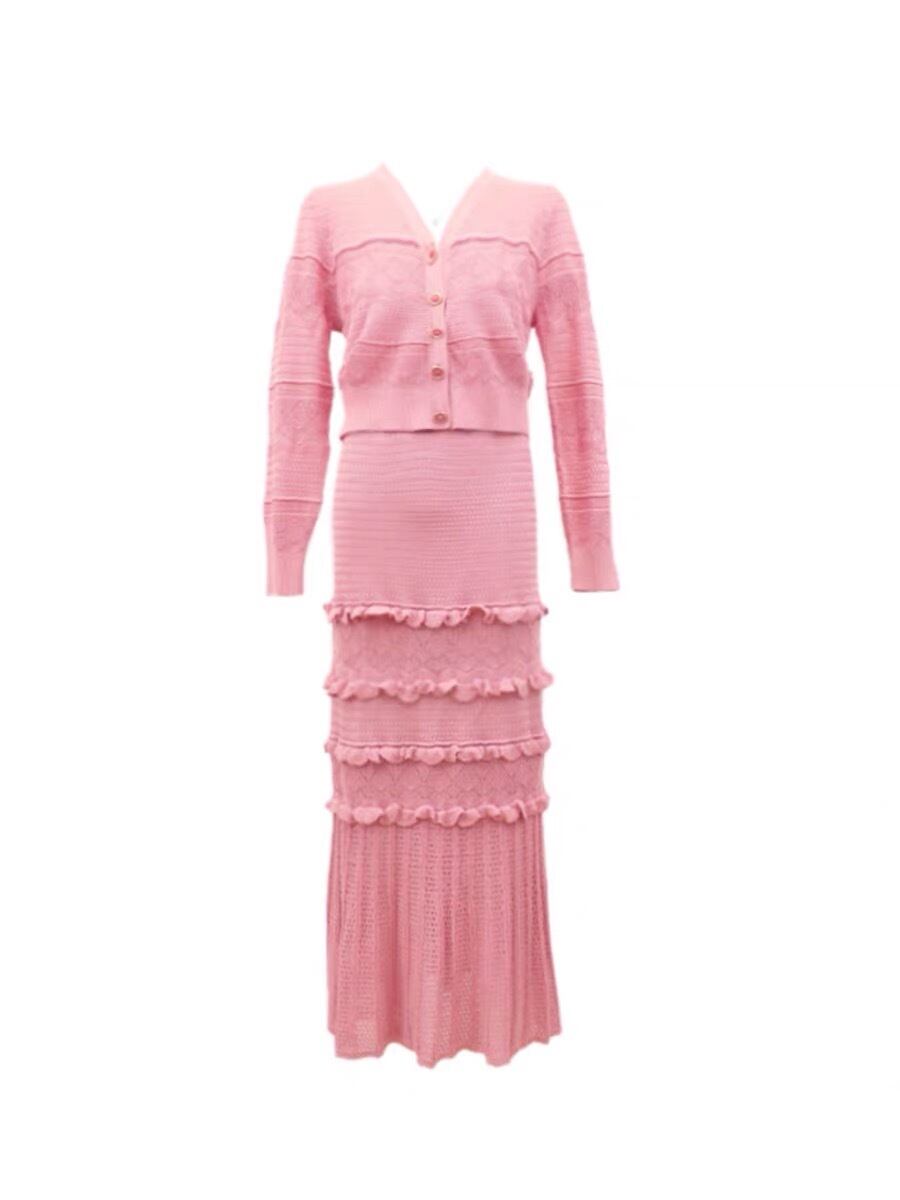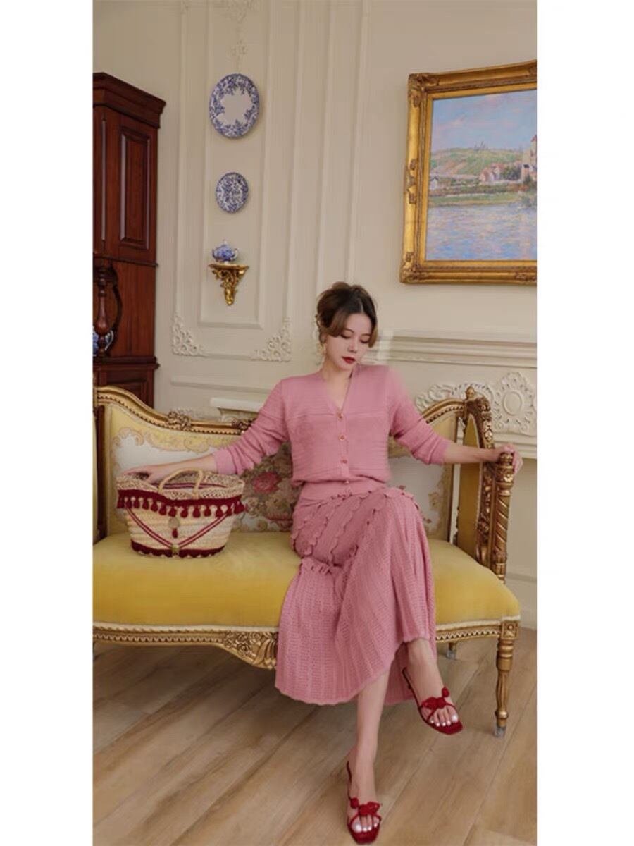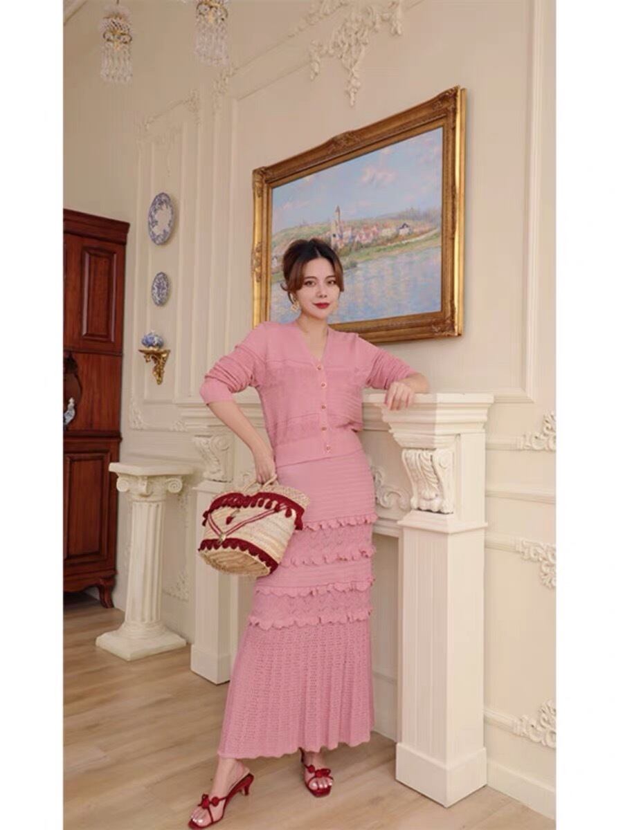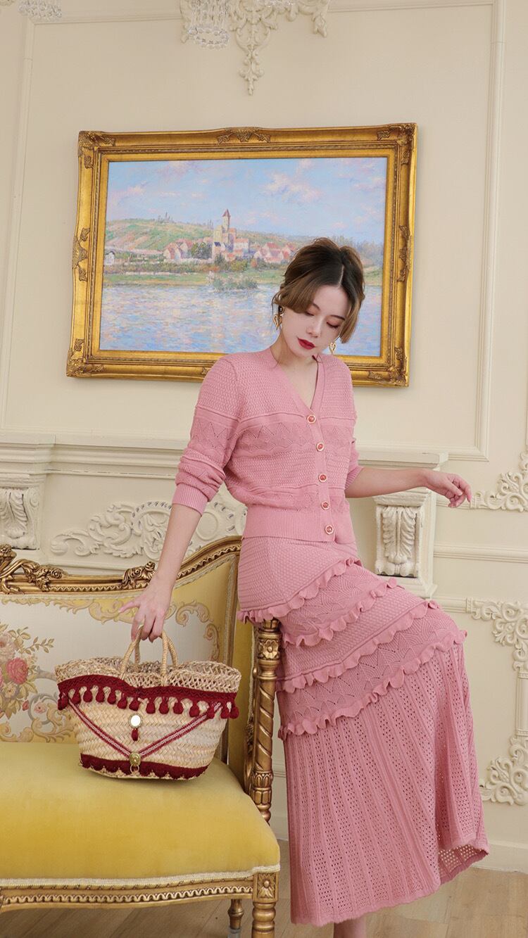 【セットアップ】ニット スカート マキシ トップス フリル ピンク 紫 黒 デコレーション パール ラインストーン ワンピース 緑 お嬢様 制服 スクール チェック リボン フリル ガーリー 白 ホワイト シンプル ボトムス マキシ ゆったり 原宿 渋谷 お嬢様 姫 エレガント フレア ワンピース ブラウス シンプら トップス