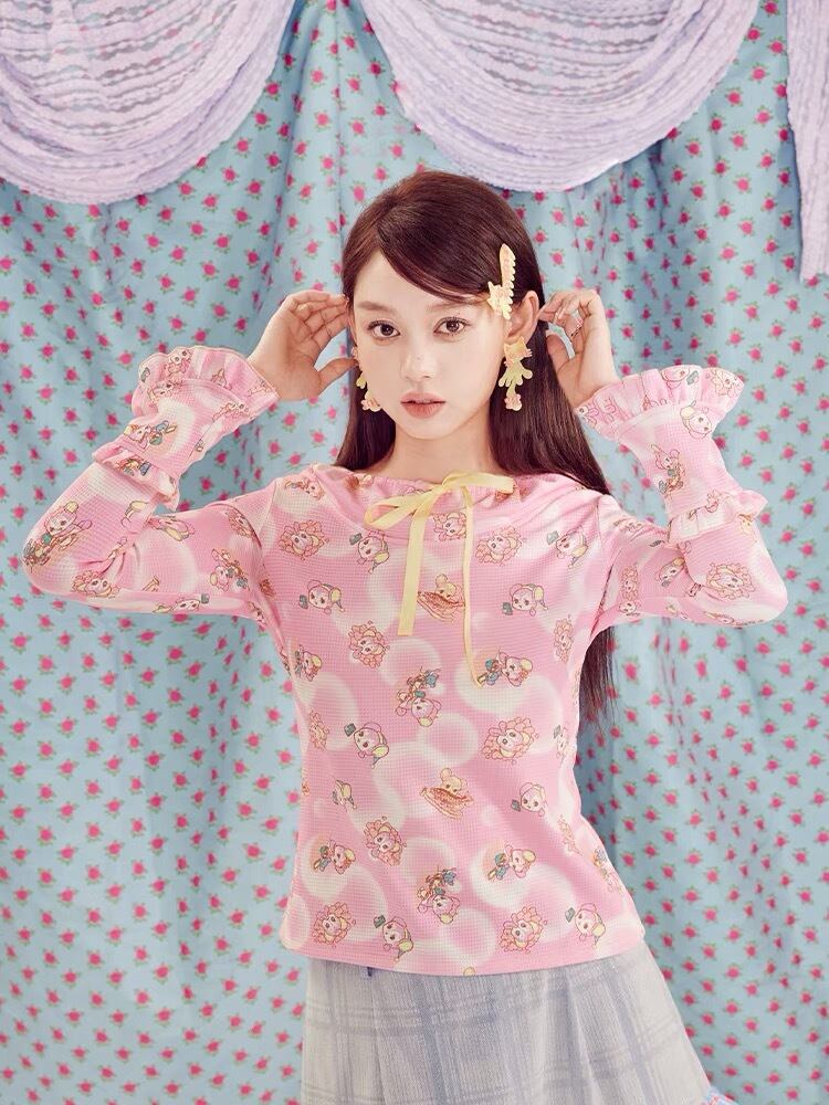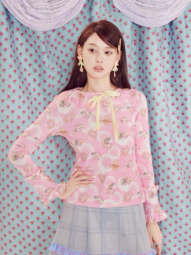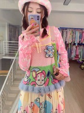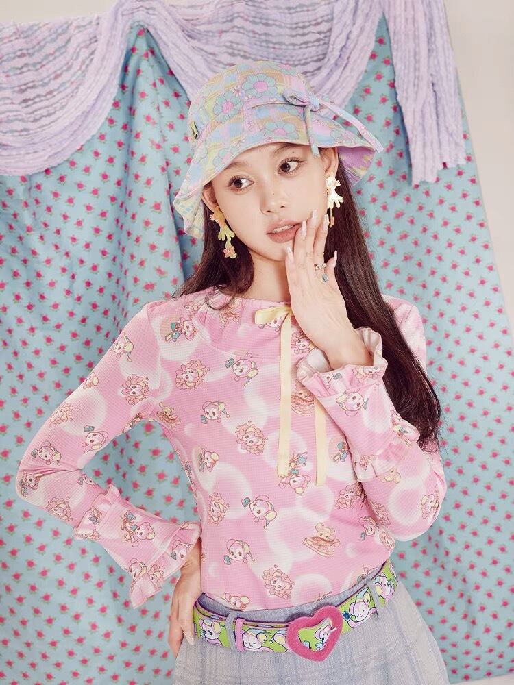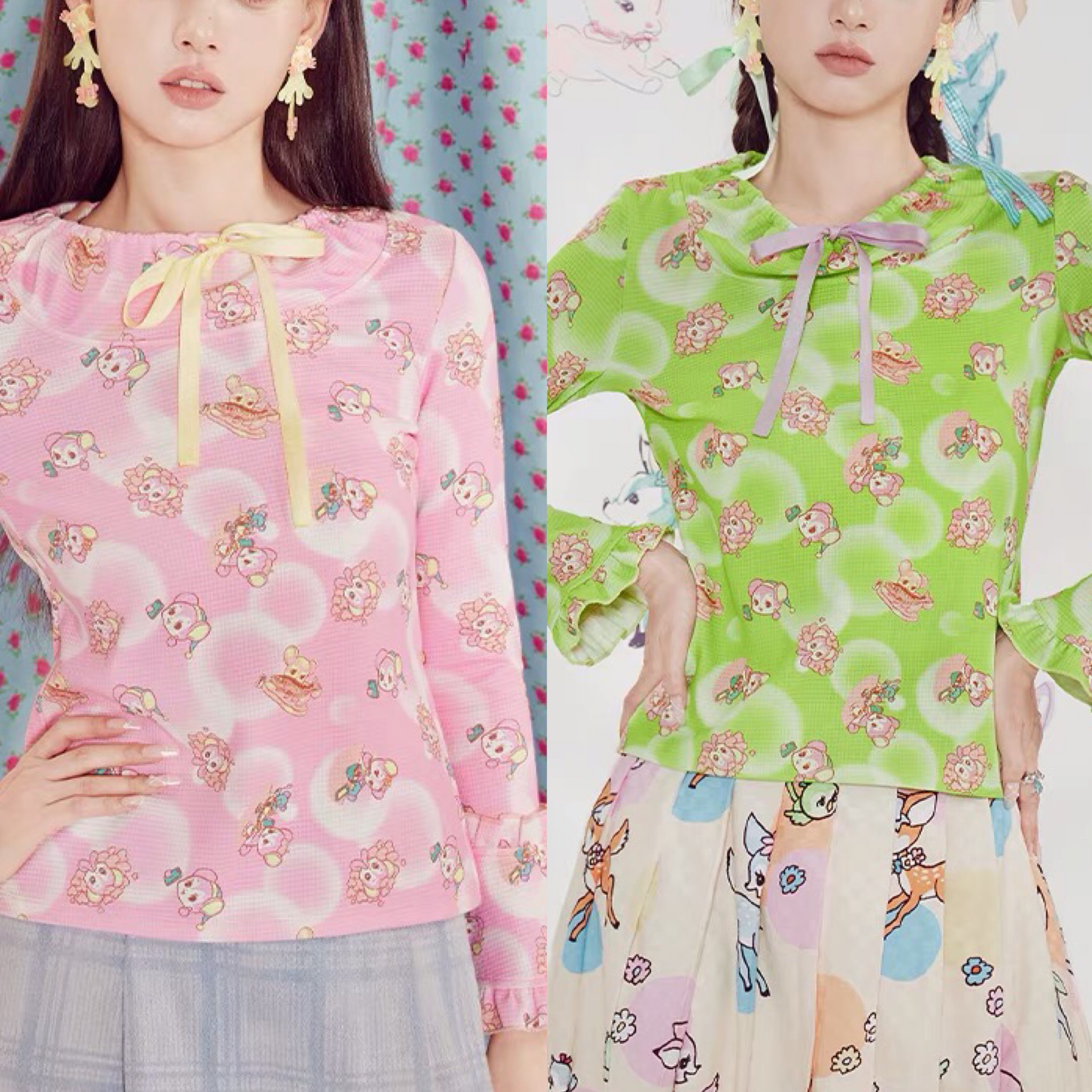 トップス 緑 ピンク Tシャツ ガーリー 白 ホワイト シンプル ボトムス マキシ ゆったり 原宿 渋谷 お嬢様 姫 エレガント フレア ワンピース ブラウス シンプル カラフル トップス カジュアル バンビ アニマル シカ