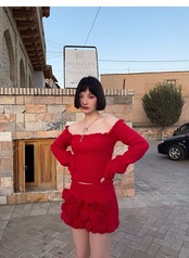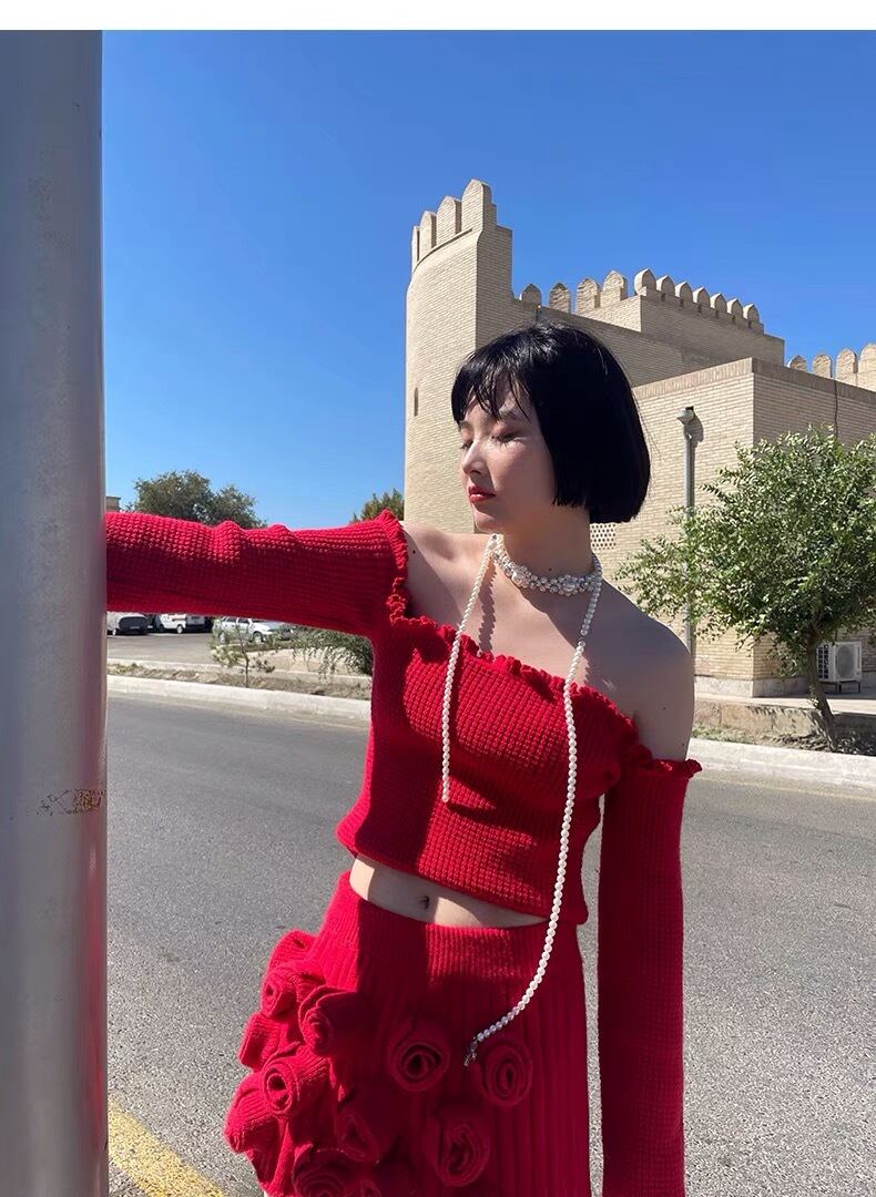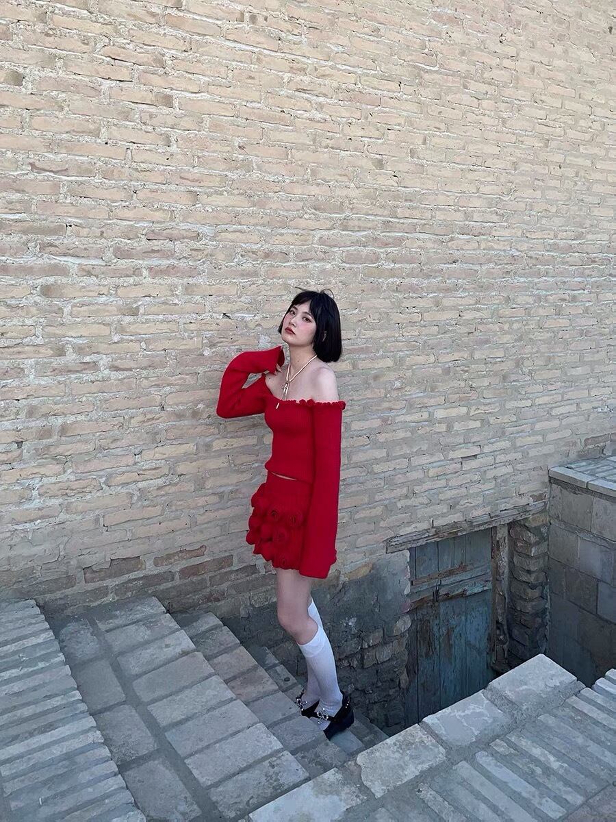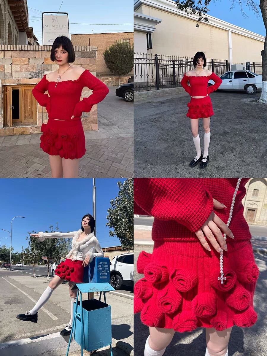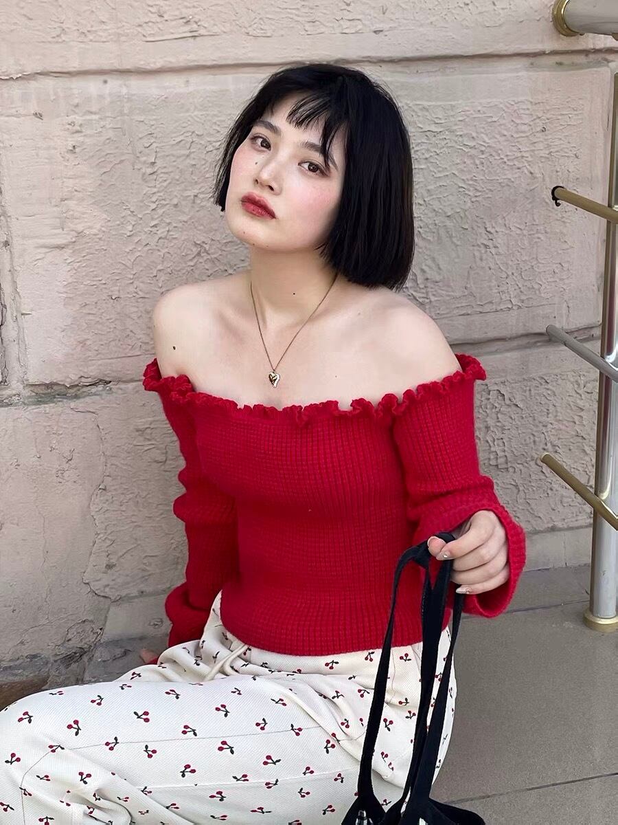 【トップス】赤 ニット オフショルダー セーター ワンピース 緑 お嬢様 制服 スクール チェック リボン フリル ガーリー 白 ホワイト シンプル ボトムス マキシ ゆったり 原宿 渋谷 お嬢様 姫 エレガント フレア ワンピース ブラウス シンプら カーディガン