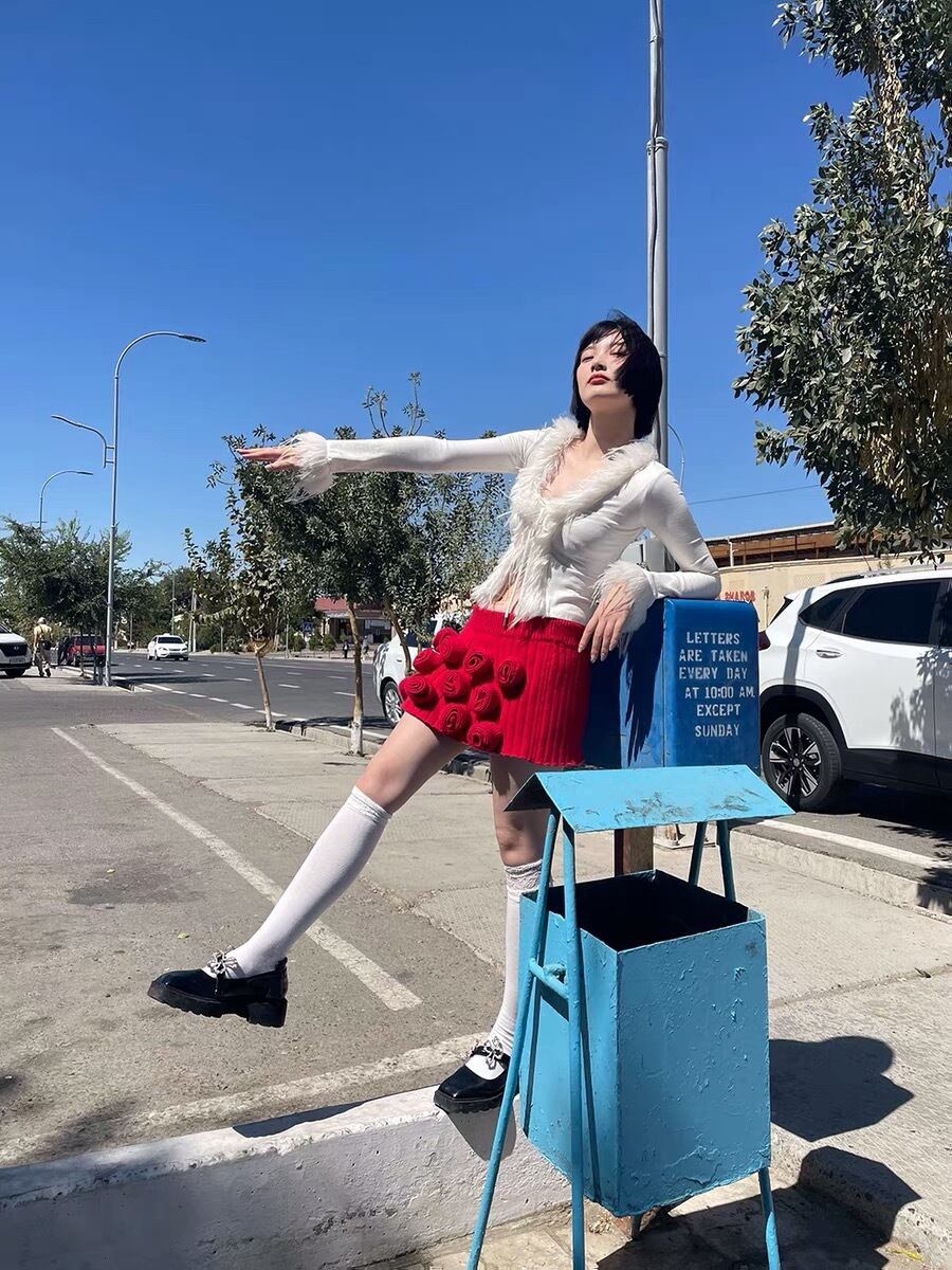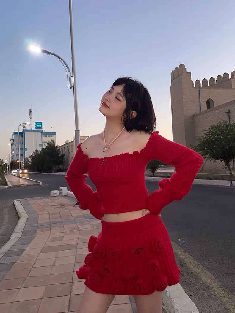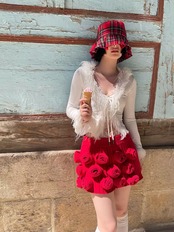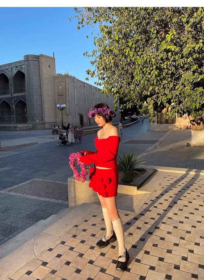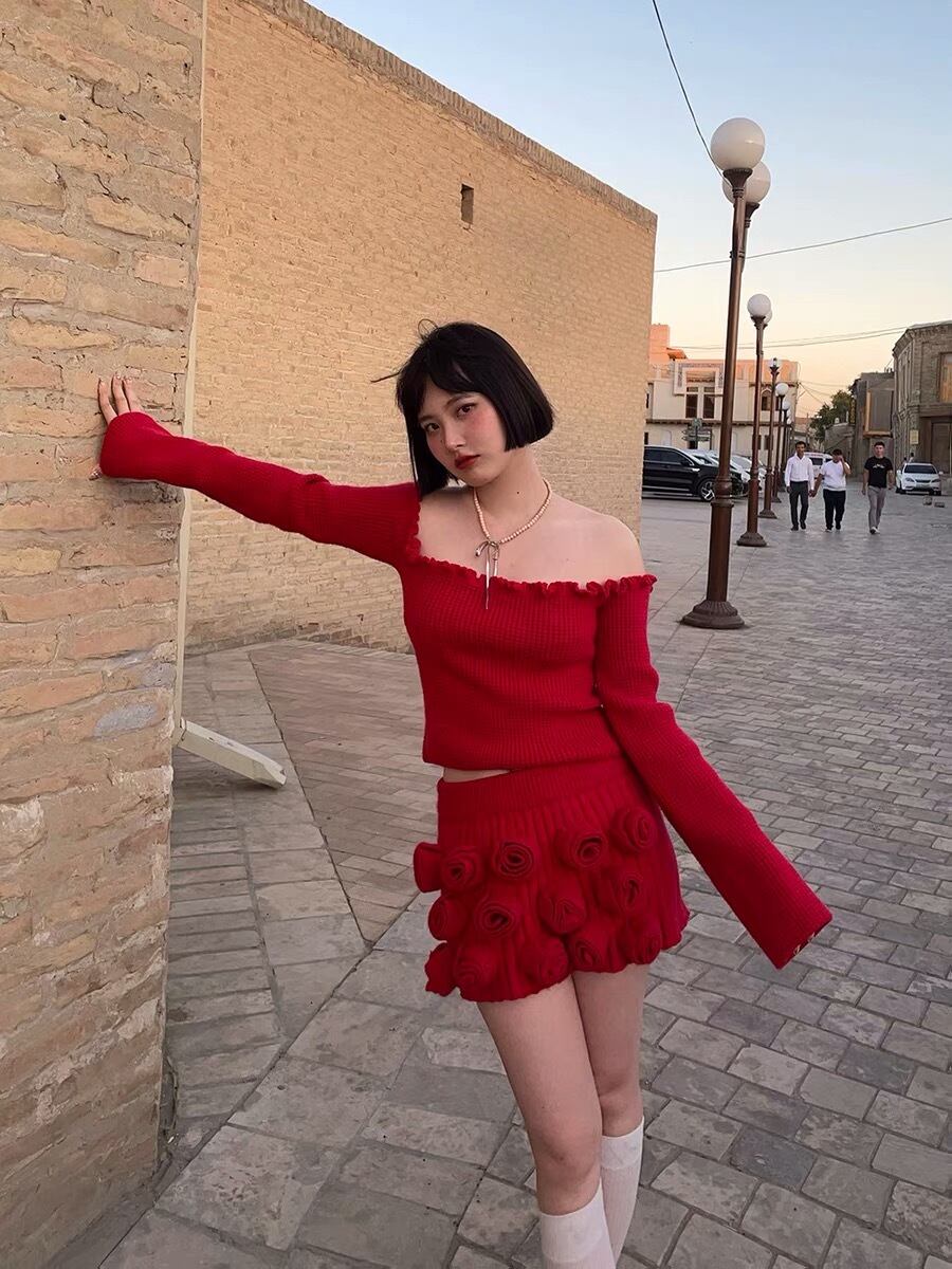 【スカート】薔薇 ニット 刺繍 花柄 フラワー ワンピース 緑 お嬢様 制服 スクール チェック リボン フリル ガーリー 白 ホワイト シンプル ボトムス マキシ ゆったり 原宿 渋谷 お嬢様 姫 エレガント フレア ワンピース ブラウス シンプら