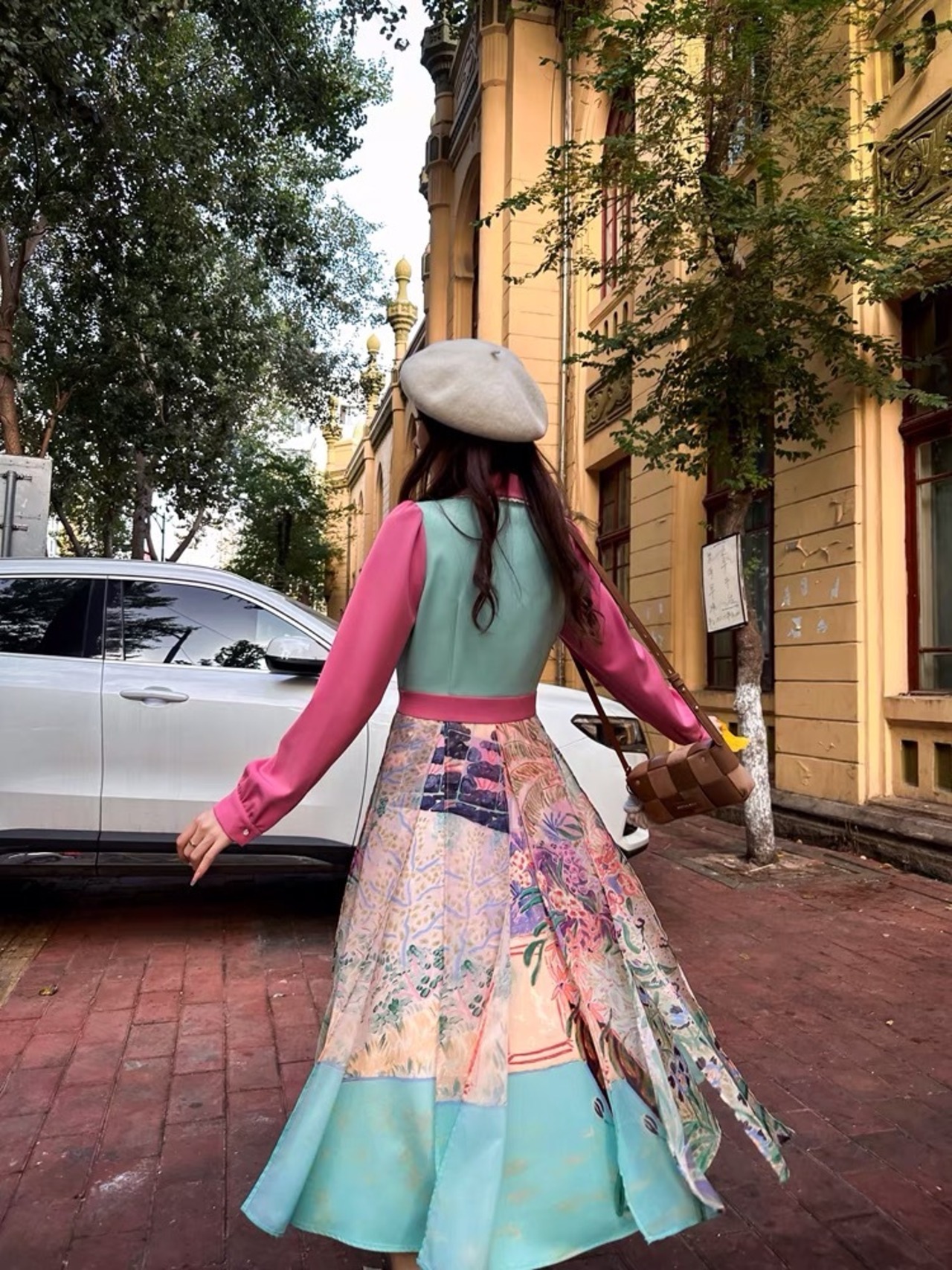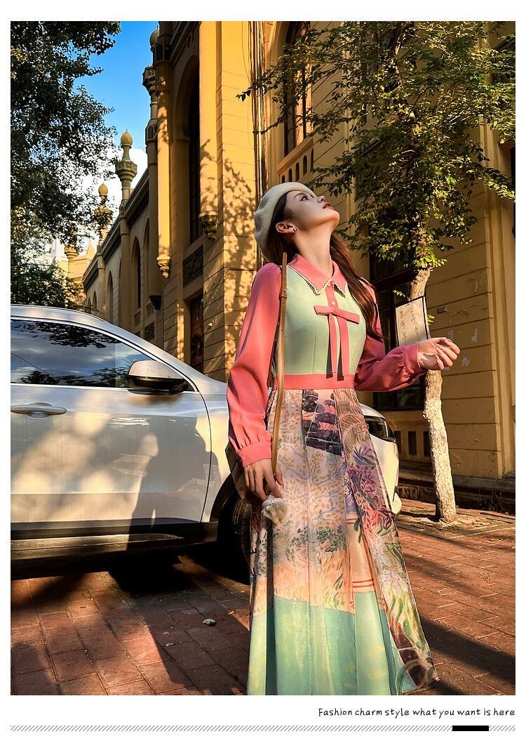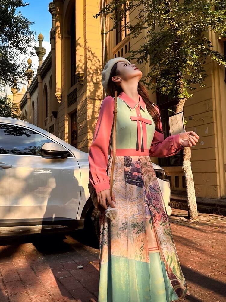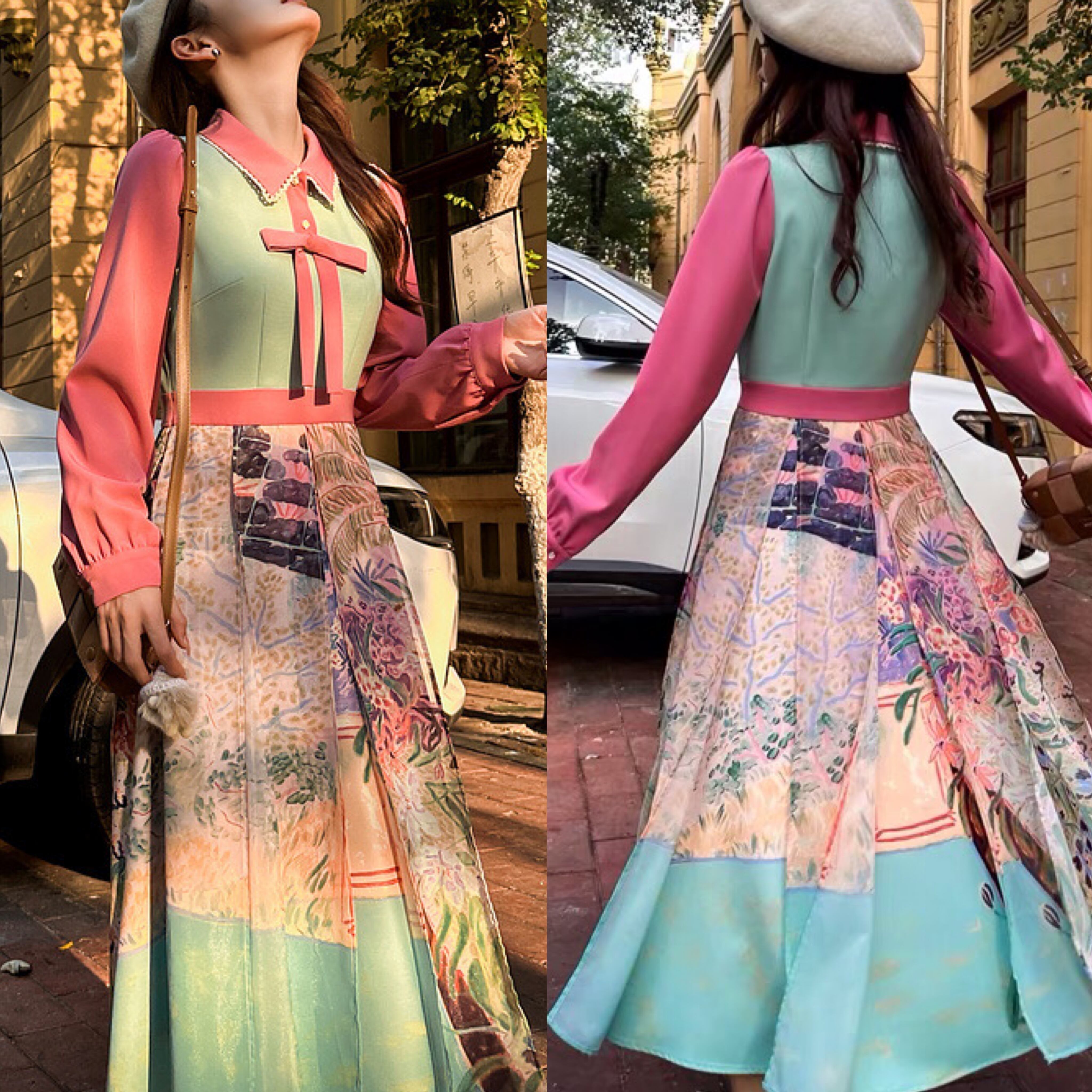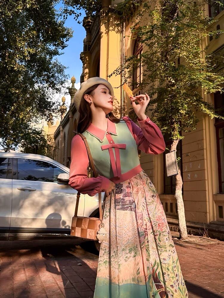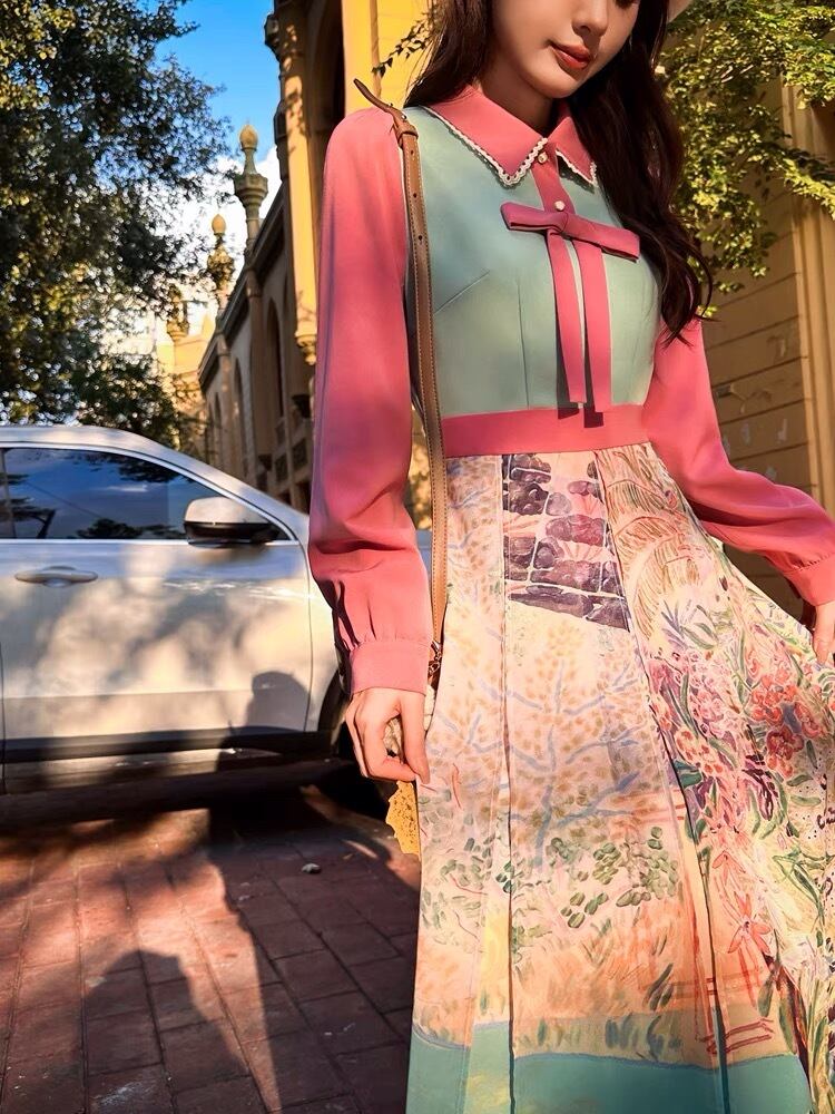 ワンピース カラフル グラデーション 絵画 リボン ピンク 水色 緑 ワンピース 緑 お嬢様 制服 スクール チェック リボン フリル ガーリー 白 ホワイト シンプル ボトムス マキシ ゆったり 原宿 渋谷 お嬢様 姫 エレガント フレア ワンピース ブラウス シンプら