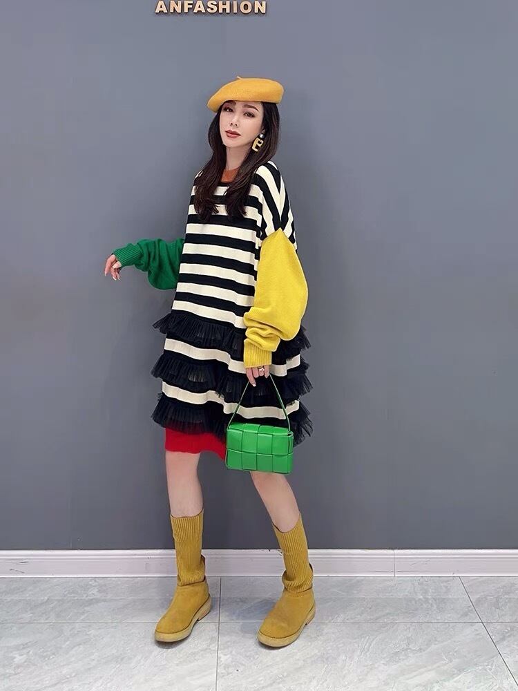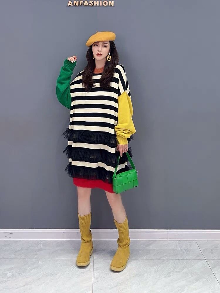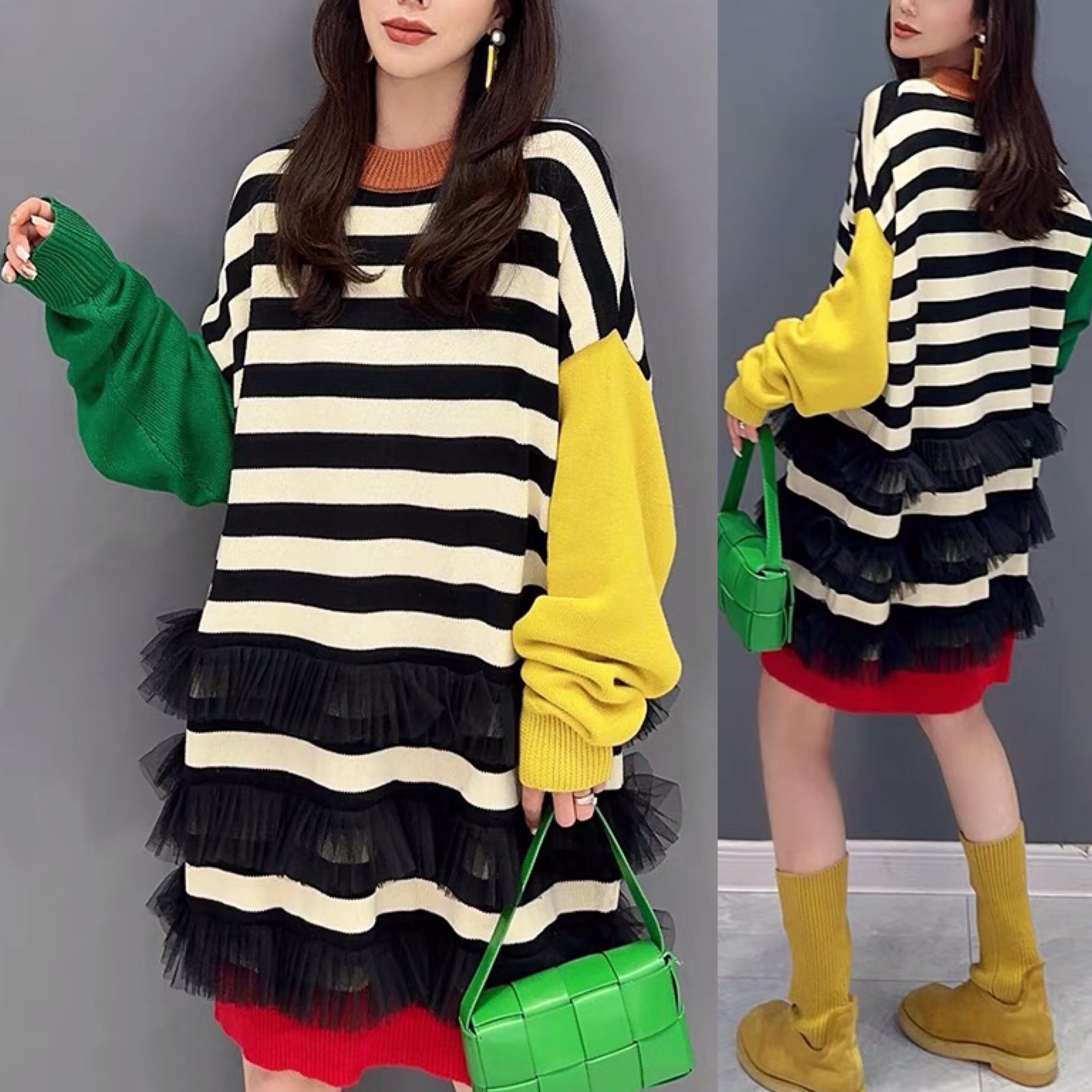 ワンピース セーター ゆったり オーバーサイズ ワンピース 緑 お嬢様 制服 スクール チェック リボン フリル ガーリー 白 ホワイト シンプル ボトムス マキシ ゆったり 原宿 渋谷 お嬢様 姫 エレガント フレア ワンピース ブラウス シンプら 黄色 ボーダー 黒 カラフル 緑