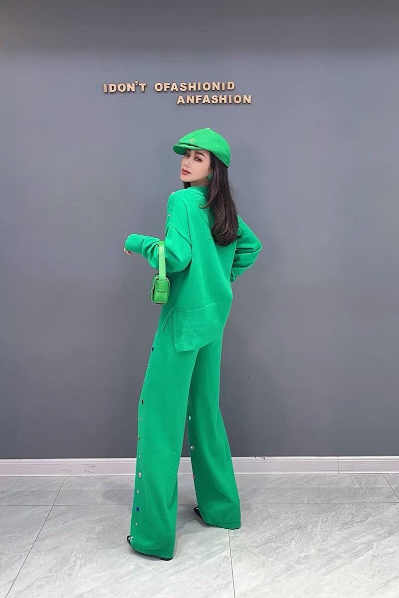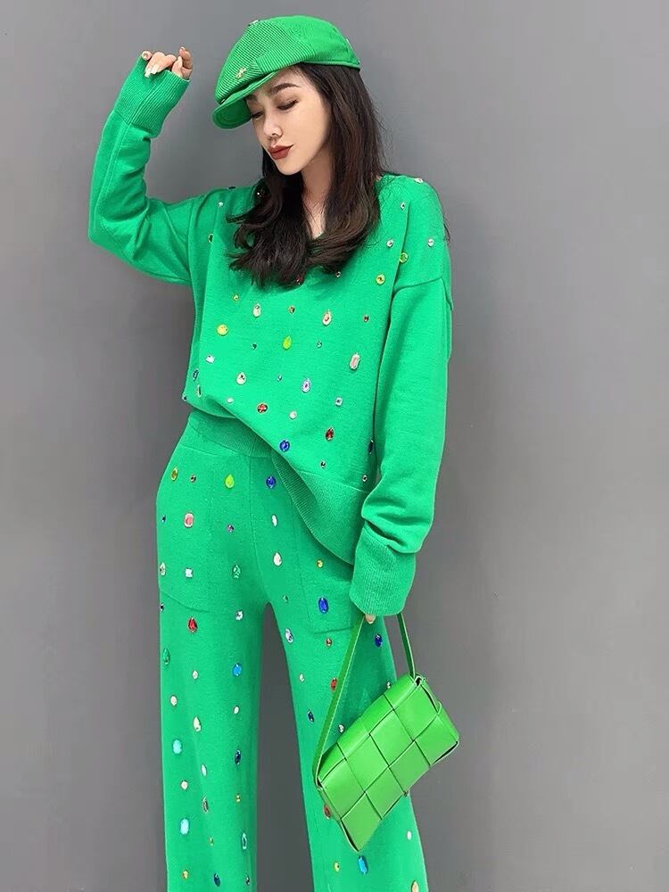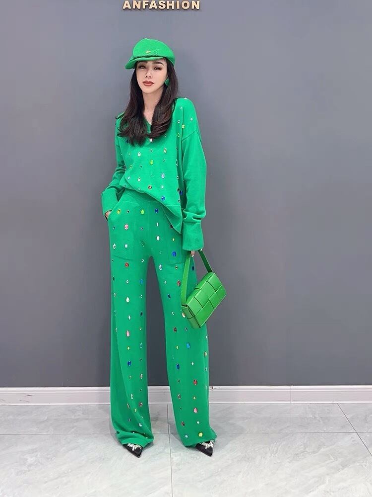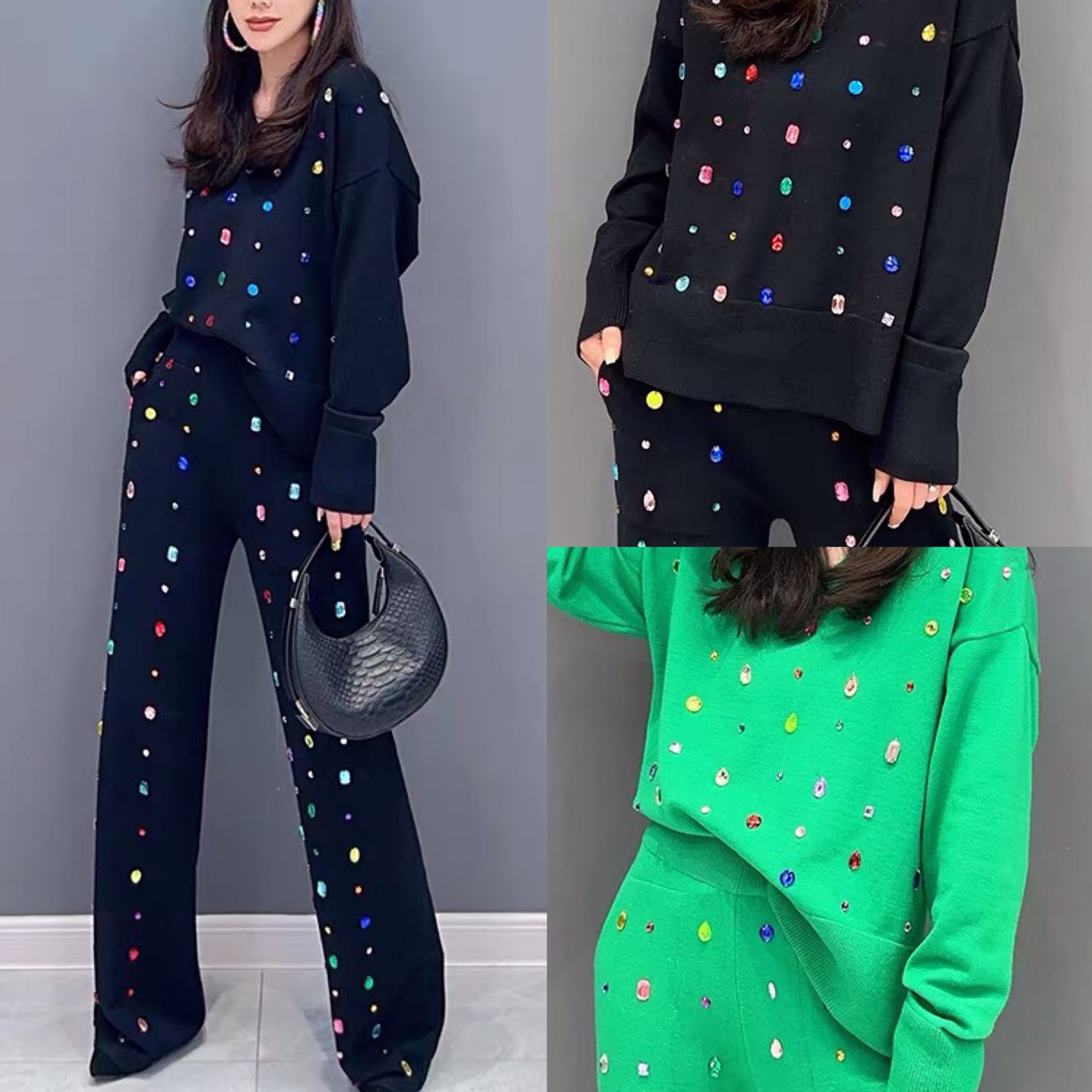 【セットアップ】黒 緑 パンツ ボトムス カラフル ストーン デコレーション ワンピース 緑 お嬢様 制服 スクール チェック リボン フリル ガーリー 白 ホワイト シンプル ボトムス マキシ ゆったり 原宿 渋谷 お嬢様 姫 エレガント フレア ワンピース ブラウス シンプル ニット パンツ スウェット