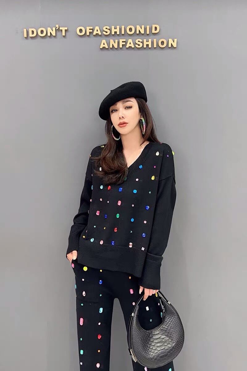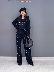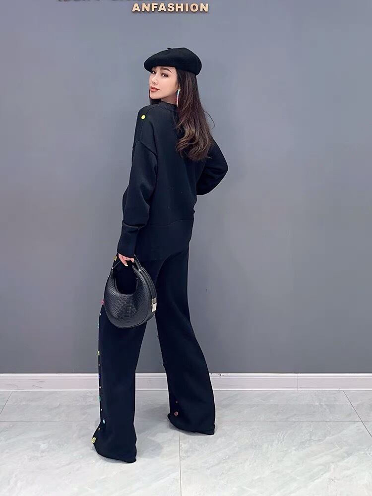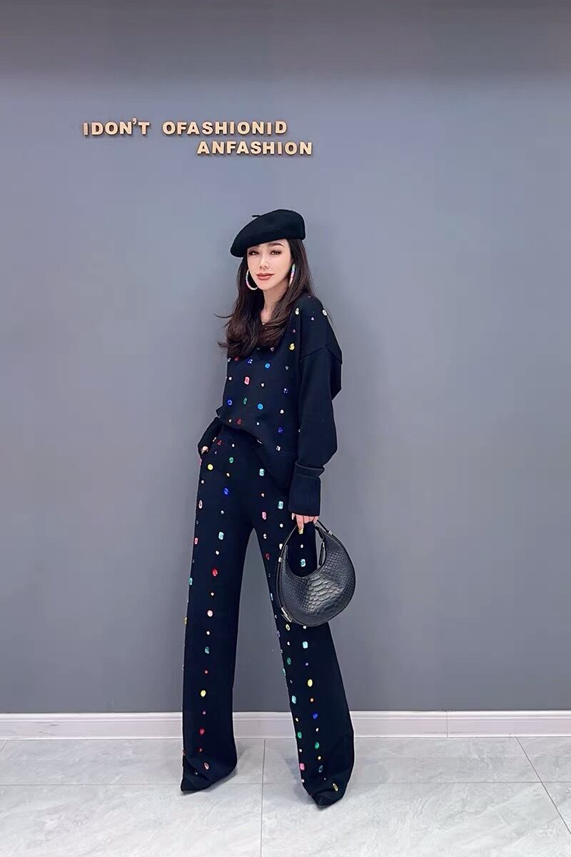 【セットアップ】黒 緑 パンツ ボトムス カラフル ストーン デコレーション ワンピース 緑 お嬢様 制服 スクール チェック リボン フリル ガーリー 白 ホワイト シンプル ボトムス マキシ ゆったり 原宿 渋谷 お嬢様 姫 エレガント フレア ワンピース ブラウス シンプル ニット パンツ スウェット