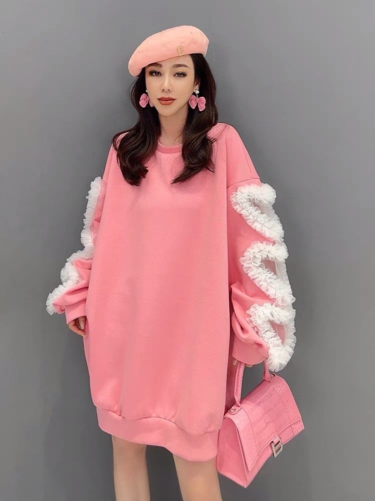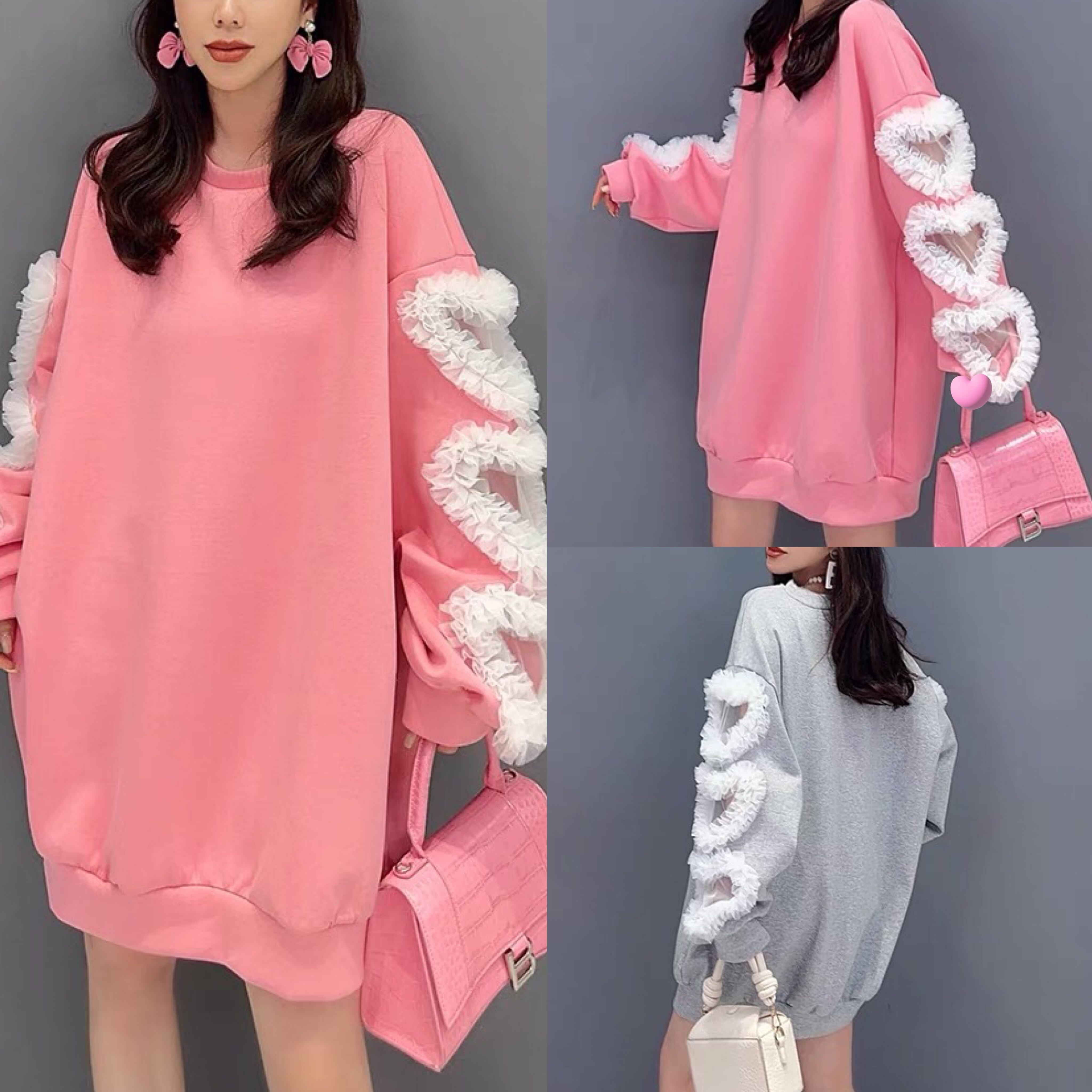 トレーナー リボン ハート パーカー トレーナー スウェット グレー デコレーション リボン ワンピース 緑 お嬢様 制服 スクール チェック リボン フリル ガーリー 白 ホワイト シンプル ボトムス マキシ ゆったり 原宿 渋谷 お嬢様 姫 エレガント フレア ワンピース ブラウス シンプら