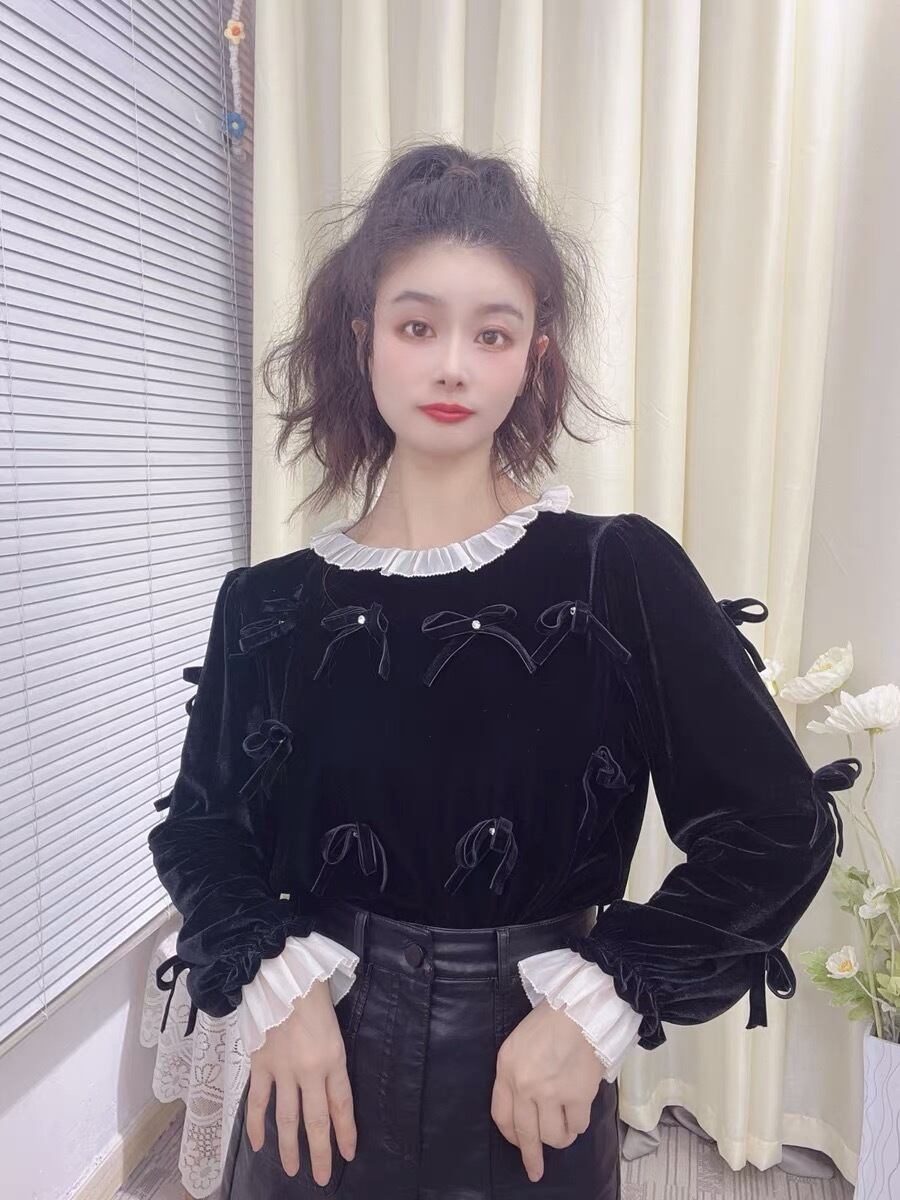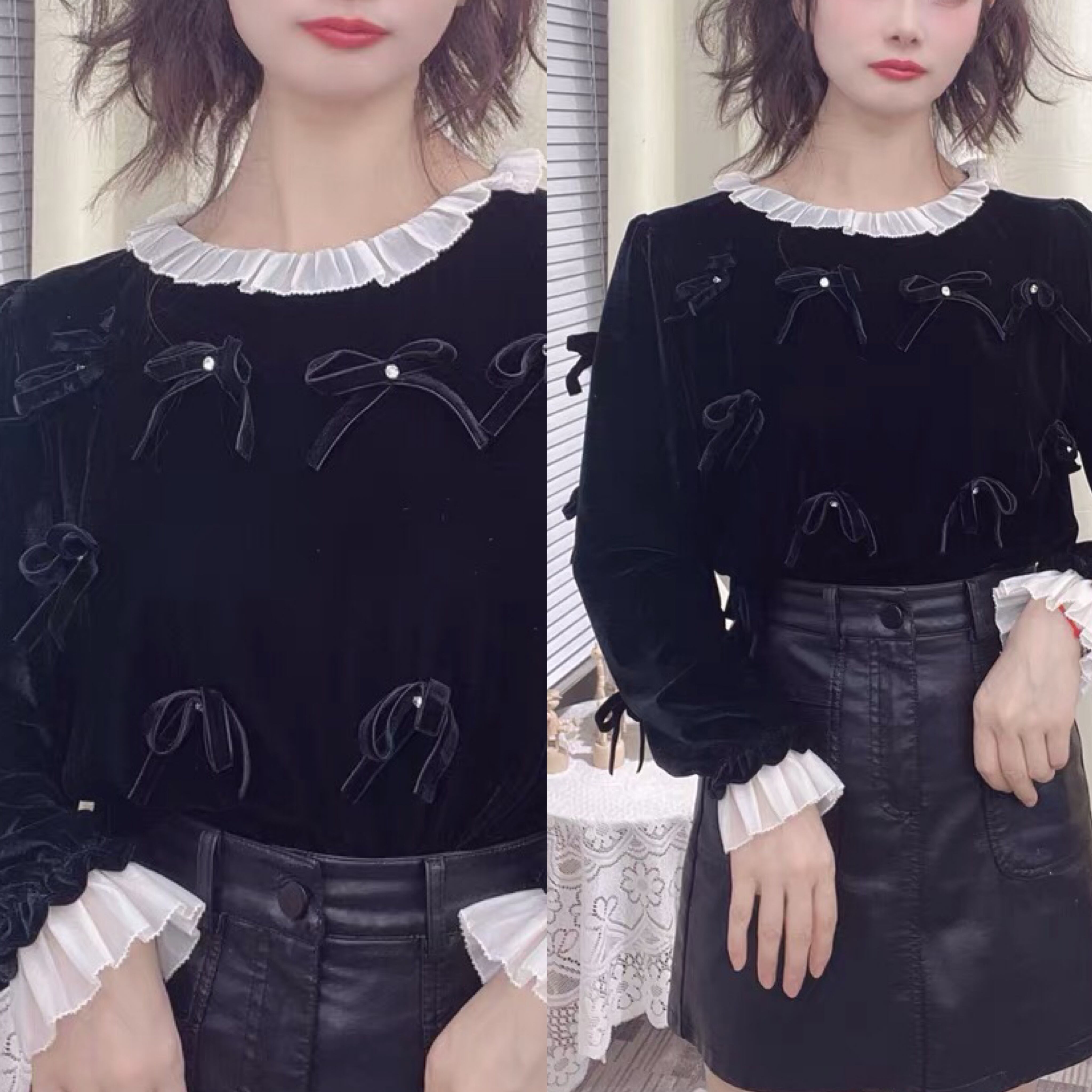 トップス 黒 ベルベット リボン デコレーション トップス フリル ピンク 紫 黒 デコレーション パール ラインストーン ワンピース 緑 お嬢様 制服 スクール チェック リボン フリル ガーリー 白 ホワイト シンプル ボトムス マキシ ゆったり 原宿 渋谷 お嬢様 姫 エレガント フレア ワンピース ブラウス シンプら トップス