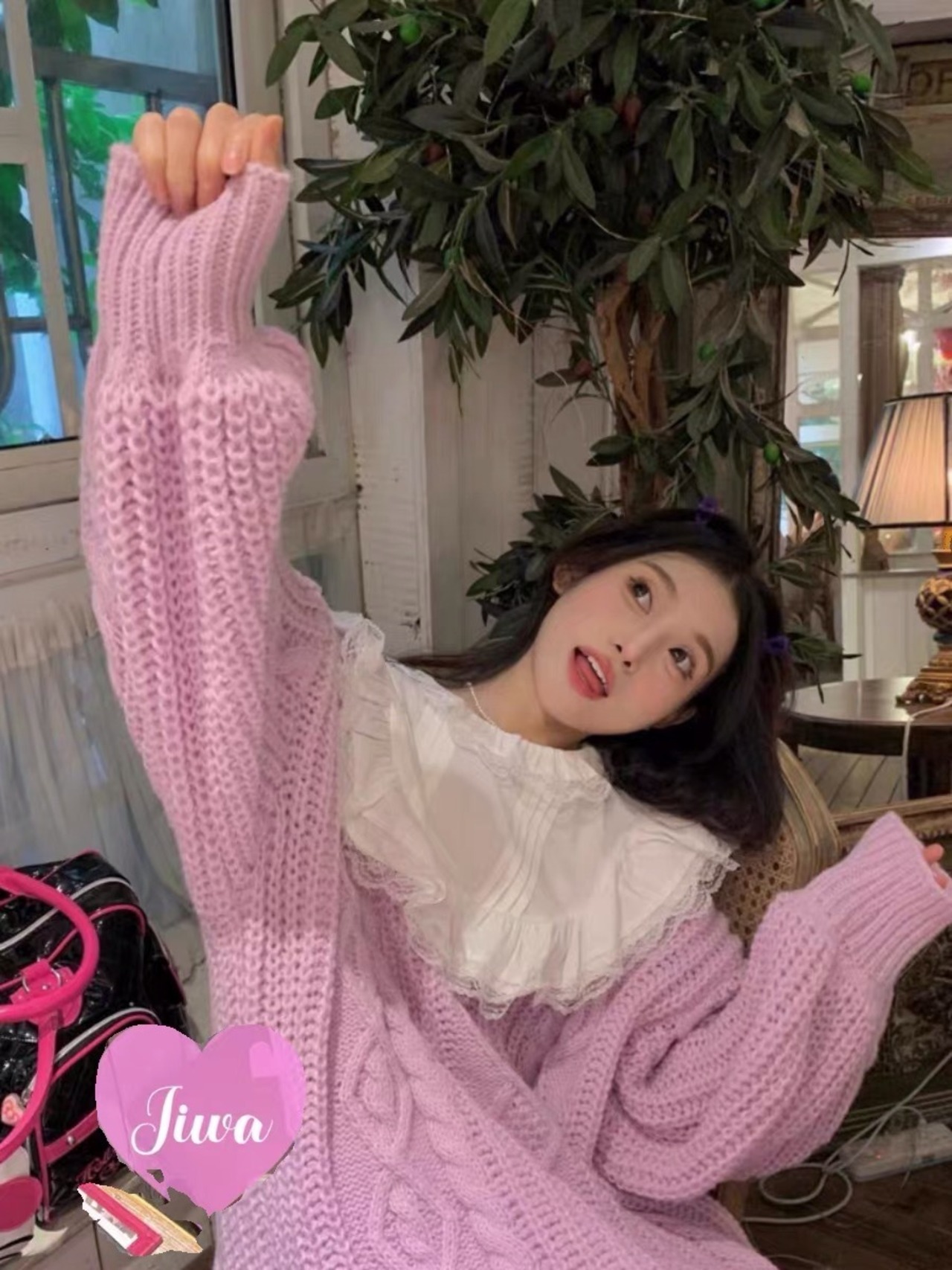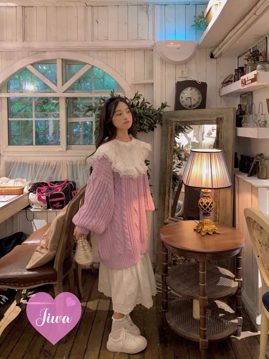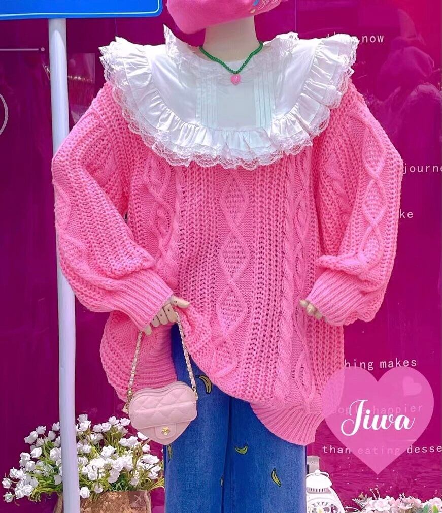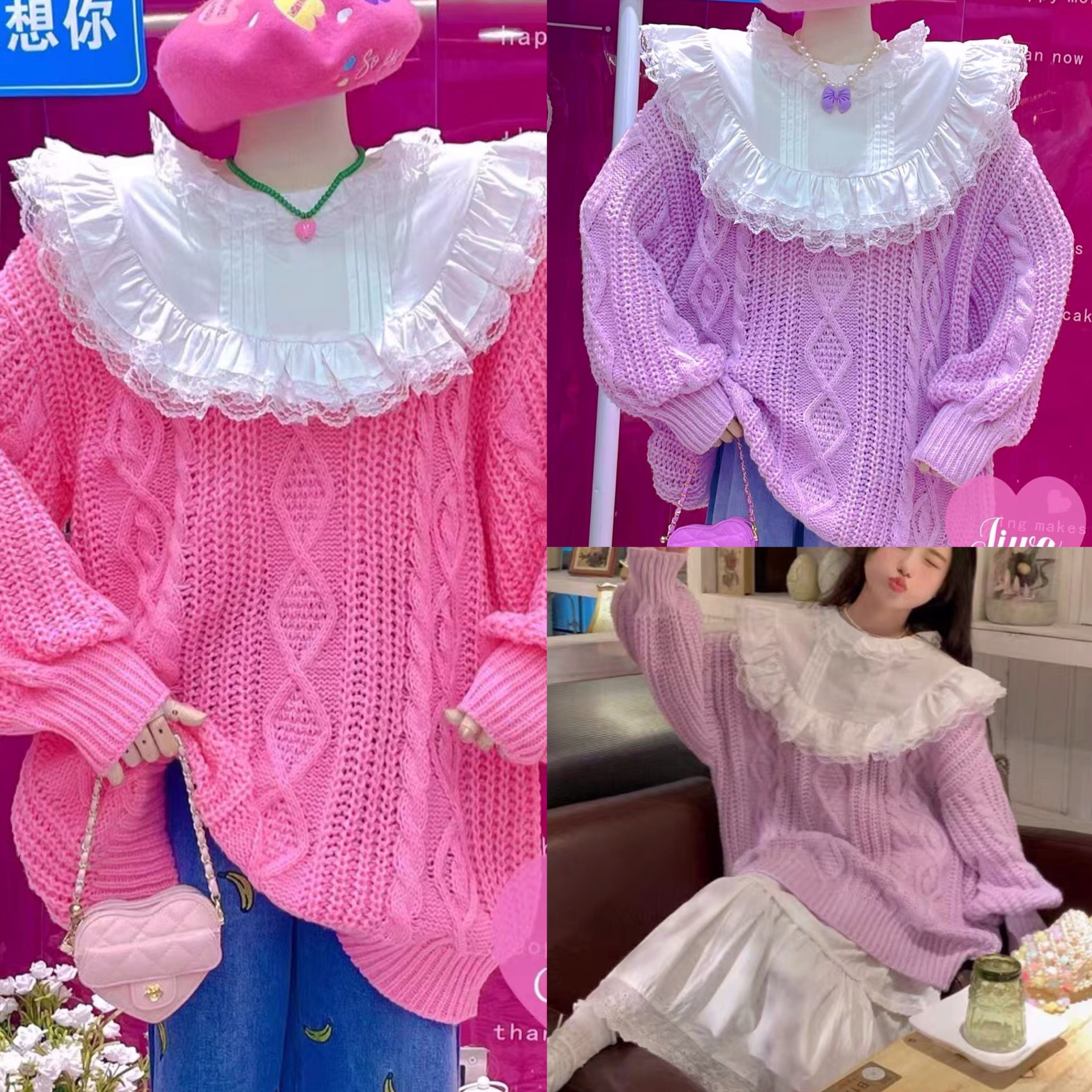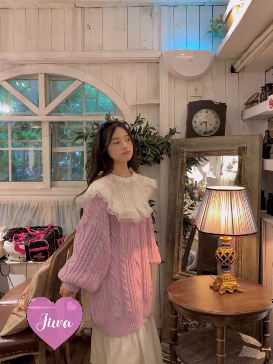 セーター ニット ピンク 紫 ブラウス リボン オーバーサイズ ジャケット ガーリー 可愛い かわいい 姫 ピンク コート アウター カーディガン ゆったり 原宿 渋谷 ジャンパー アウター カーディガン