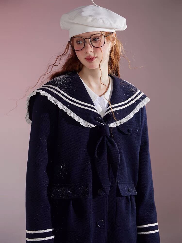 コート セーラー ネイビー ジャケット ガーリー 可愛い かわいい 姫 ピンク コート アウター カーディガン ゆったり 原宿 渋谷 ジャンパー アウター カーディガン 船長