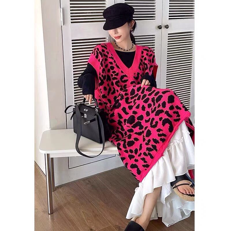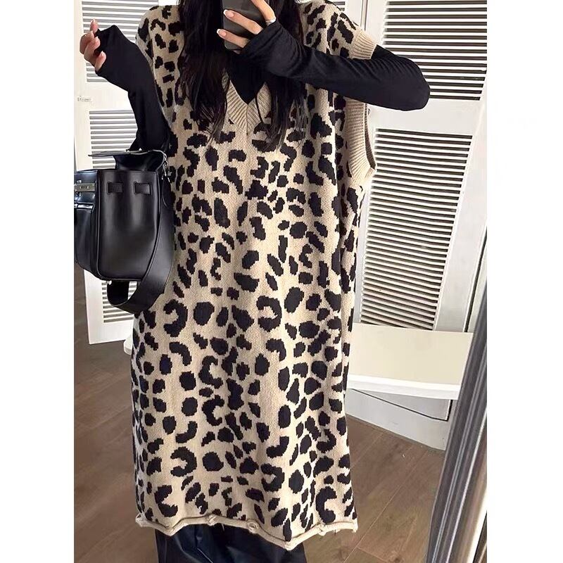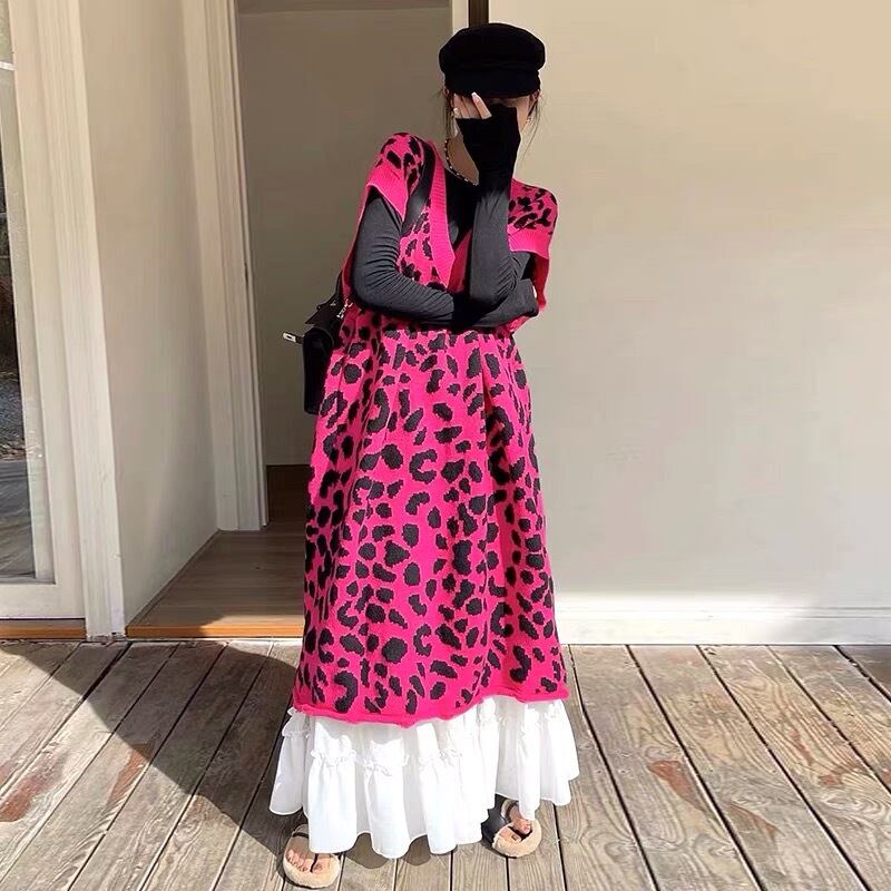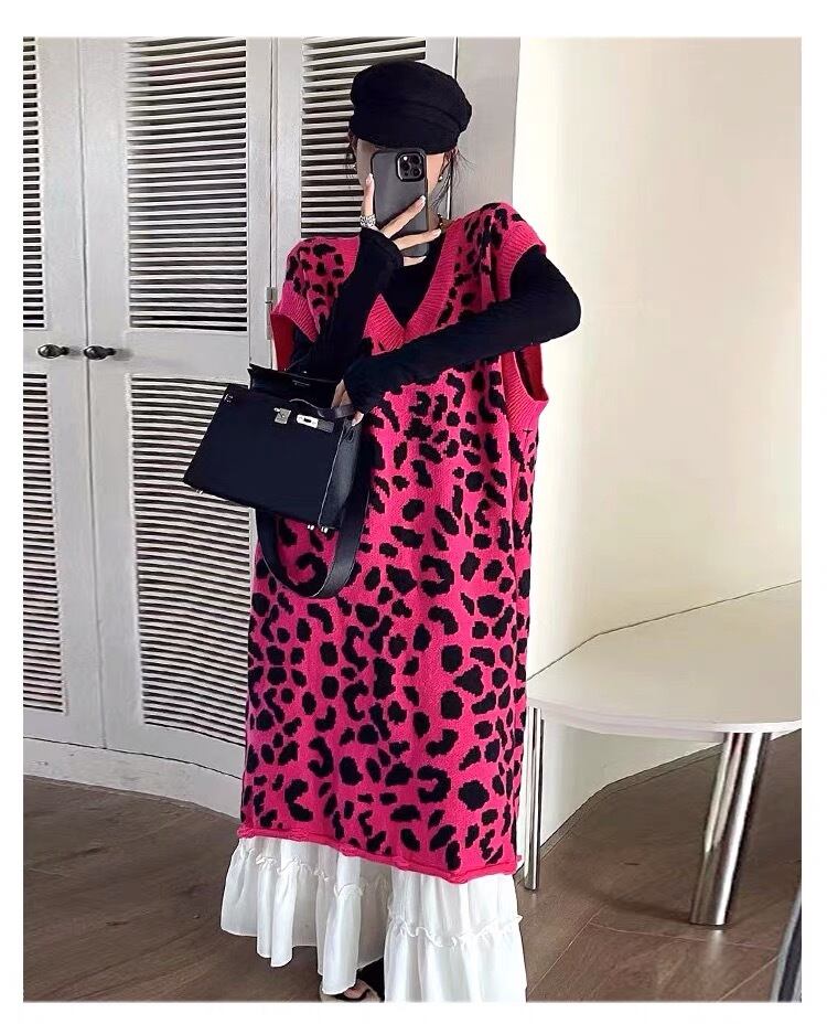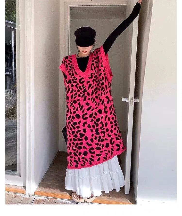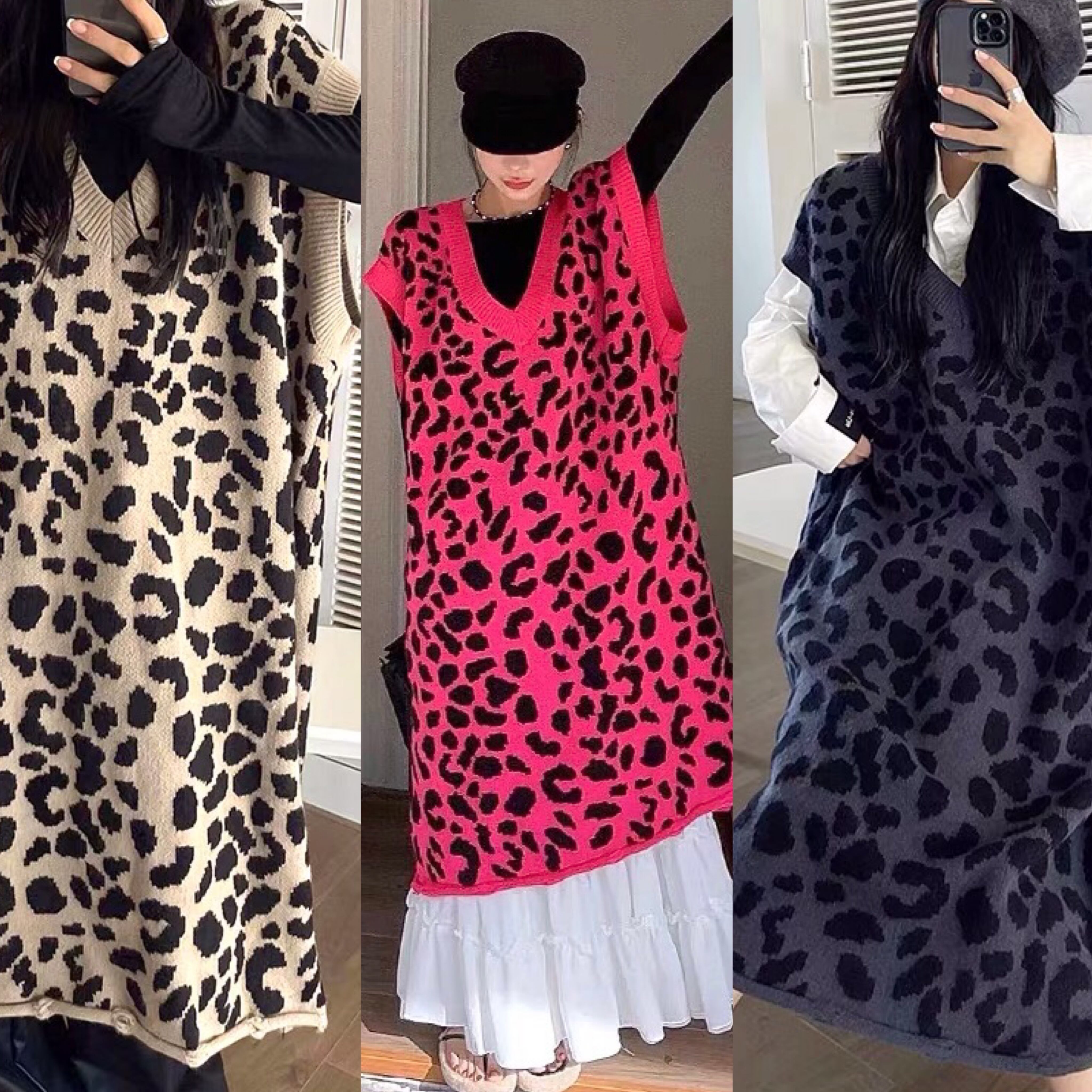 ワンピース ベスト レオパード ヒョウ柄 ピンク ベージュ グレー ワンピース ニット ブラック 黒 セーター 緑 チェック ブラウス シャツ ゆったり オーバーサイズ カーディガン