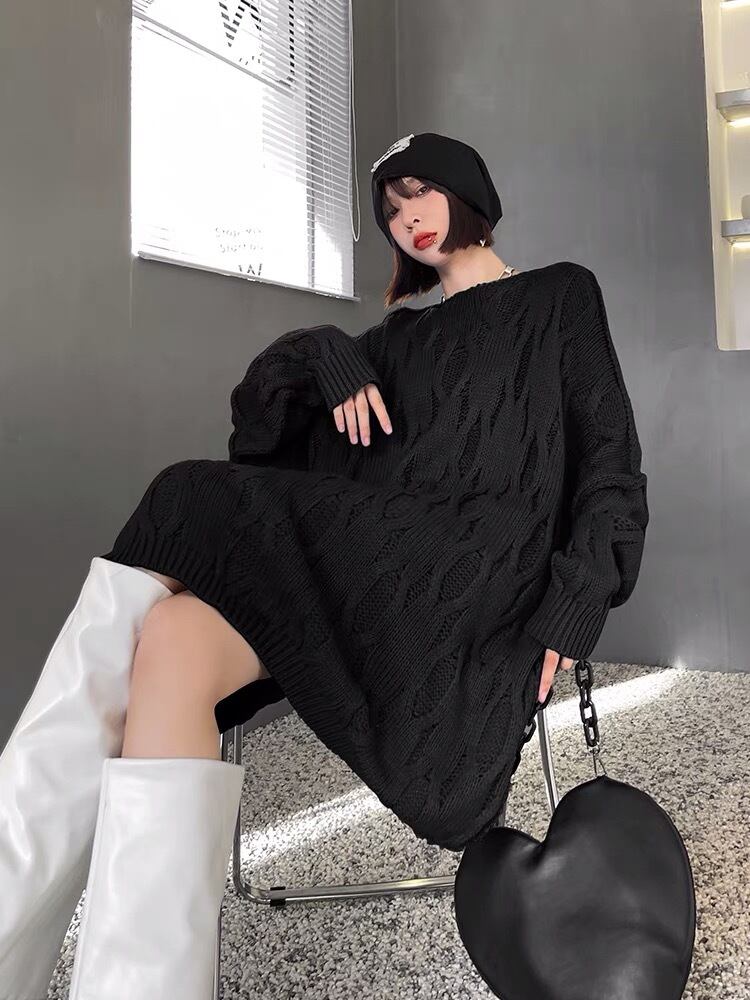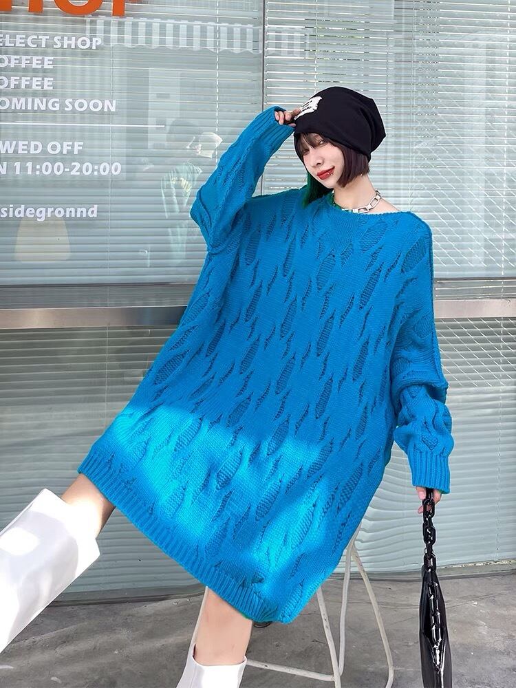ワンピース ニット ダメージ クラッシュ 水色 ピンク ベージュ 黒 ワンピース ニット ブラック 黒 セーター 緑 チェック ブラウス シャツ ゆったり オーバーサイズ カーディガン