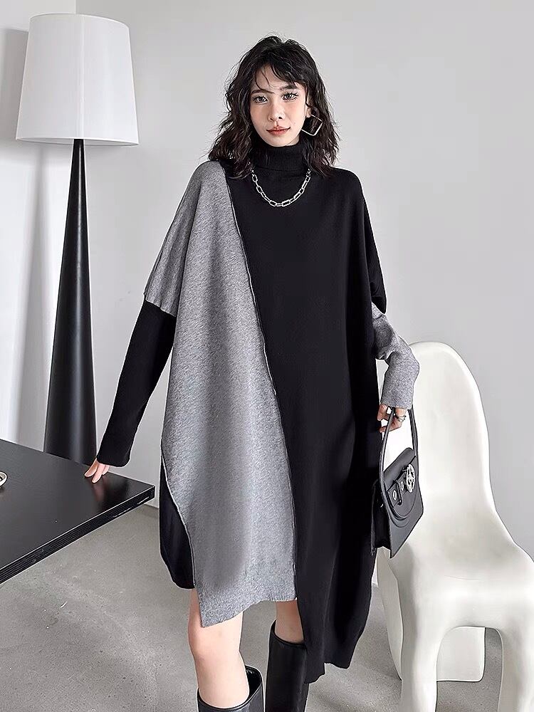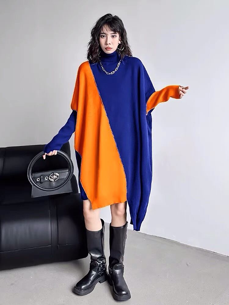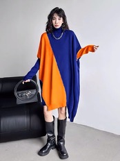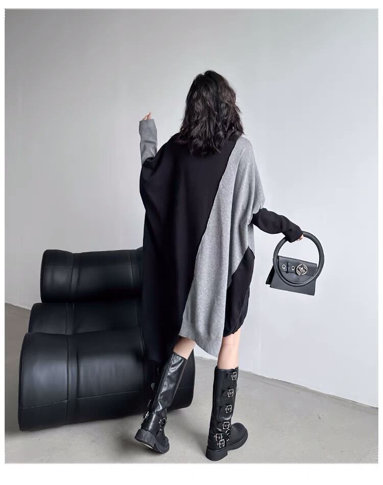 セーター ニット バイカラー オレンジ グレー 黒 青 セーター カーディガン アウター コーカーディガン パーカー ワンピース ニット ブラック 黒 セーター 緑 チェック ブラウス シャツ ゆったり オーバーサイズ カーディガン ニット セーター ビッグシルエット