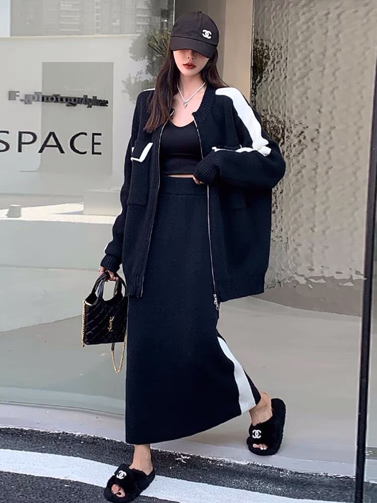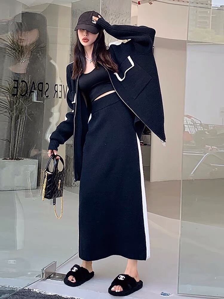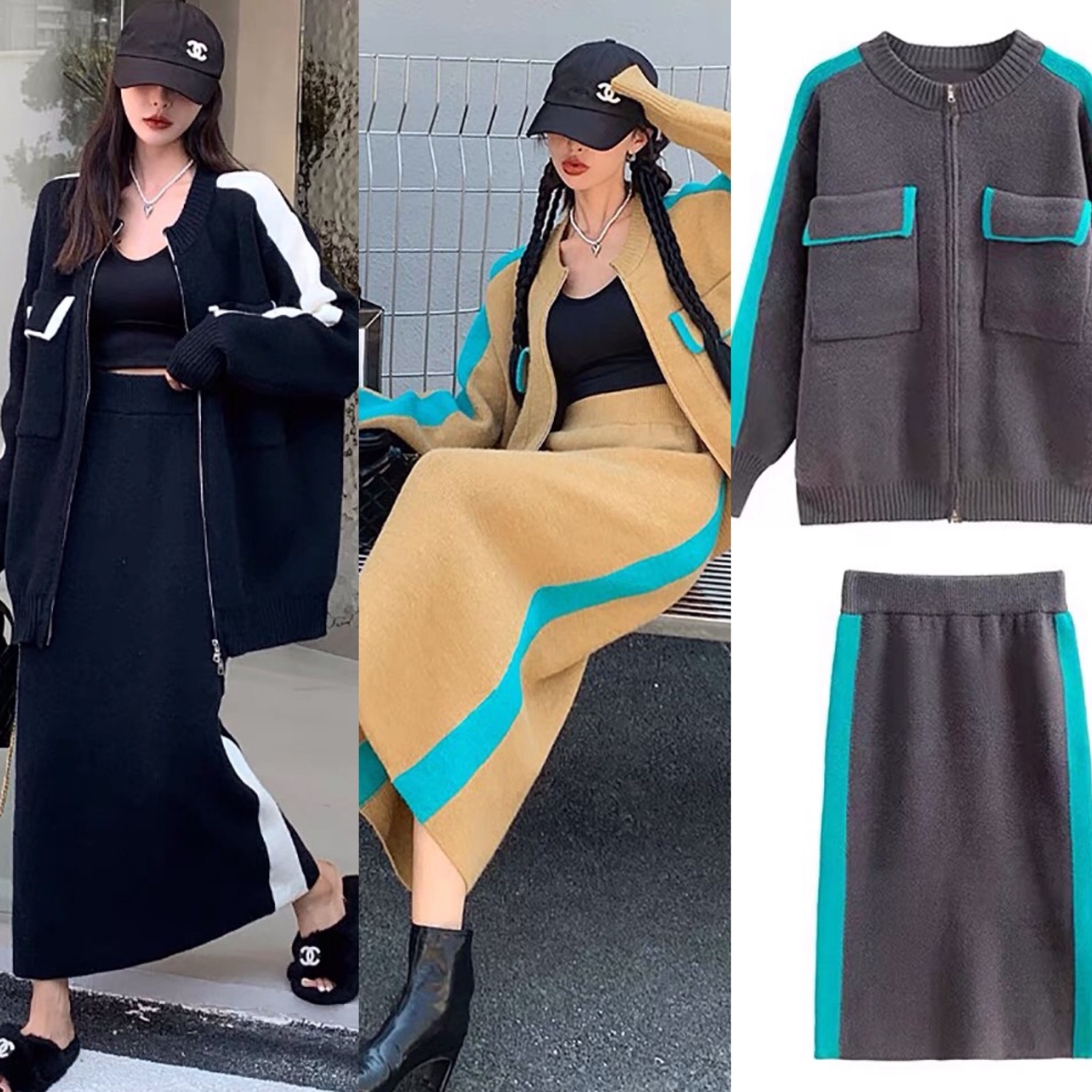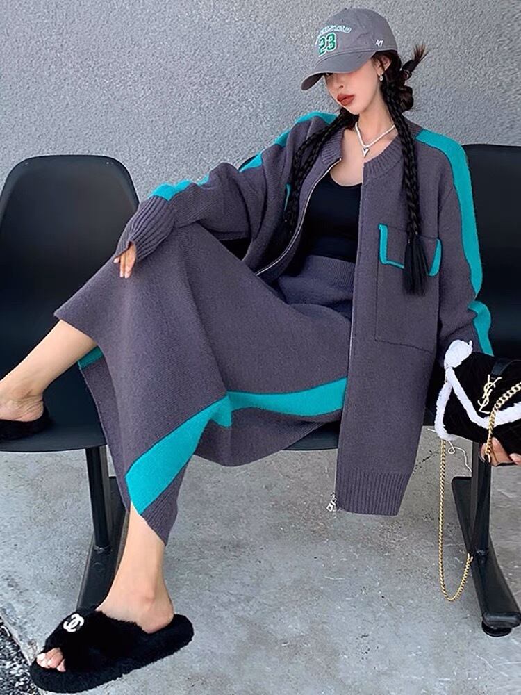 【セットアップ】セーター グレー ベージュ ニット カーディガン ツーピース カーディガン アウター コーカーディガン パーカー ワンピース ニット ブラック 黒 セーター 緑 チェック ブラウス シャツ ゆったり オーバーサイズ カーディガン ニット セーター スウェット ストリート