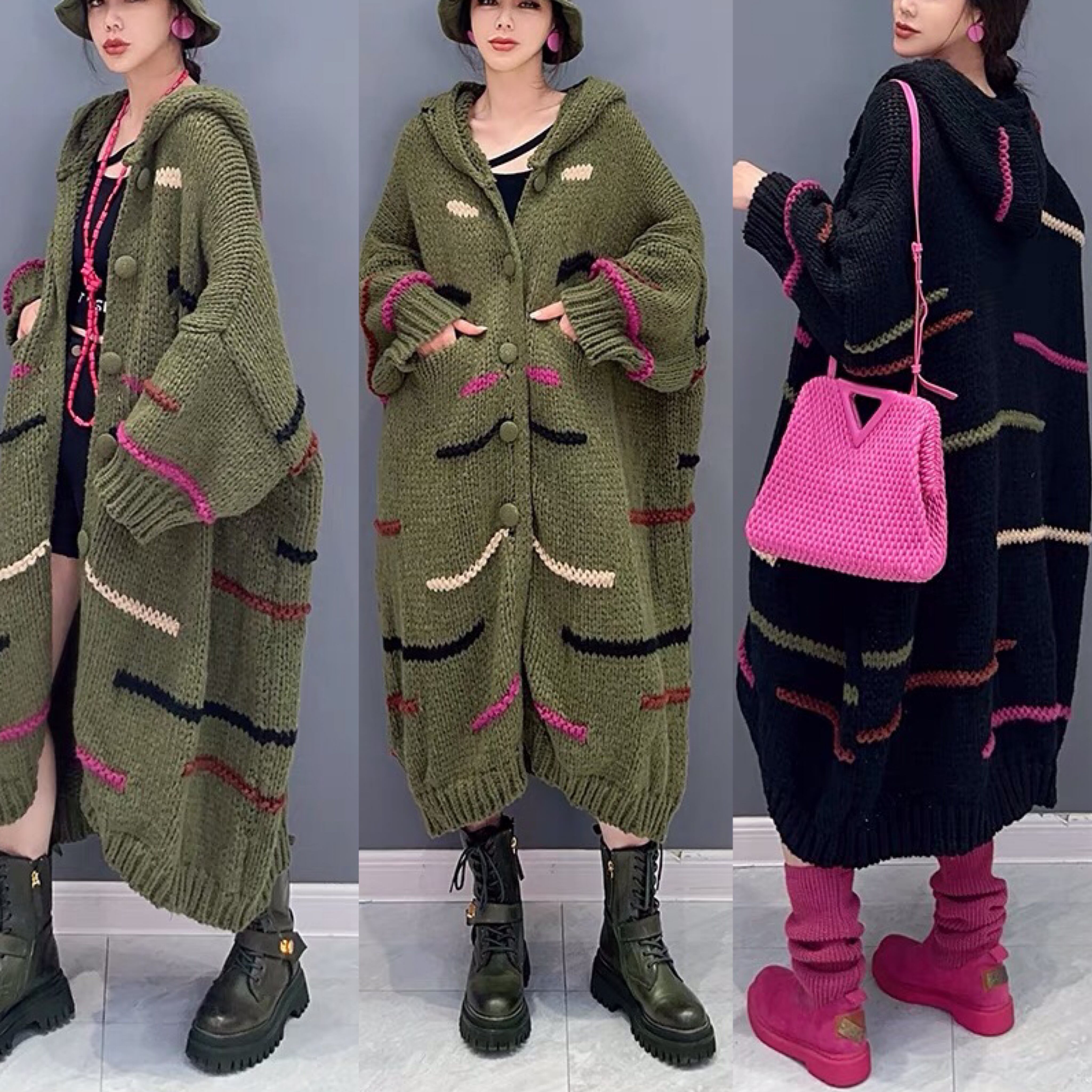 カーディガン ニット 緑 グリーン パーカー XL カーディガン アウター コーカーディガン パーカー ワンピース ニット ブラック 黒 セーター 緑 チェック ブラウス シャツ ゆったり オーバーサイズ カーディガン ニット セーター
