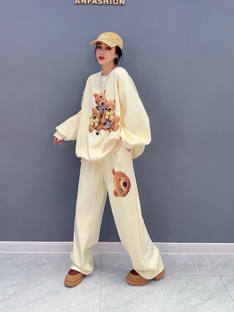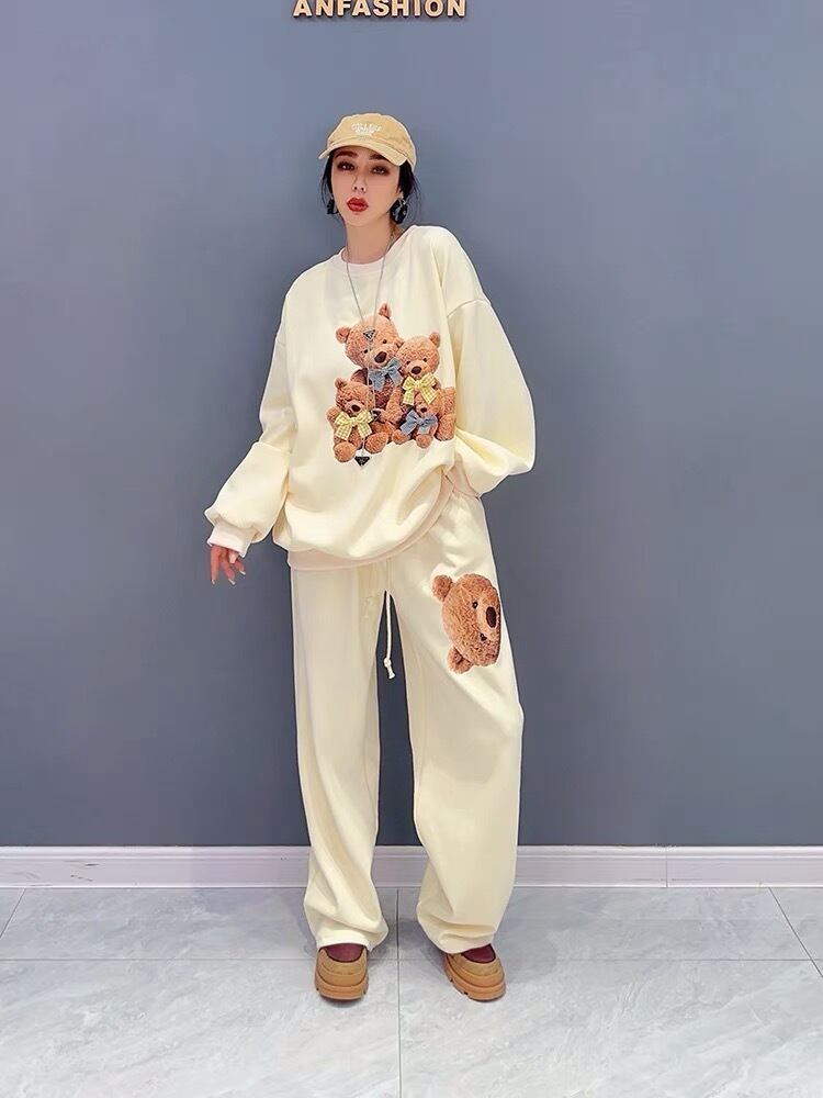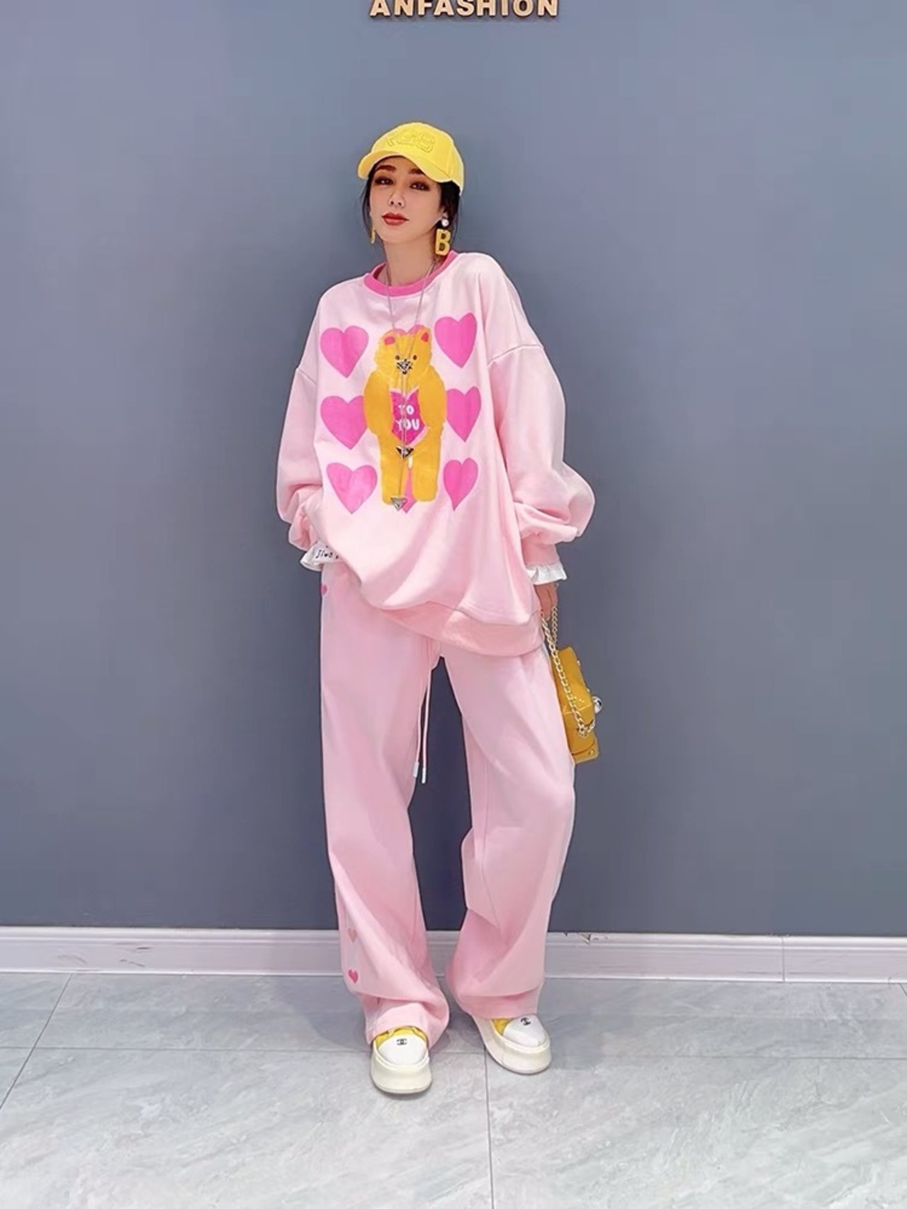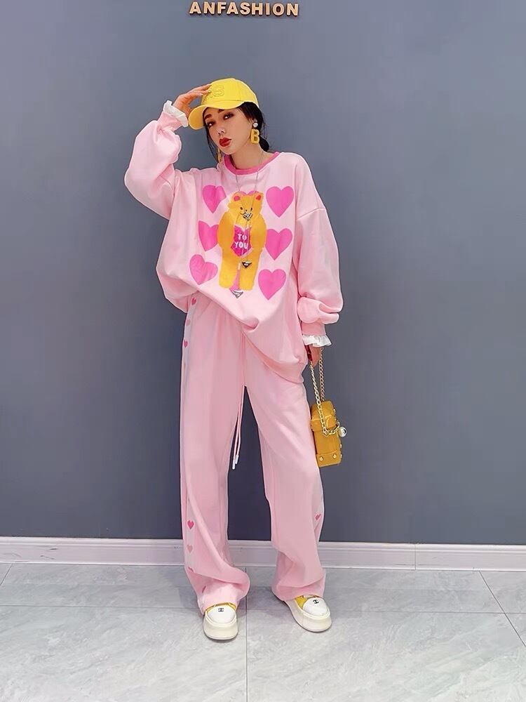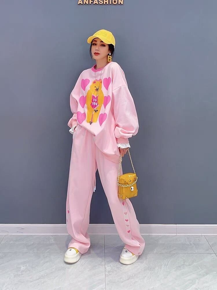 【セットアップ】スウェット トレーナー ピンク 茶色 くま カーディガン アウター コーカーディガン パーカー ワンピース ニット ブラック 黒 セーター 緑 チェック ブラウス シャツ ゆったり オーバーサイズ カーディガン ニット セーター ルームウェア ピンク かわいい XL
