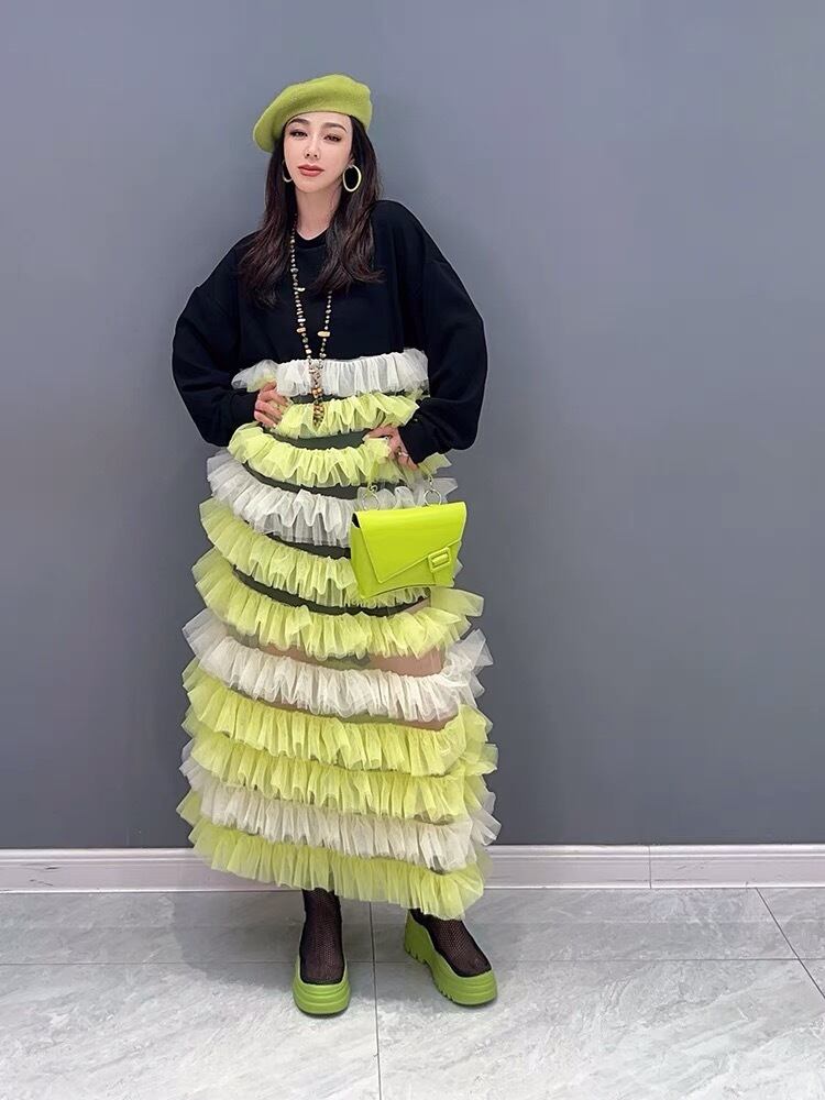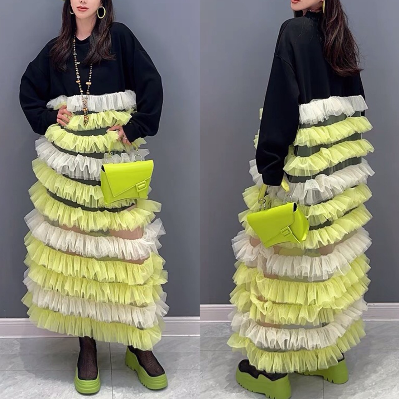 ワンピース 黄色 黒 デコレーション リボン カーディガン アウター コーカーディガン パーカー ワンピース ニット ブラック 黒 セーター 緑 チェック ブラウス シャツ ゆったり オーバーサイズ カーディガン ニット セーター