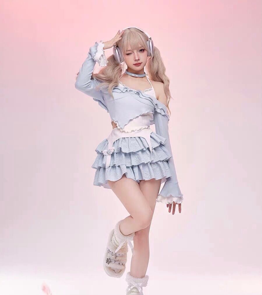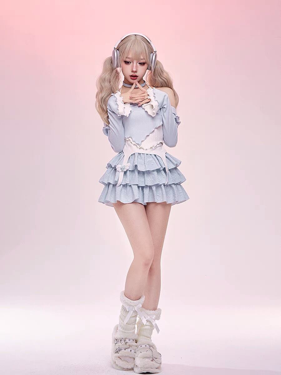 【トップス】ガーリー 可愛い ブラウス Tシャツ オフショルダー ピンク 水色 姫 ギャル カーディガン パーカー スウェット ロリータ 原宿 渋谷 かわいい カジュアル