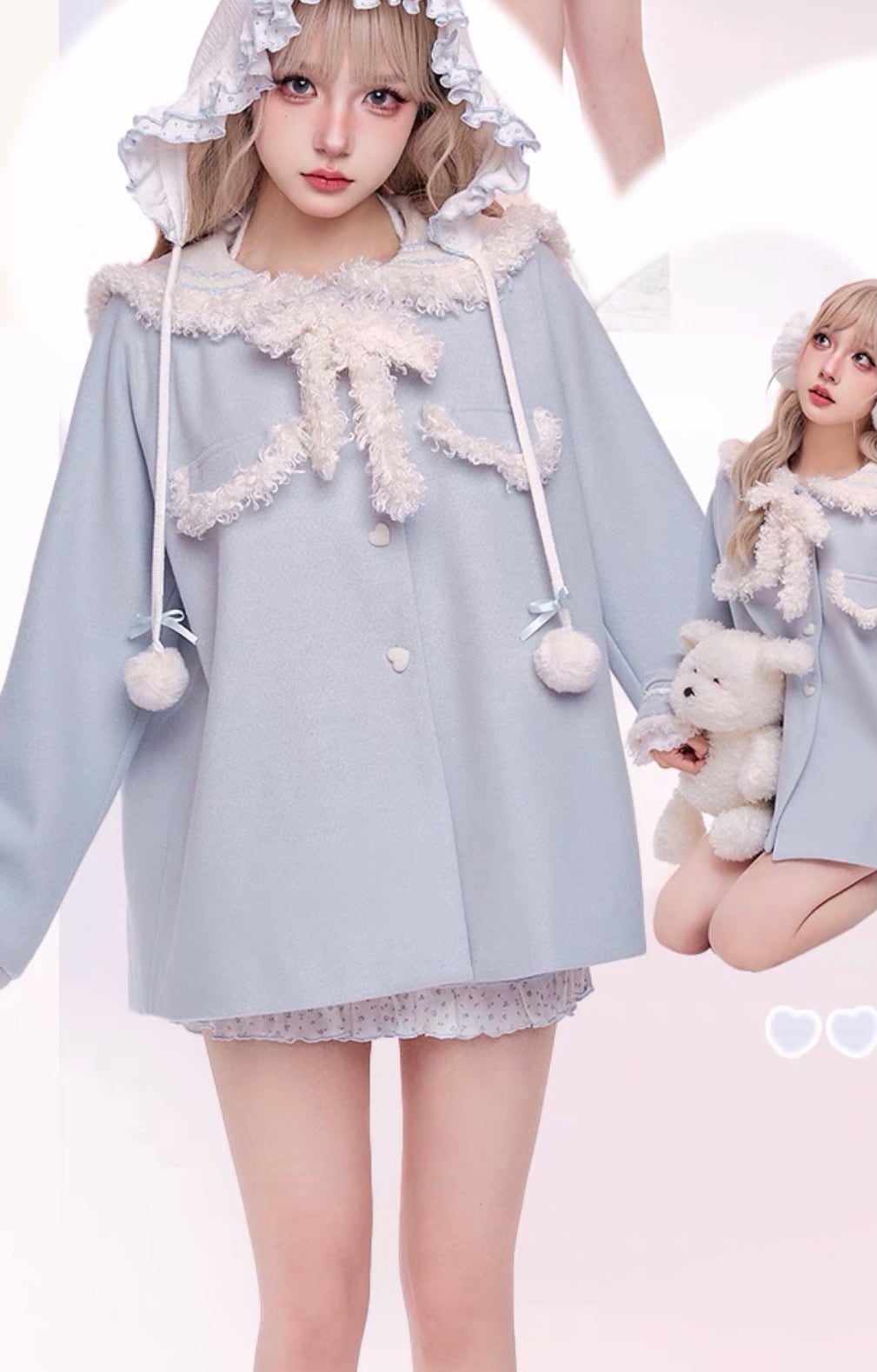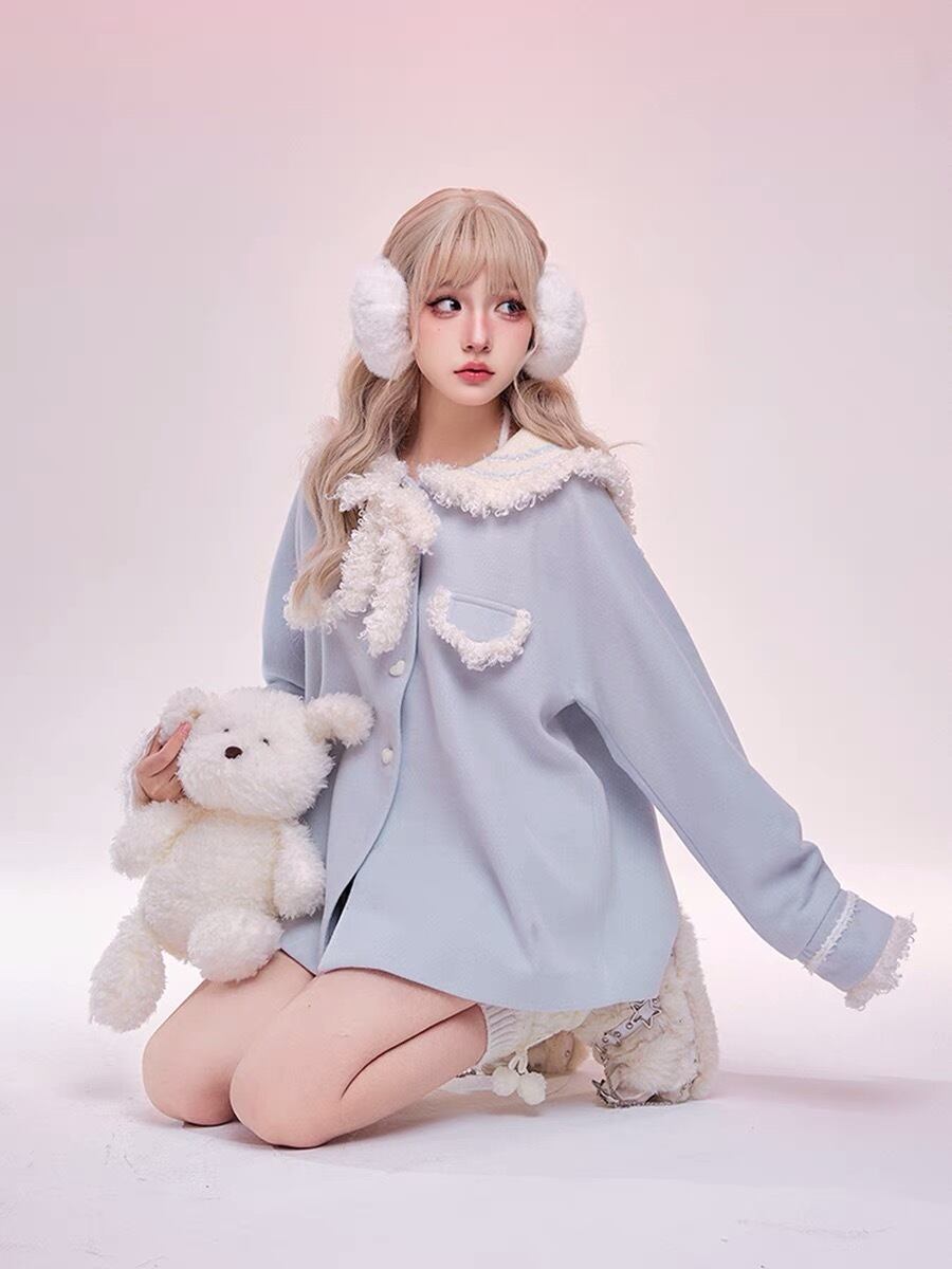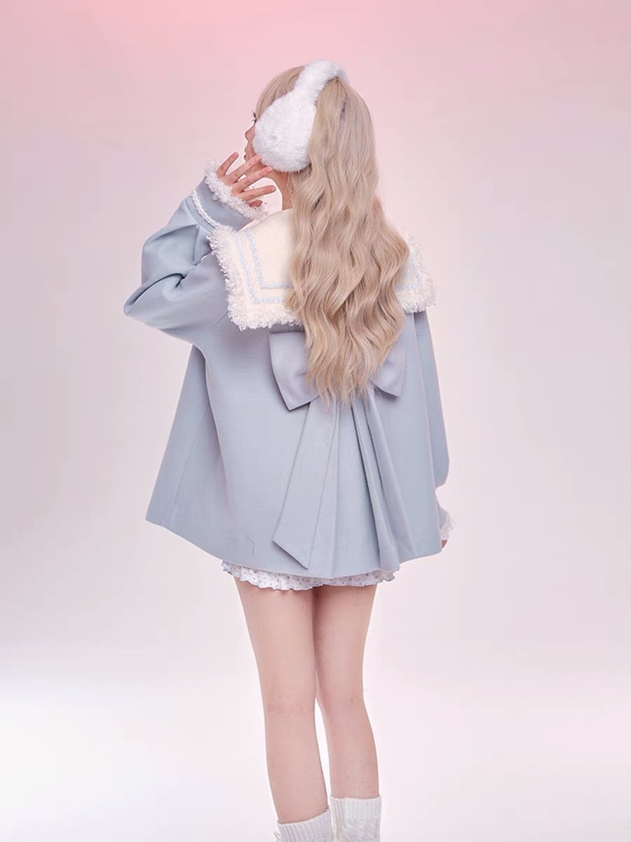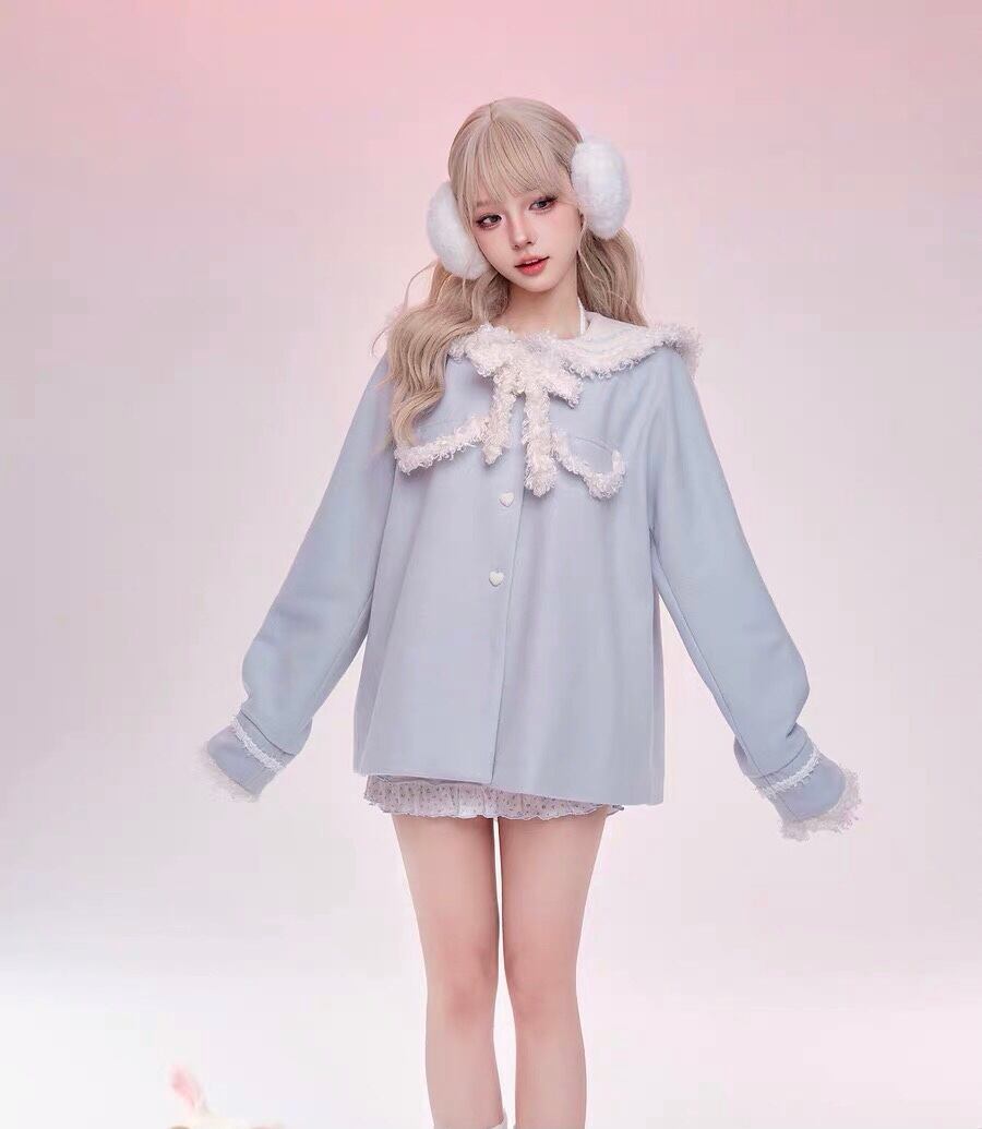 コート 水色 セーラー リボン スクール ガーリー 可愛い ブラウス Tシャツ オフショルダー ピンク 水色 姫 ギャル カーディガン パーカー スウェット ロリータ 原宿 渋谷 かわいい カジュアル ワンピース