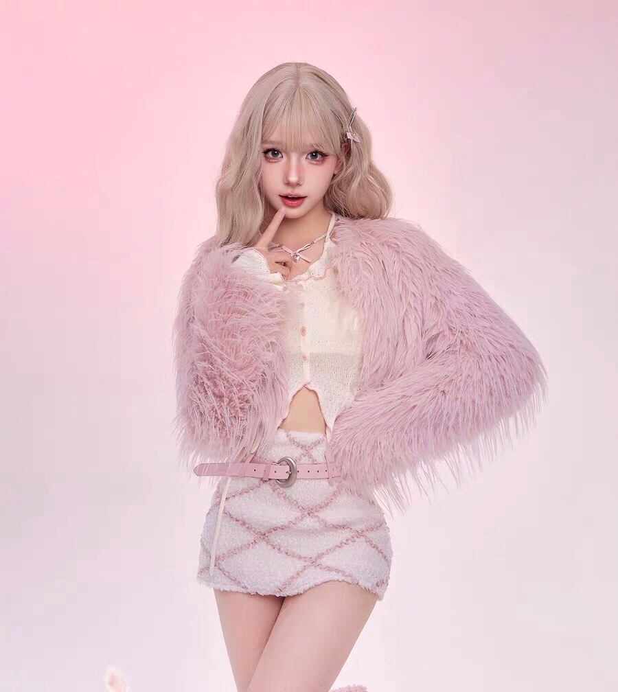 【アウター】ジャケット コート カーディガン ファー ピンク ガーリー 可愛い ブラウス Tシャツ オフショルダー ピンク 水色 姫 ギャル カーディガン パーカー スウェット ロリータ 原宿 渋谷 かわいい カジュアル ゴージャス