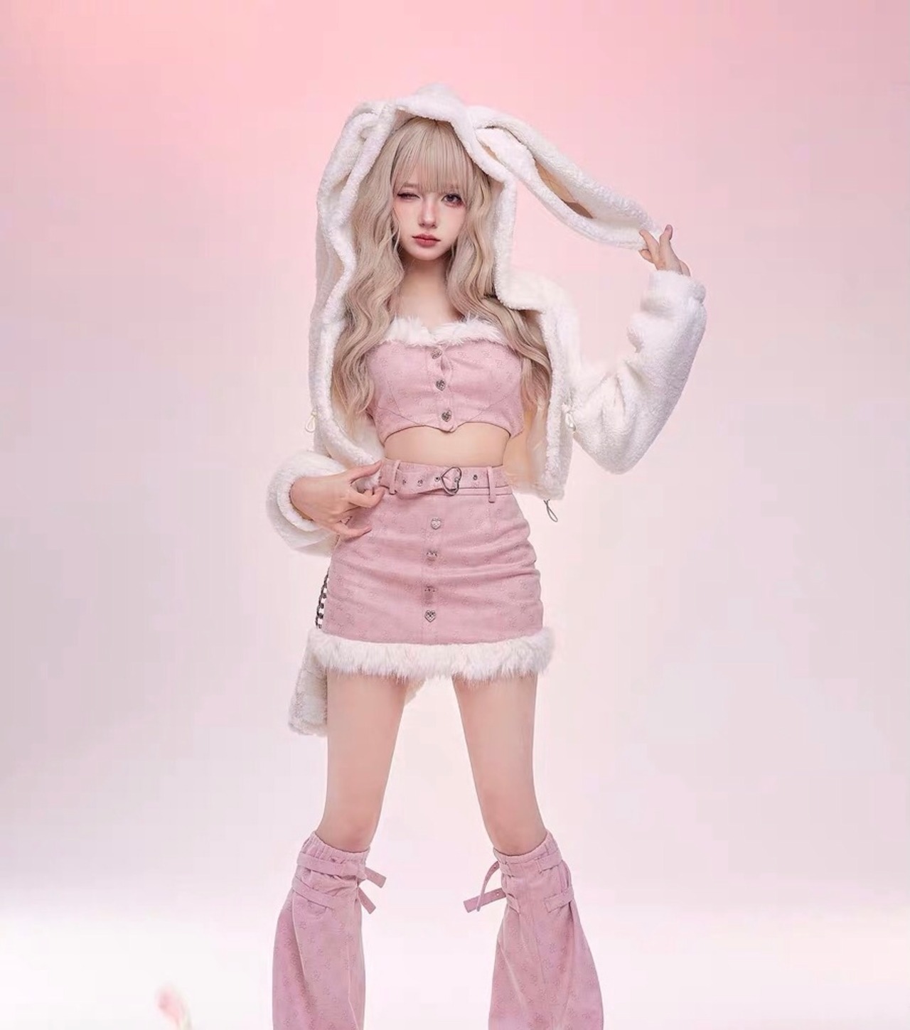 【ボトムス】パーカー うさぎ うさみみ フード ファー コート カーディガン アウター ジャケット ガーリー 可愛い ブラウス Tシャツ オフショルダー ピンク 水色 姫 ギャル カーディガン パーカー スウェット ロリータ 原宿 渋谷 かわいい カジュアル