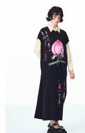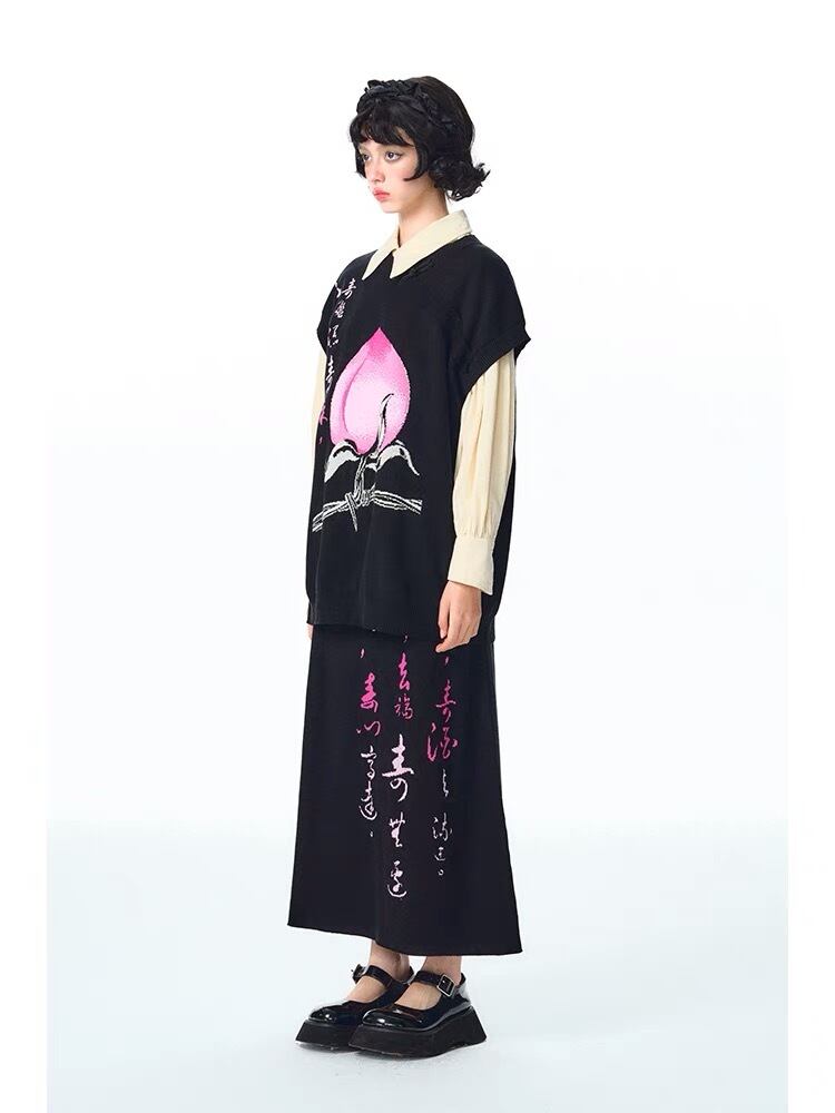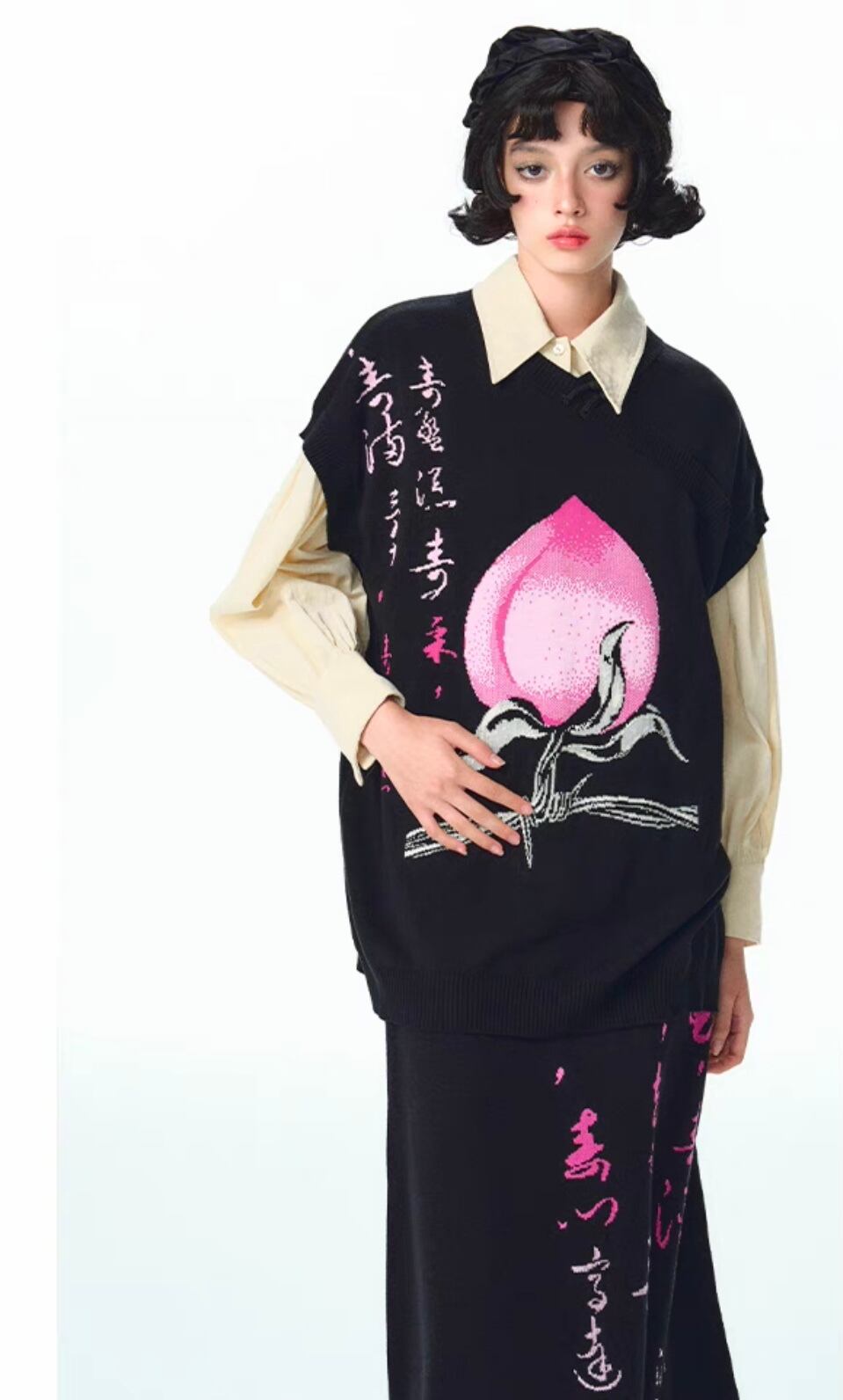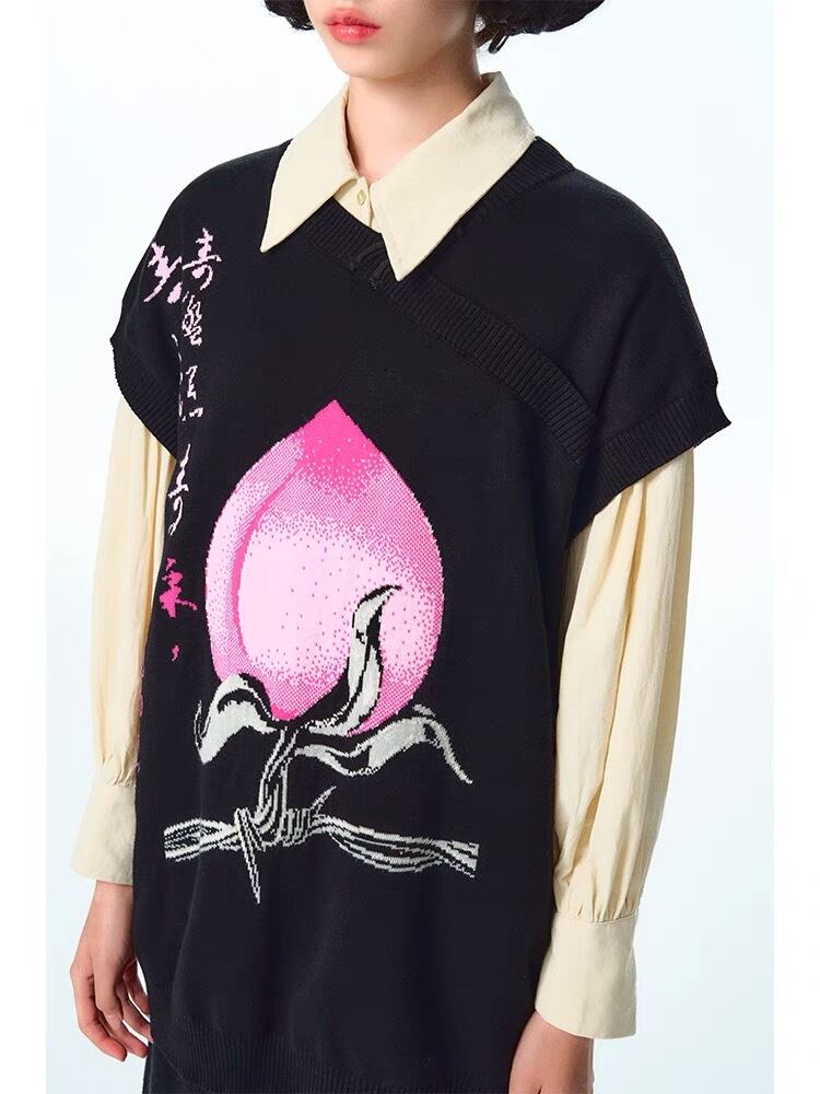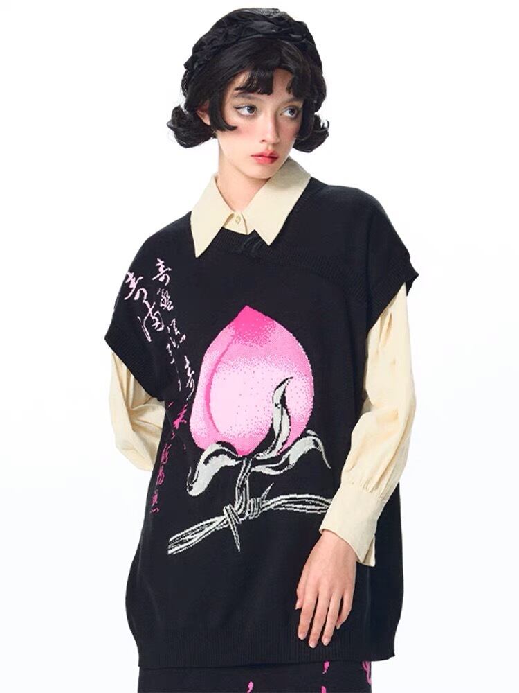 【ベスト】黒 桃 ピンク ニット ゆったり ビッグシルエット オーバーサイズ ブラック カーディガン アウター ジャケット トップス セーター