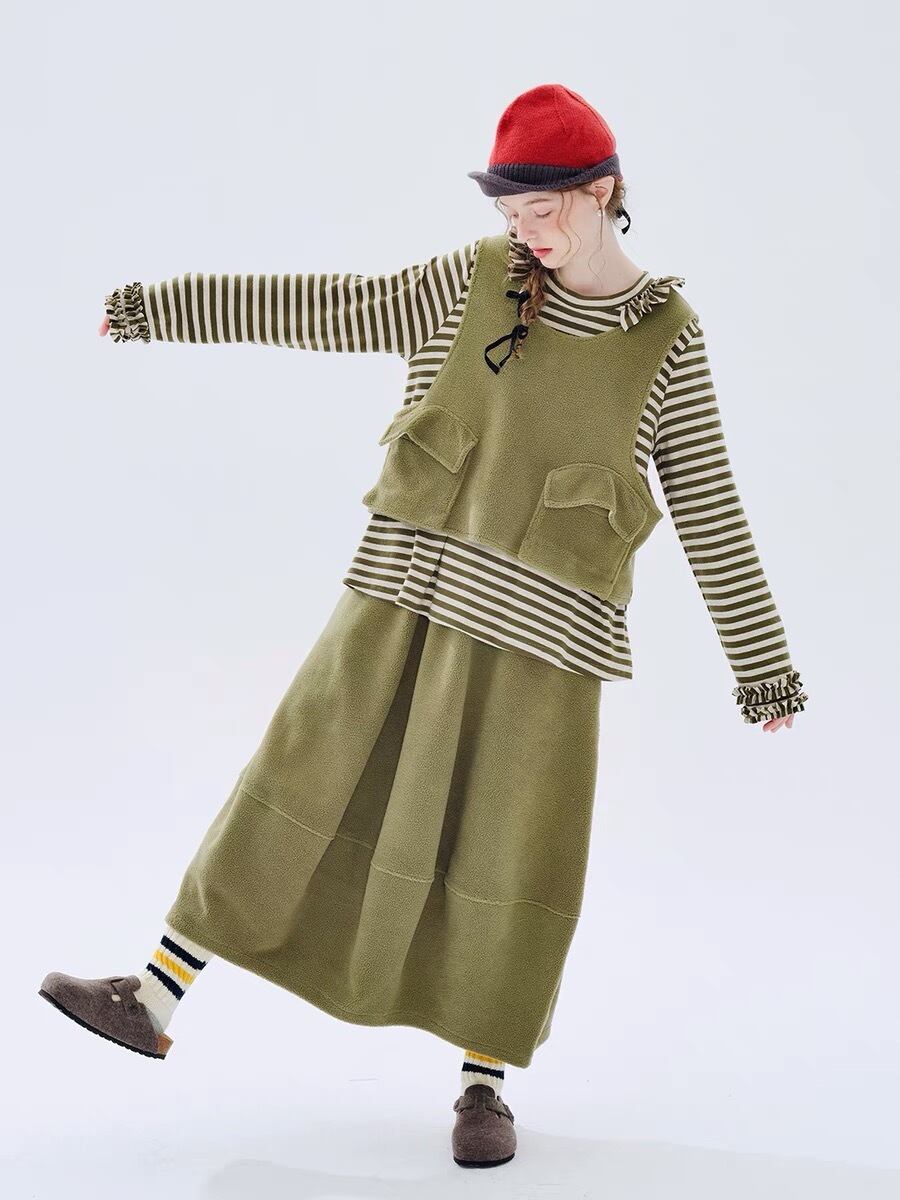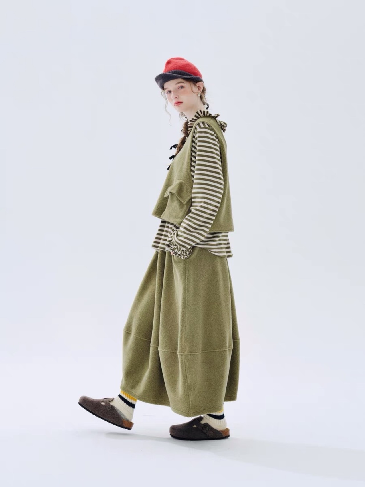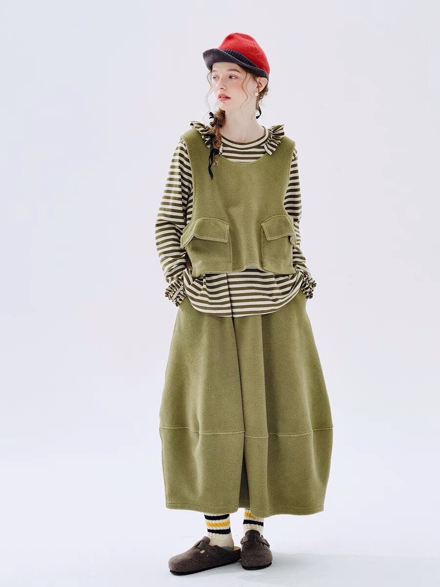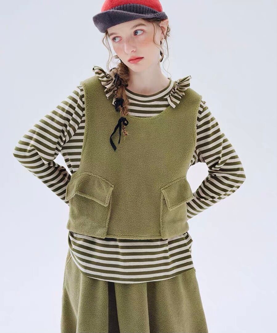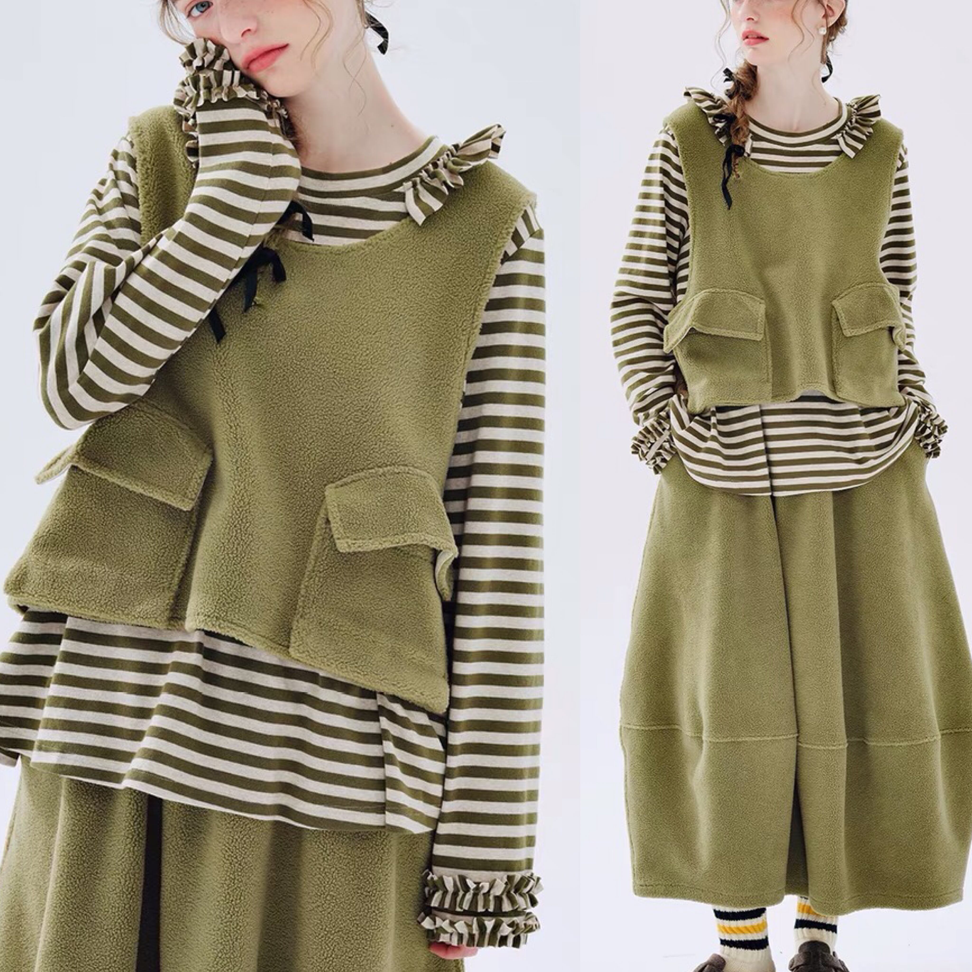 【ベスト】フリース 緑 グリーン ベスト カーディガン 黒 桃 ピンク ニット ゆったり ビッグシルエット オーバーサイズ ブラック カーディガン アウター ジャケット トップス セーター