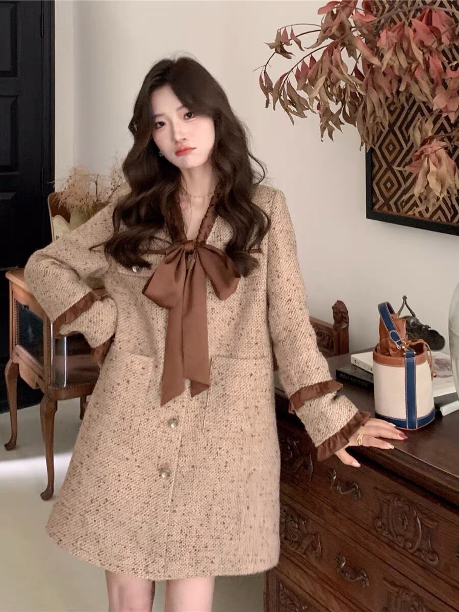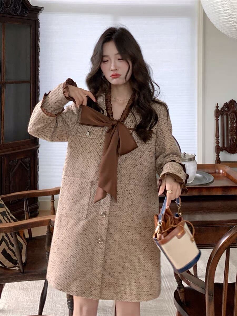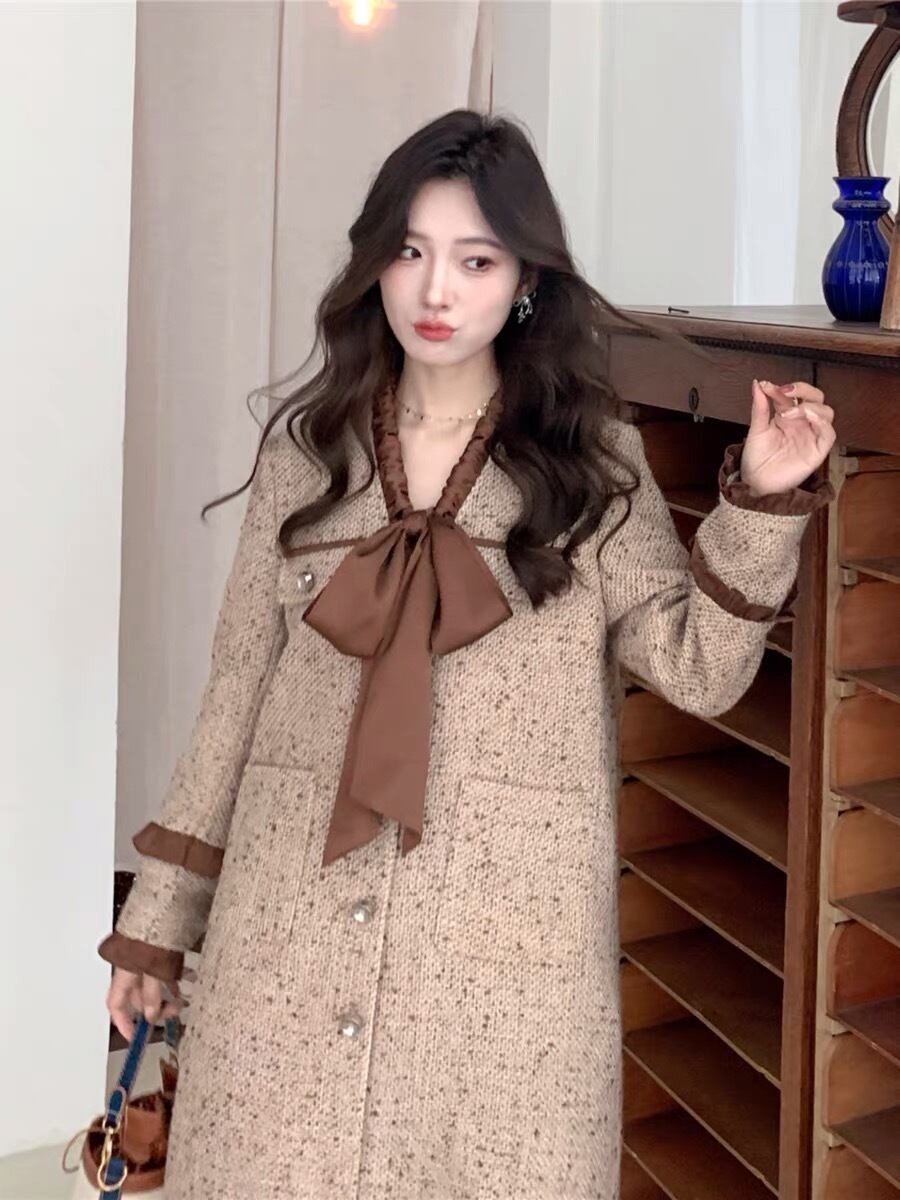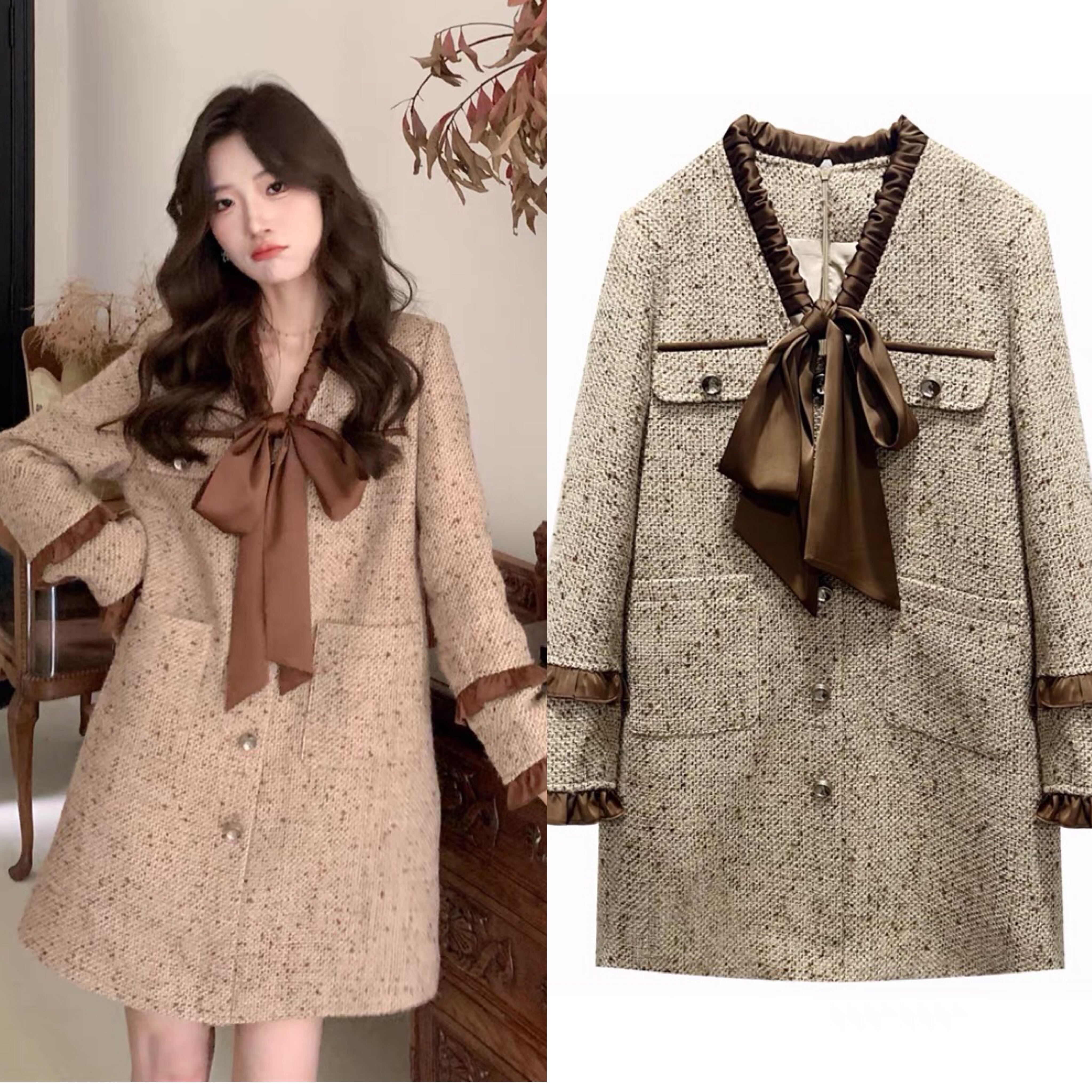 ジャケット お嬢様 エレガント リボン 茶色 黒 桃 ピンク ニット ゆったり ビッグシルエット オーバーサイズ ブラック カーディガン アウター ジャケット トップス セーター 姫 カーディガン コート ワンピース 原宿 渋谷