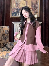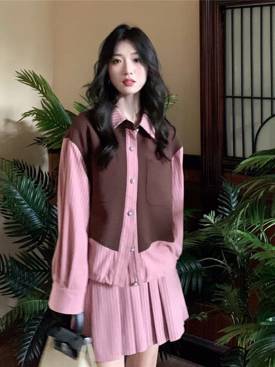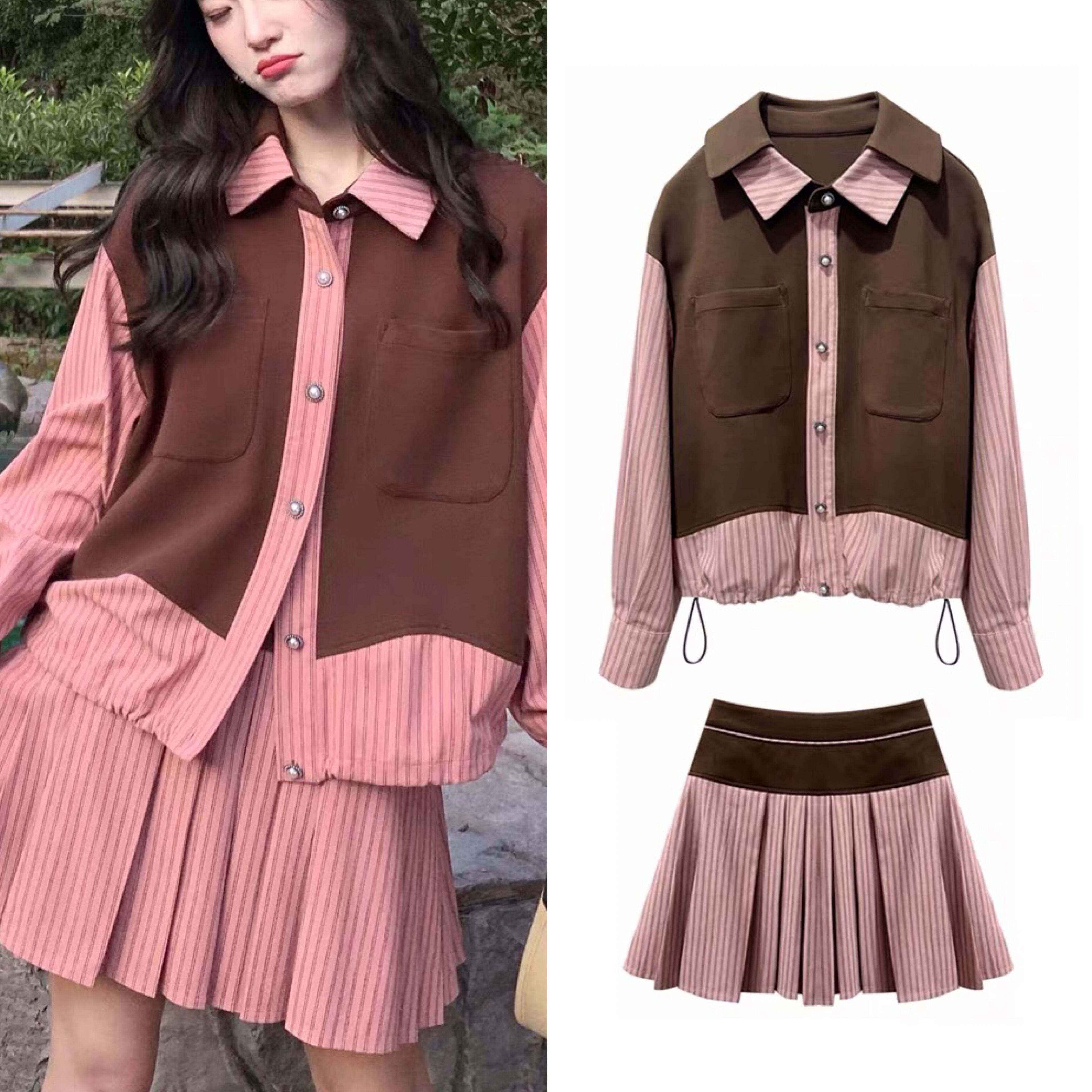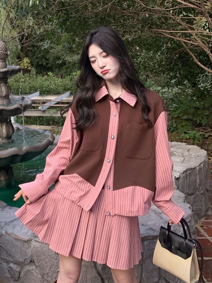 【セットアップ】ブルゾン 赤 ピンク チェック ジャケット お嬢様 エレガント リボン 茶色 黒 桃 ピンク ニット ゆったり ビッグシルエット オーバーサイズ ブラック カーディガン アウター ジャケット トップス セーター 姫 カーディガン コート ワンピース 原宿 渋谷