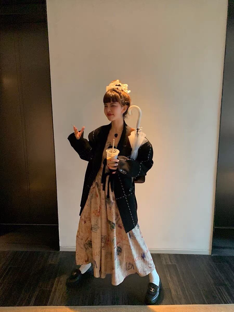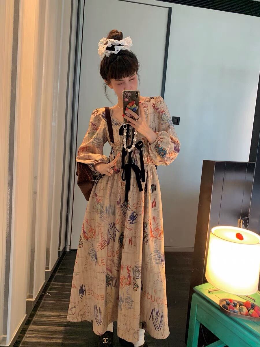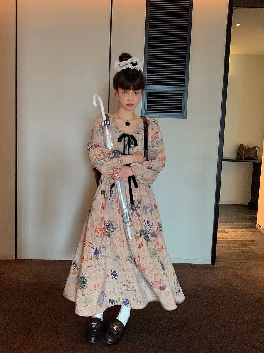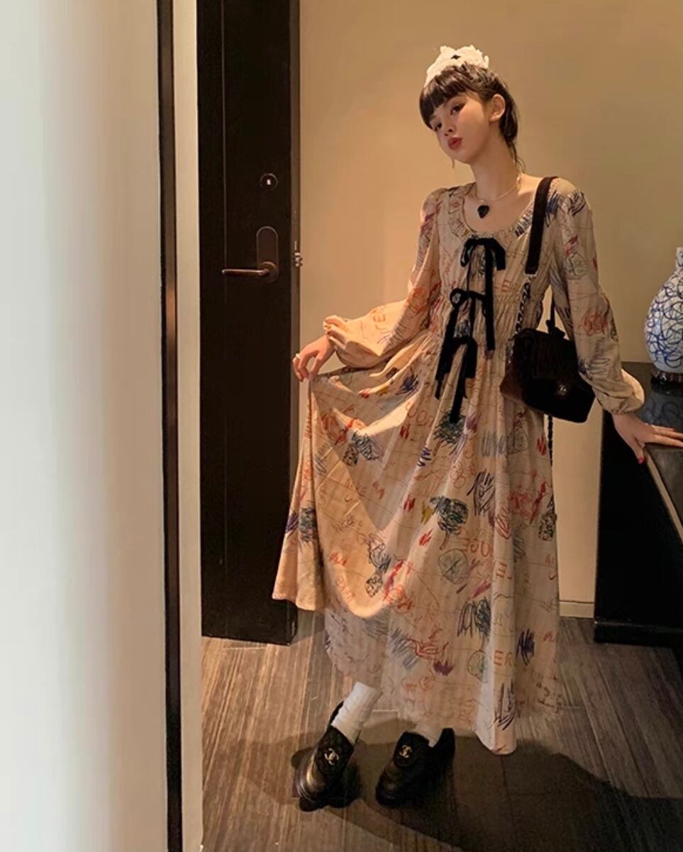 ワンピース 落書き ベージュ マキシ ロング ブラウス チェック ジャケット お嬢様 エレガント リボン 茶色 黒 桃 ピンク ニット ゆったり ビッグシルエット オーバーサイズ ブラック カーディガン アウター ジャケット トップス セーター 姫 カーディガン コート ワンピース 原宿 渋谷