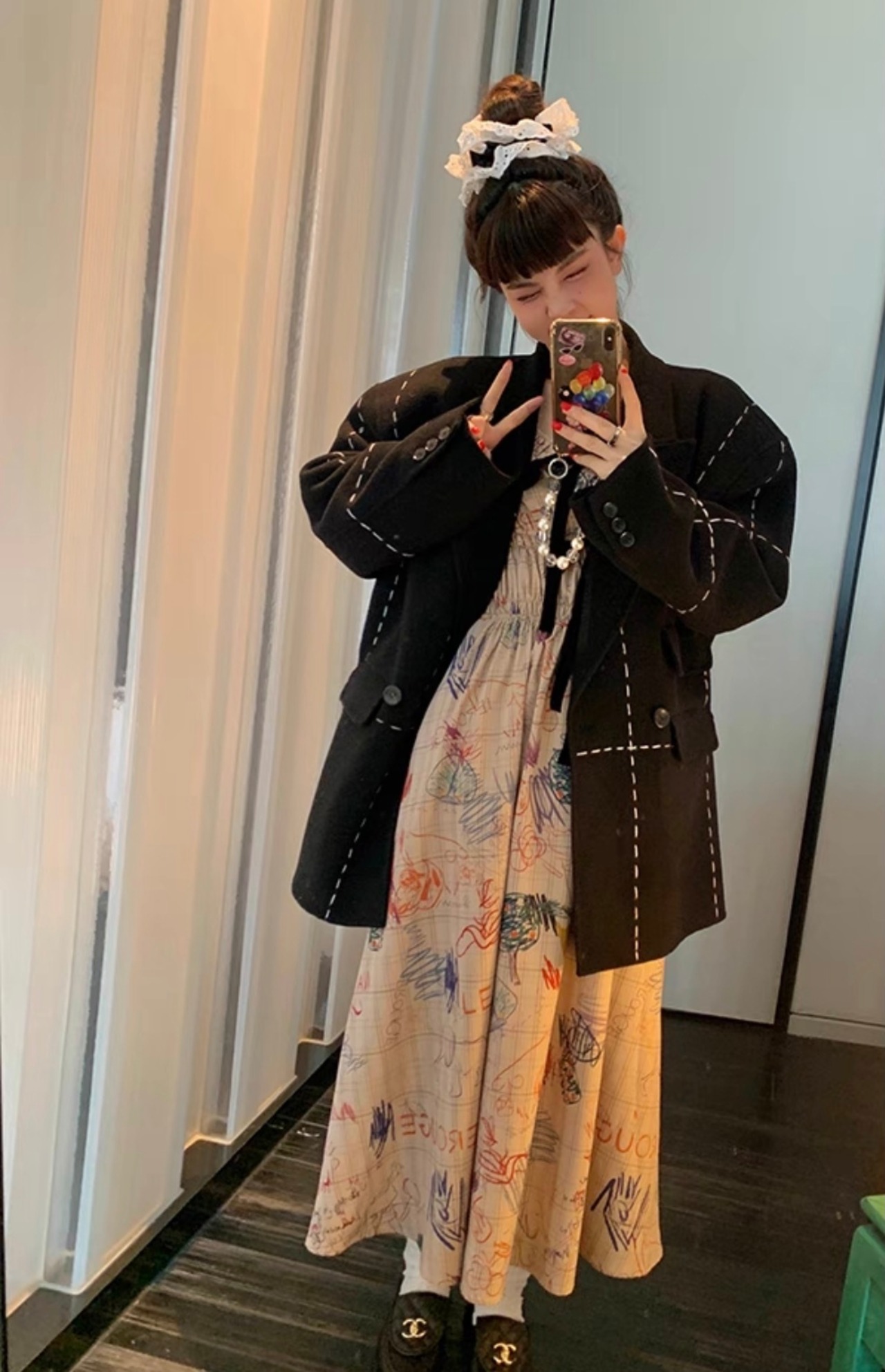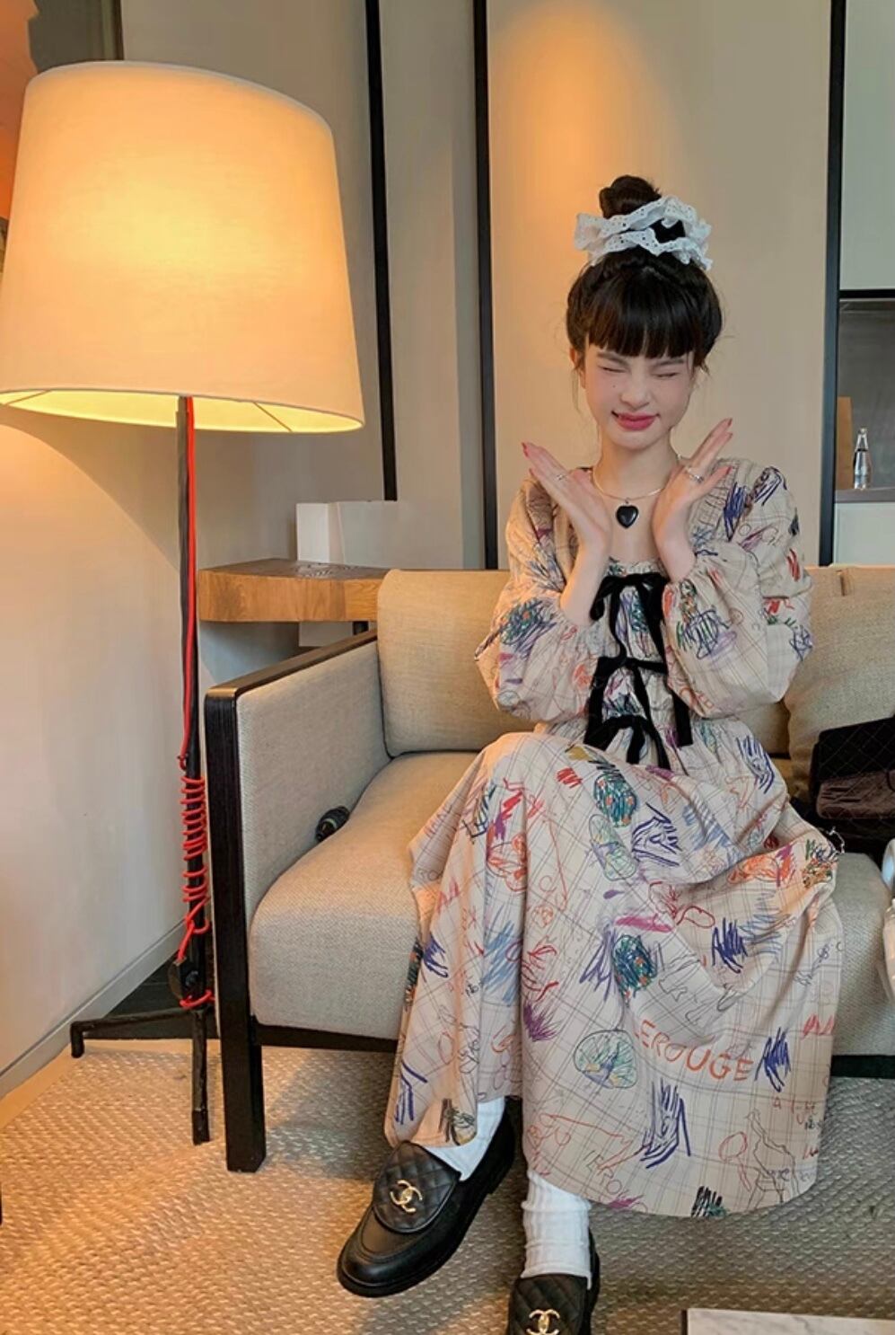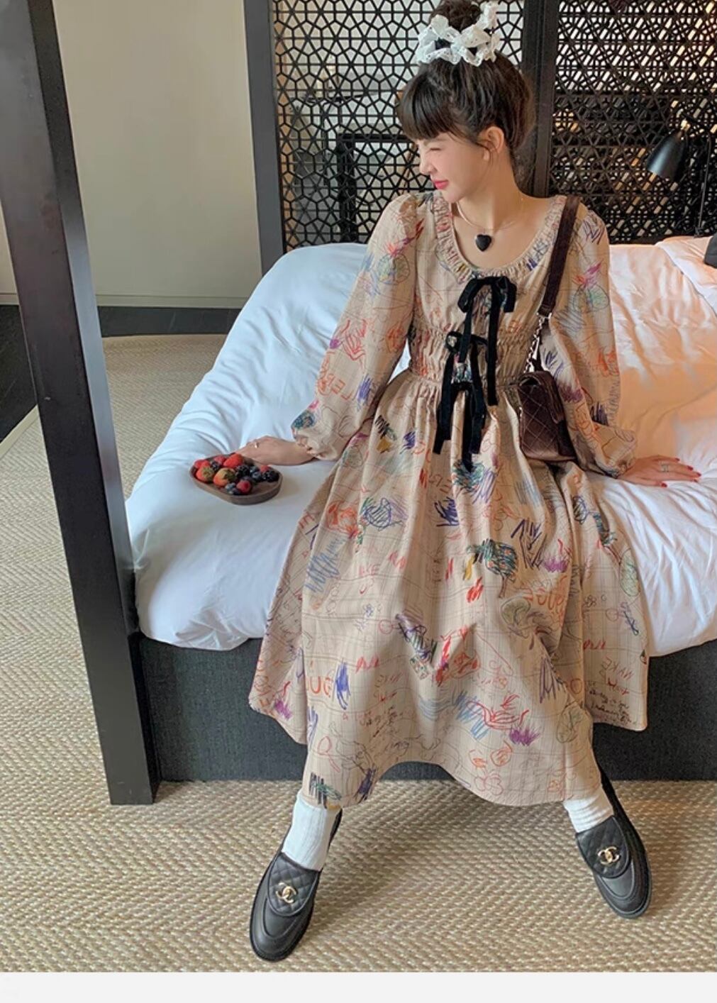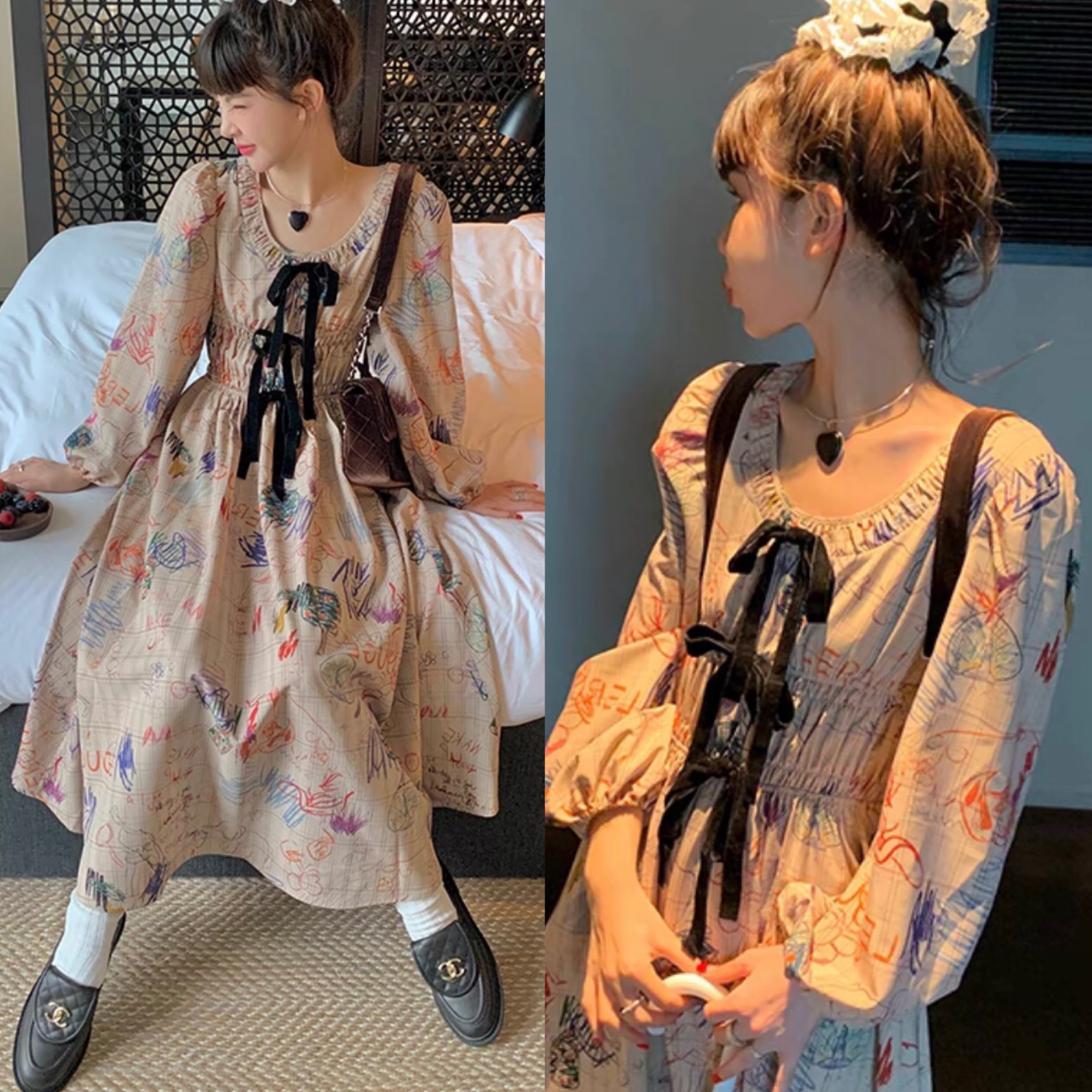 ワンピース 落書き ベージュ マキシ ロング ブラウス チェック ジャケット お嬢様 エレガント リボン 茶色 黒 桃 ピンク ニット ゆったり ビッグシルエット オーバーサイズ ブラック カーディガン アウター ジャケット トップス セーター 姫 カーディガン コート ワンピース 原宿 渋谷